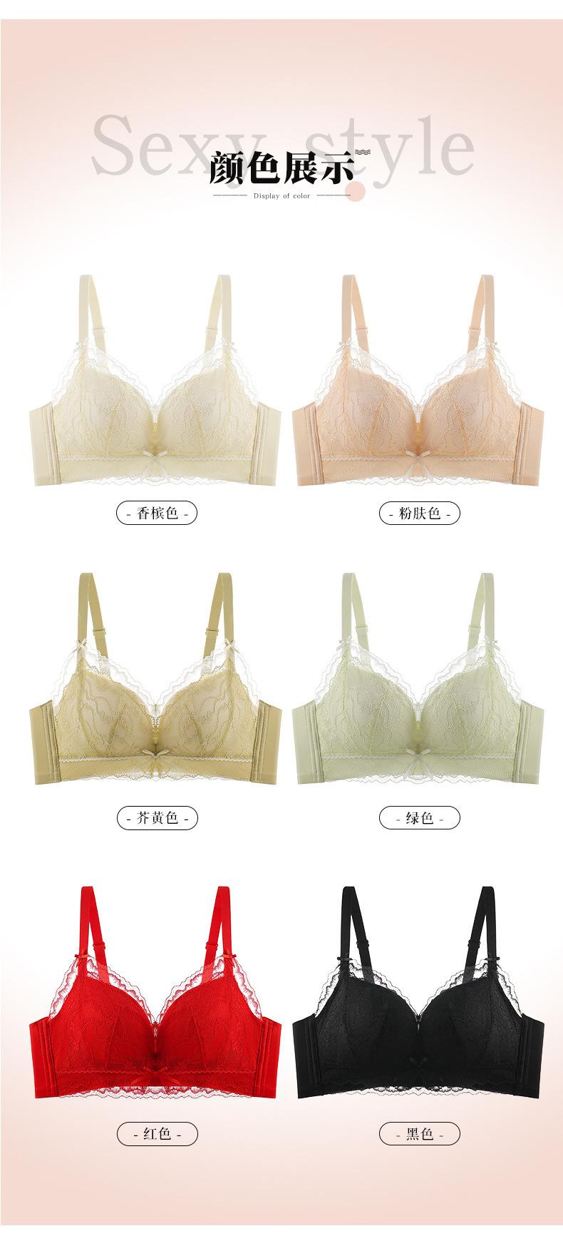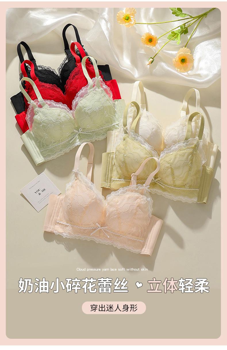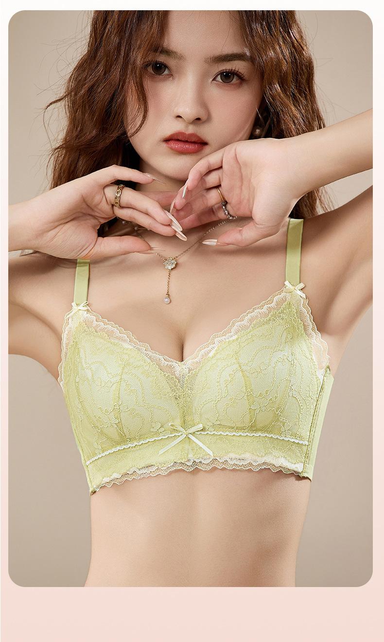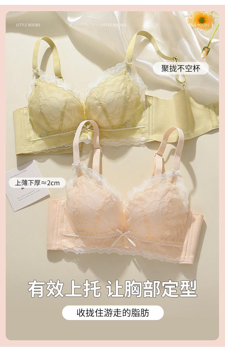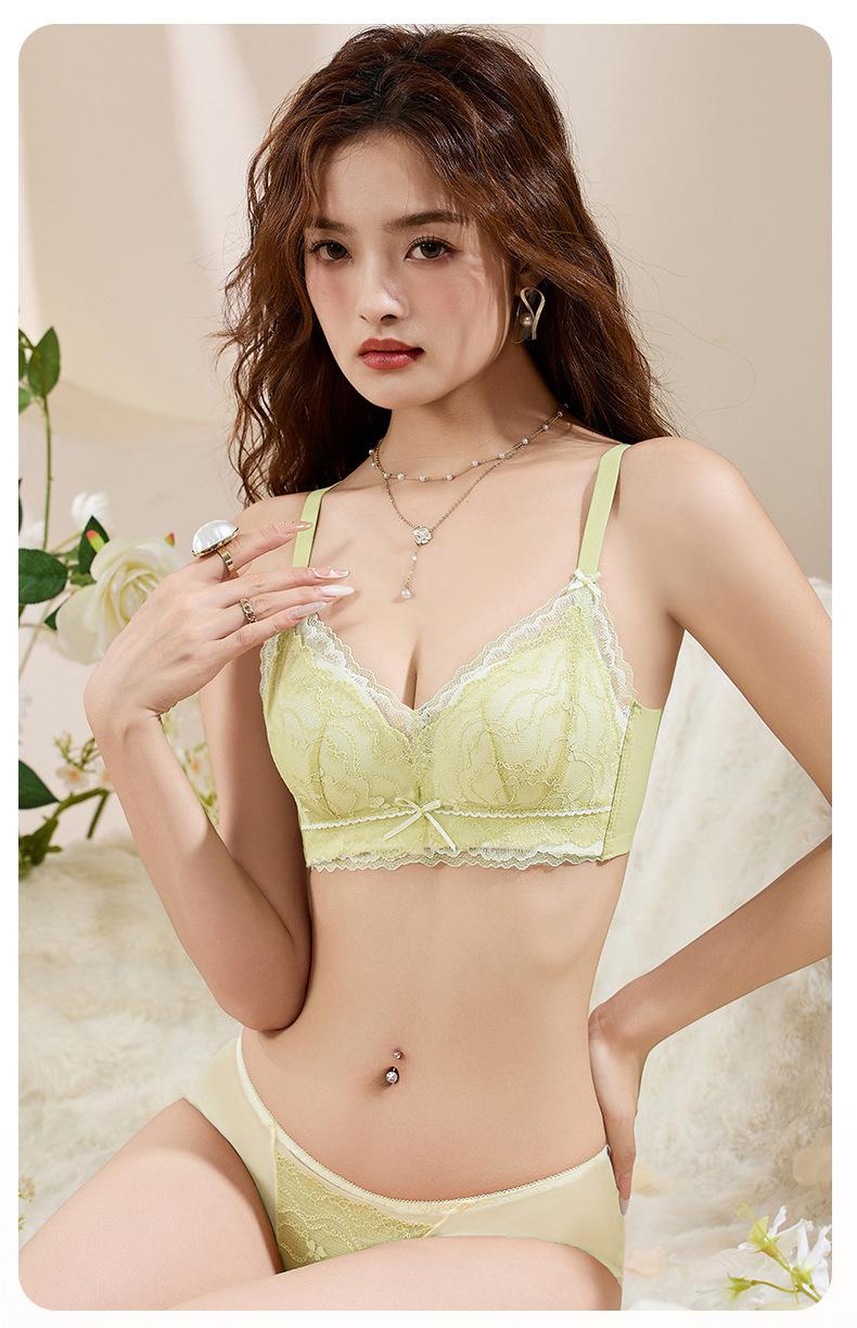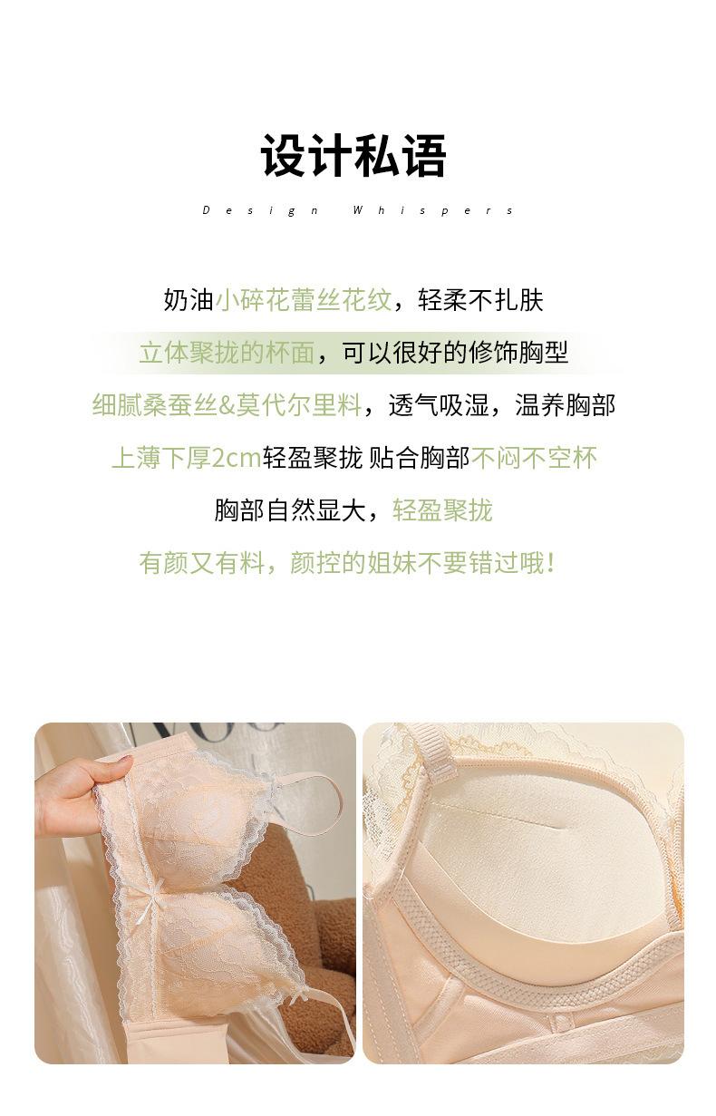 Ropa interior de modal transpirable de seda de morera para mujer con encaje, push-up para busto pequeño, brasier ajustable no magnético, conjunto de brasier