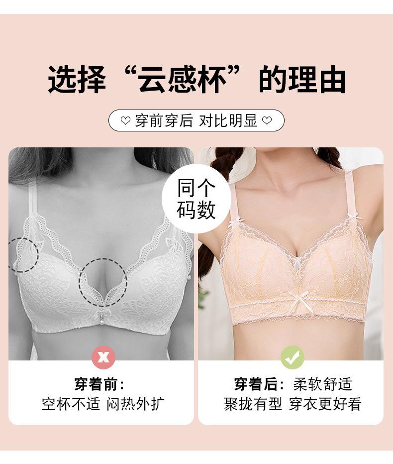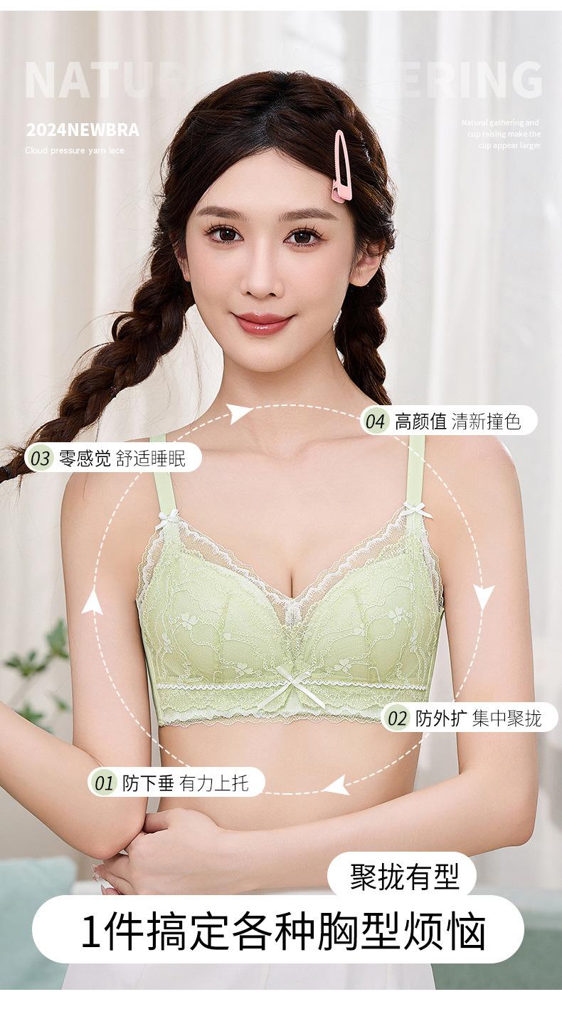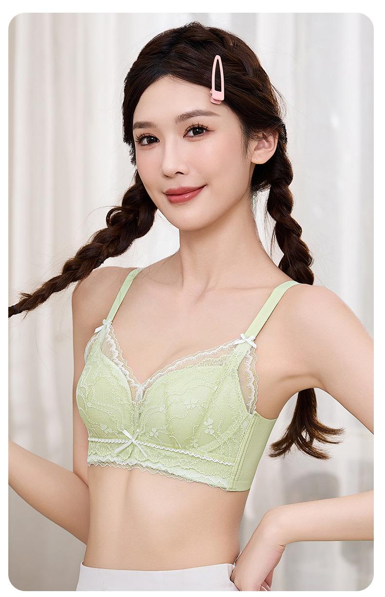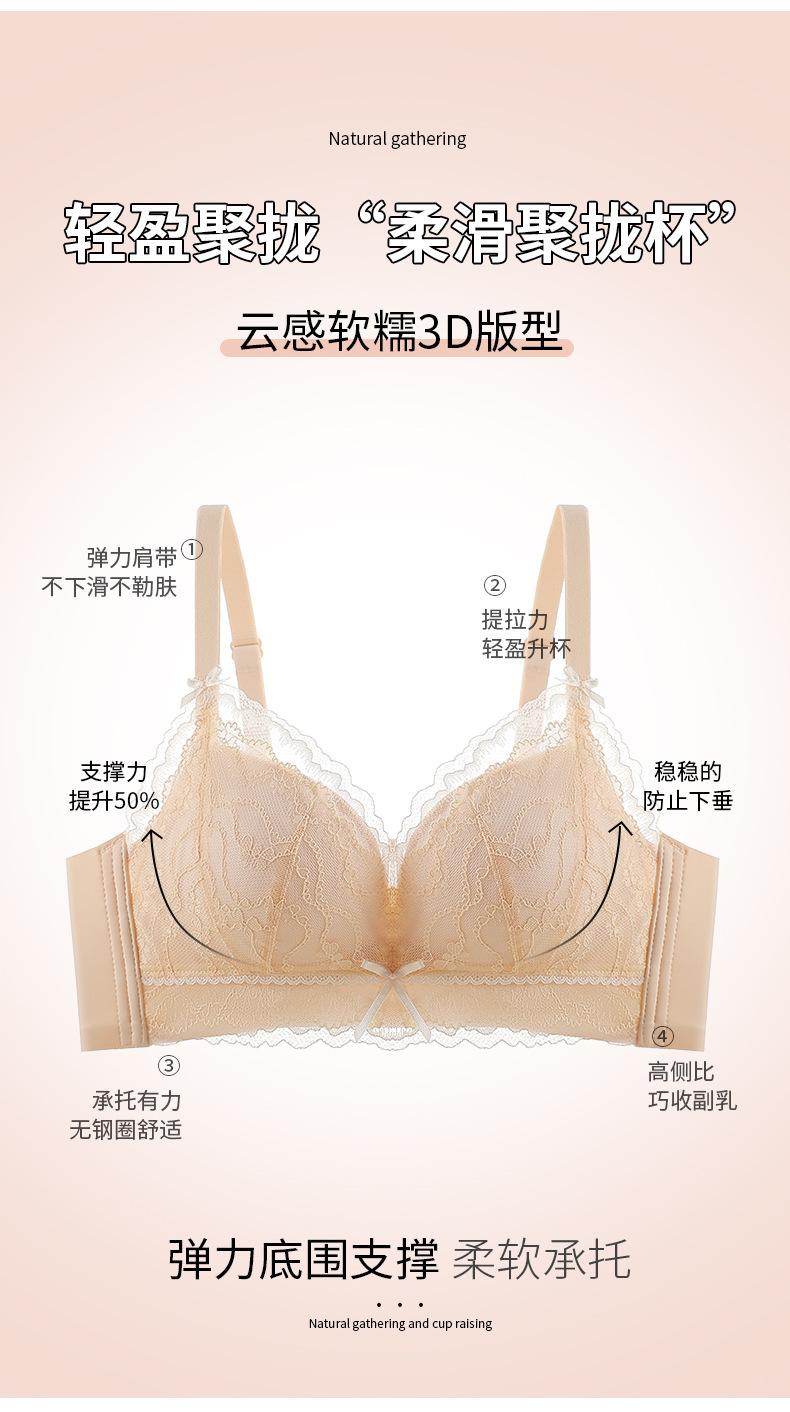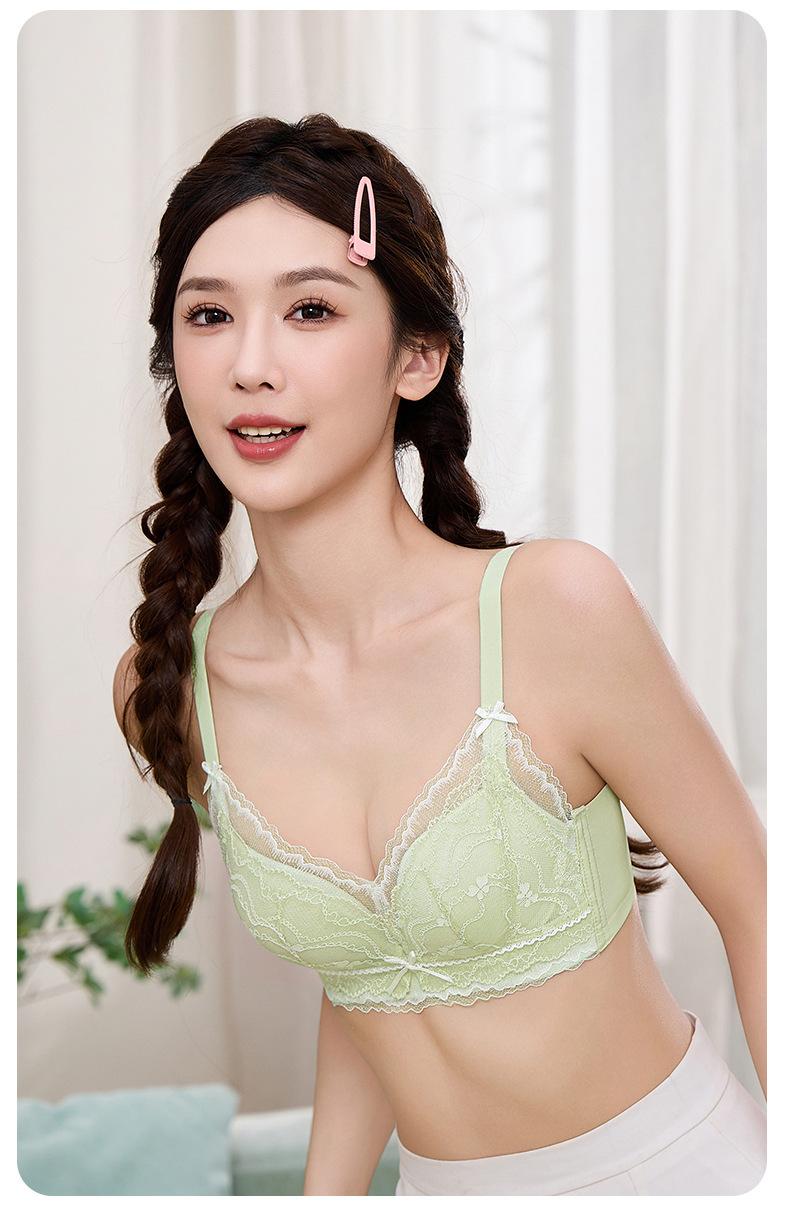 Ropa interior de modal transpirable de seda de morera para mujer con encaje, push-up para busto pequeño, brasier ajustable no magnético, conjunto de brasier