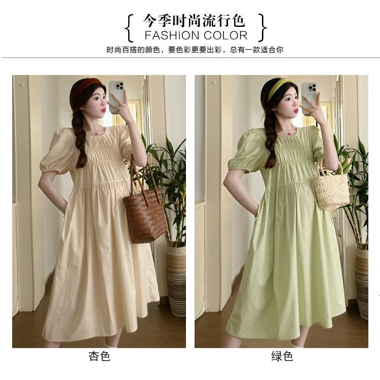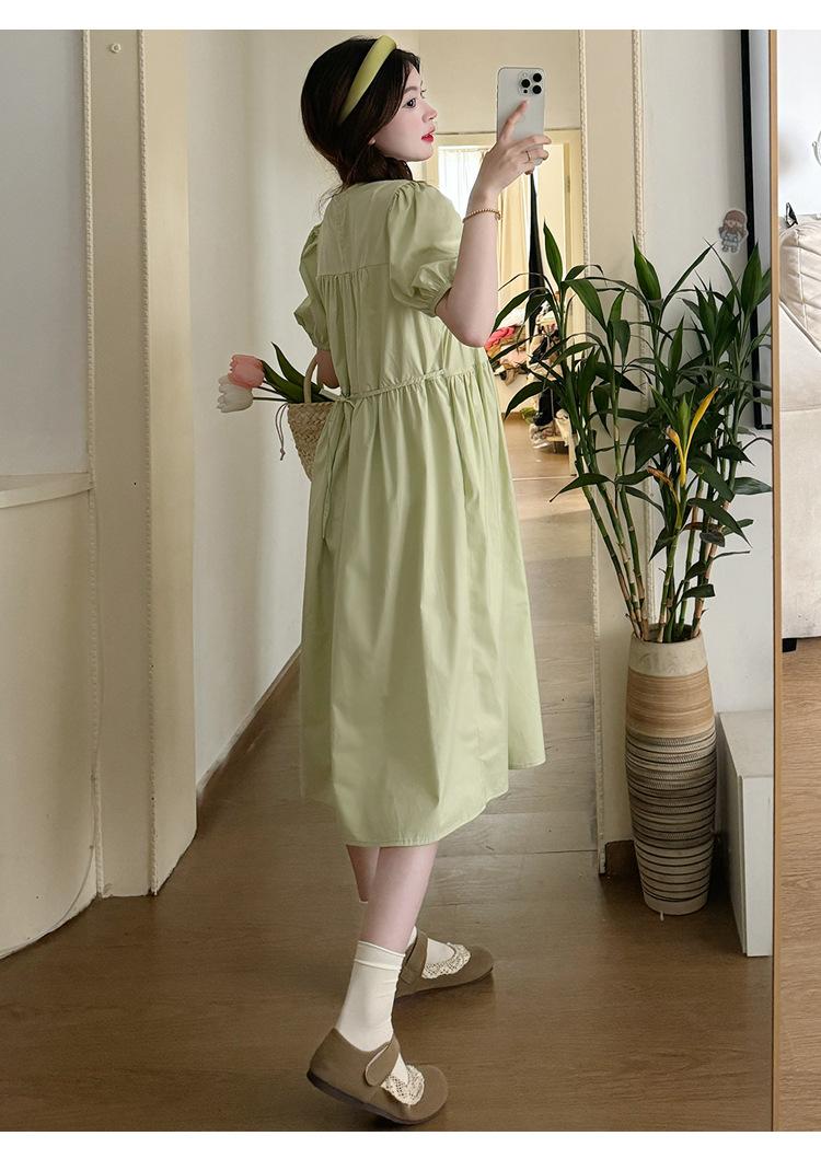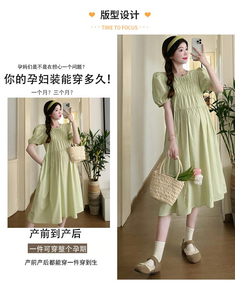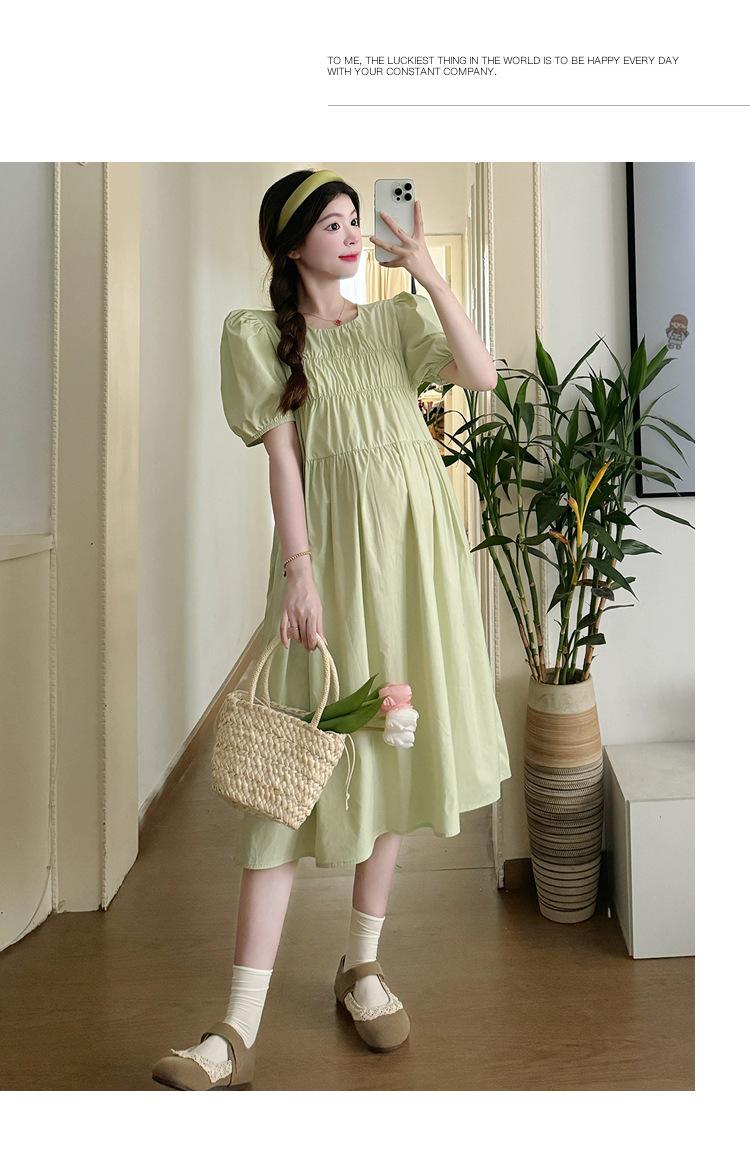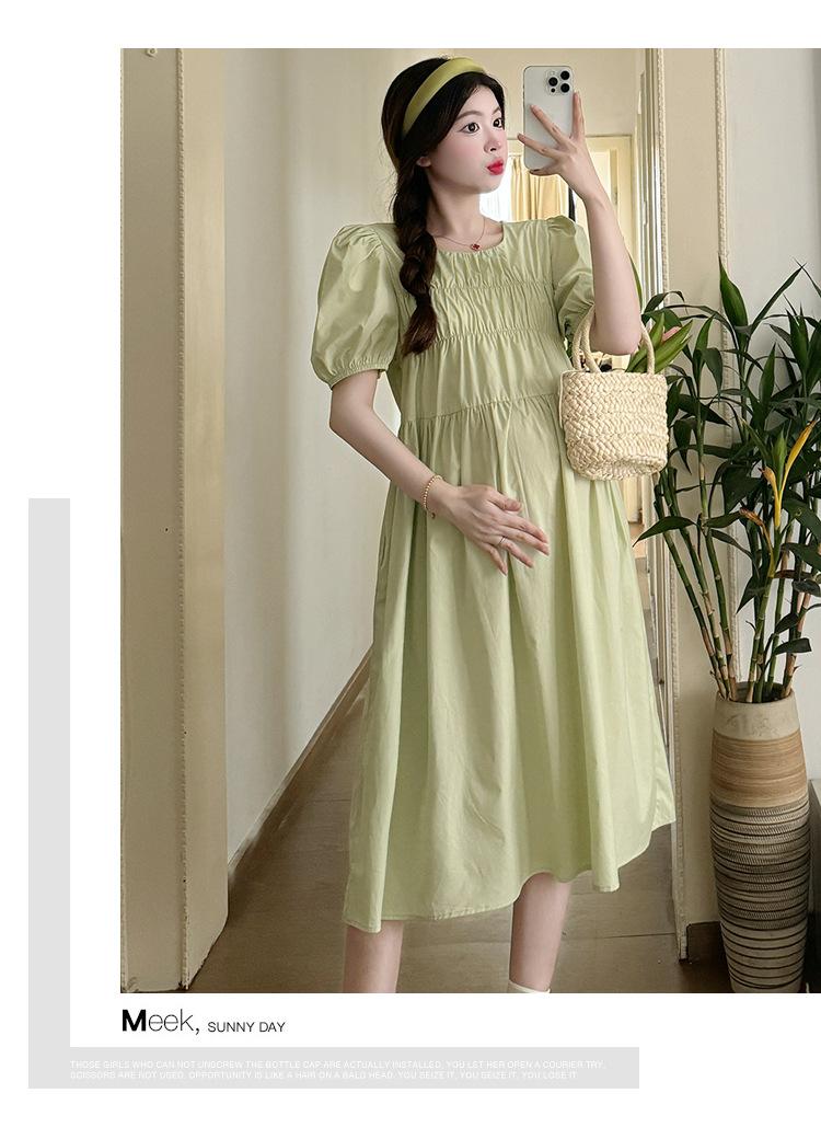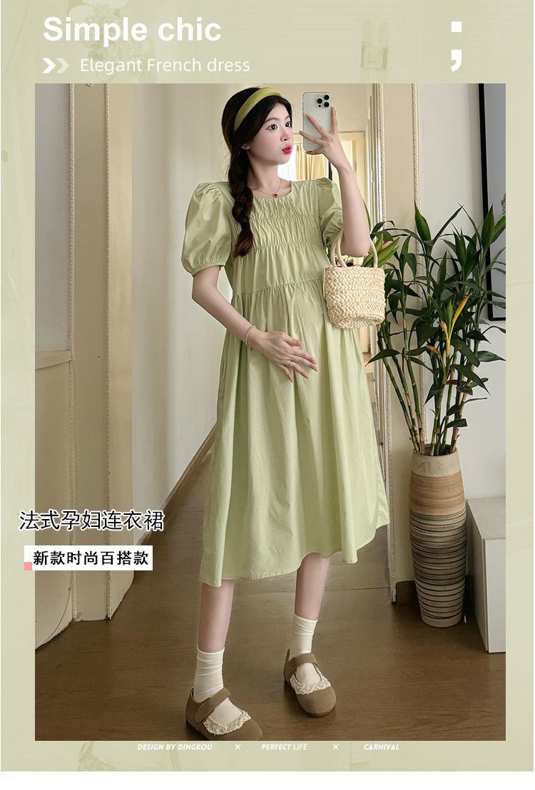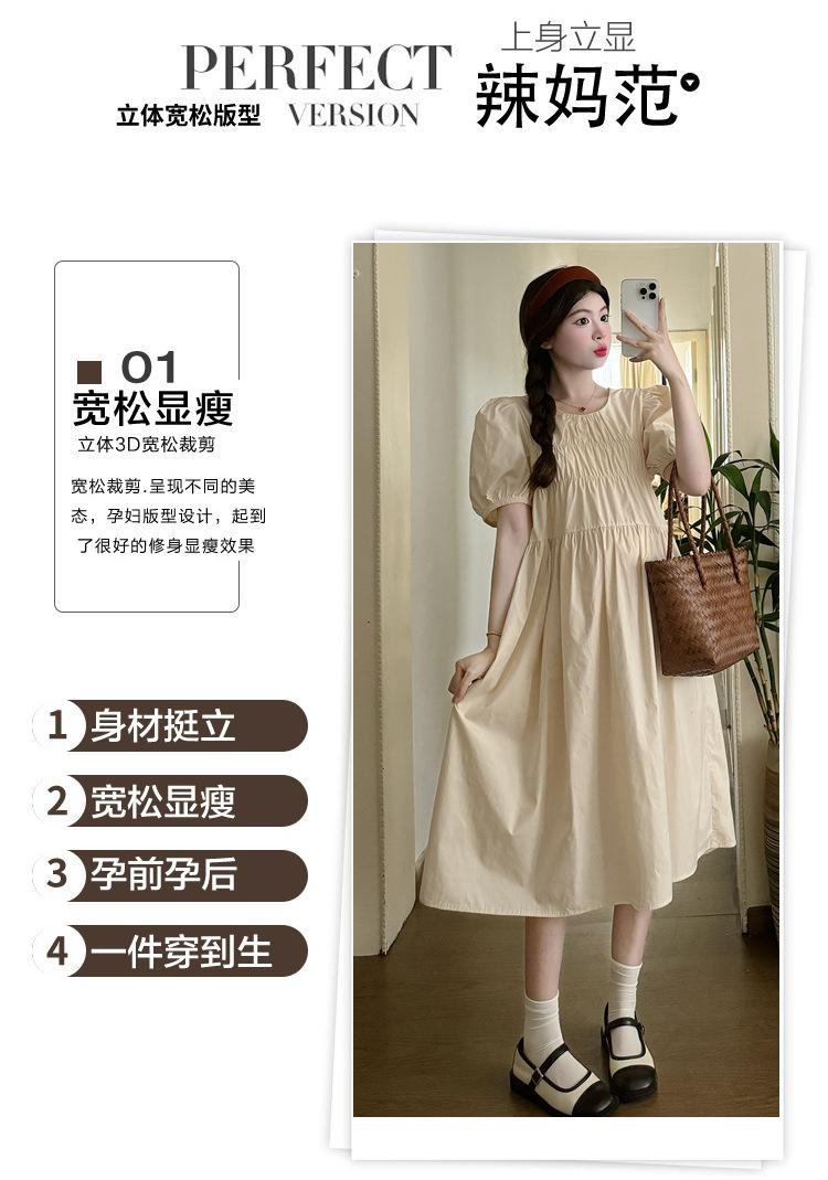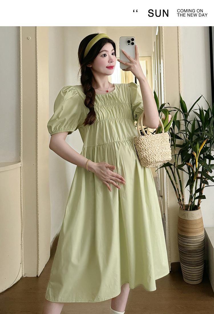 Maternidad 2024 Verano Nuevo Estilo Coreano Moda Sencillo Dulce Holgado Celebridad de Internet Media Longitud Vestido para Mujeres Embarazadas