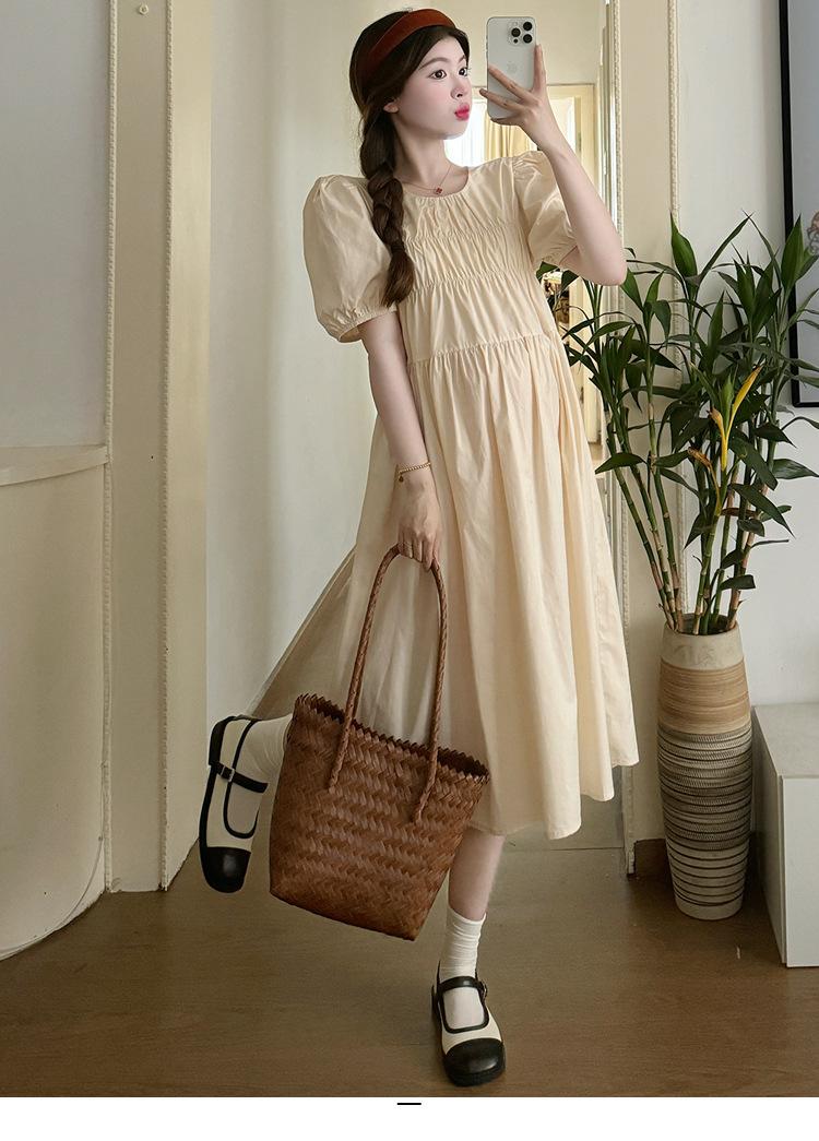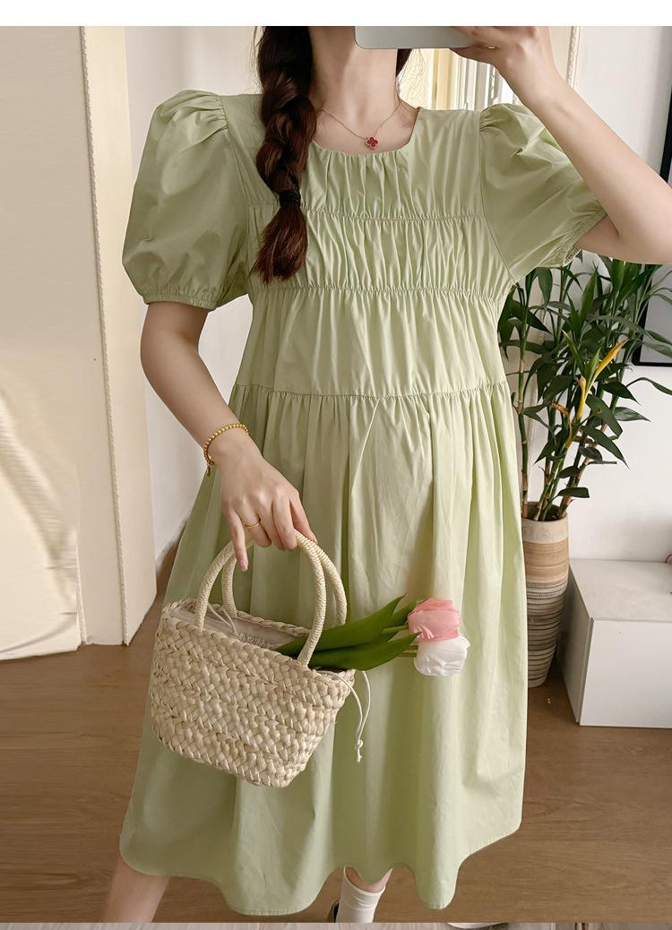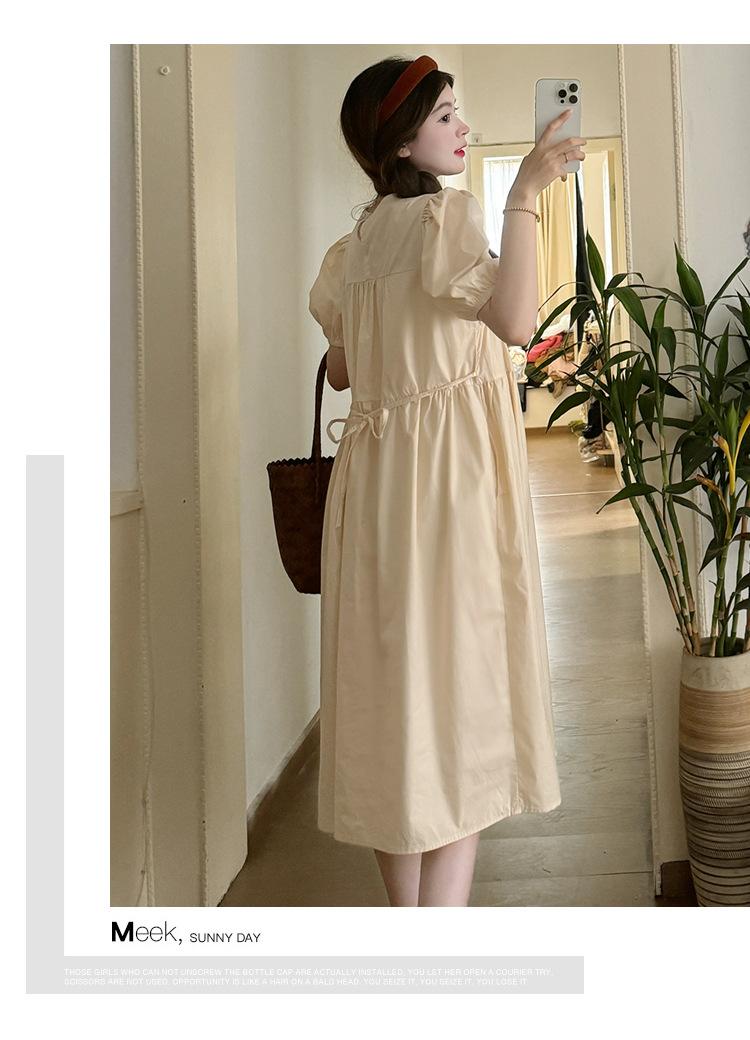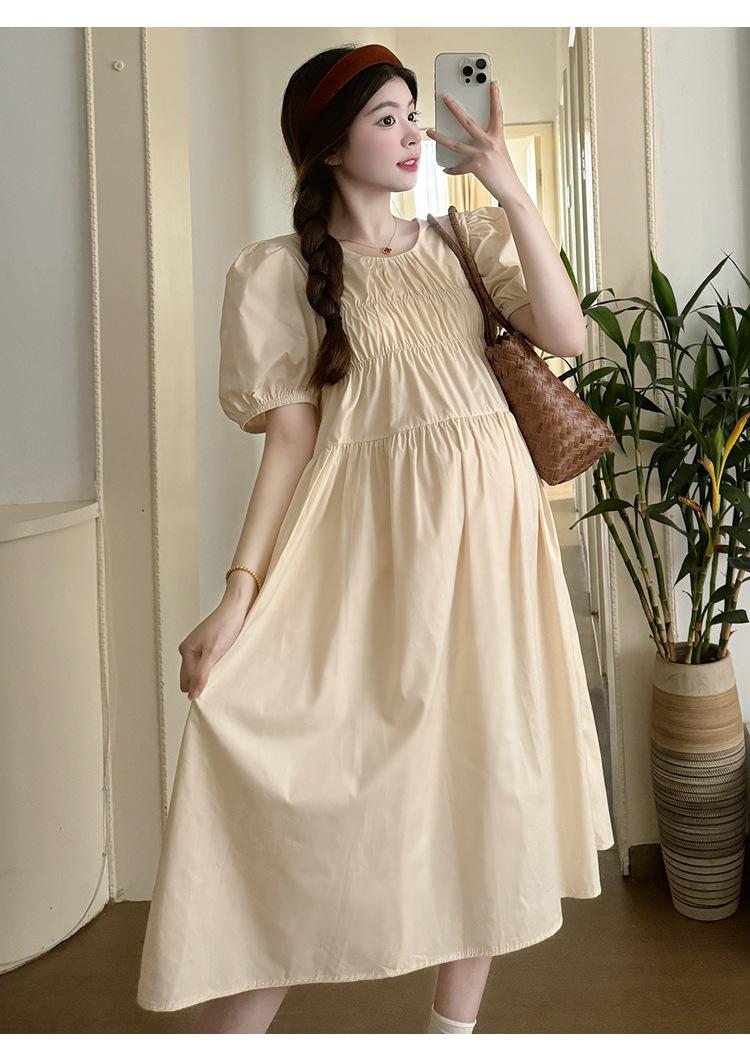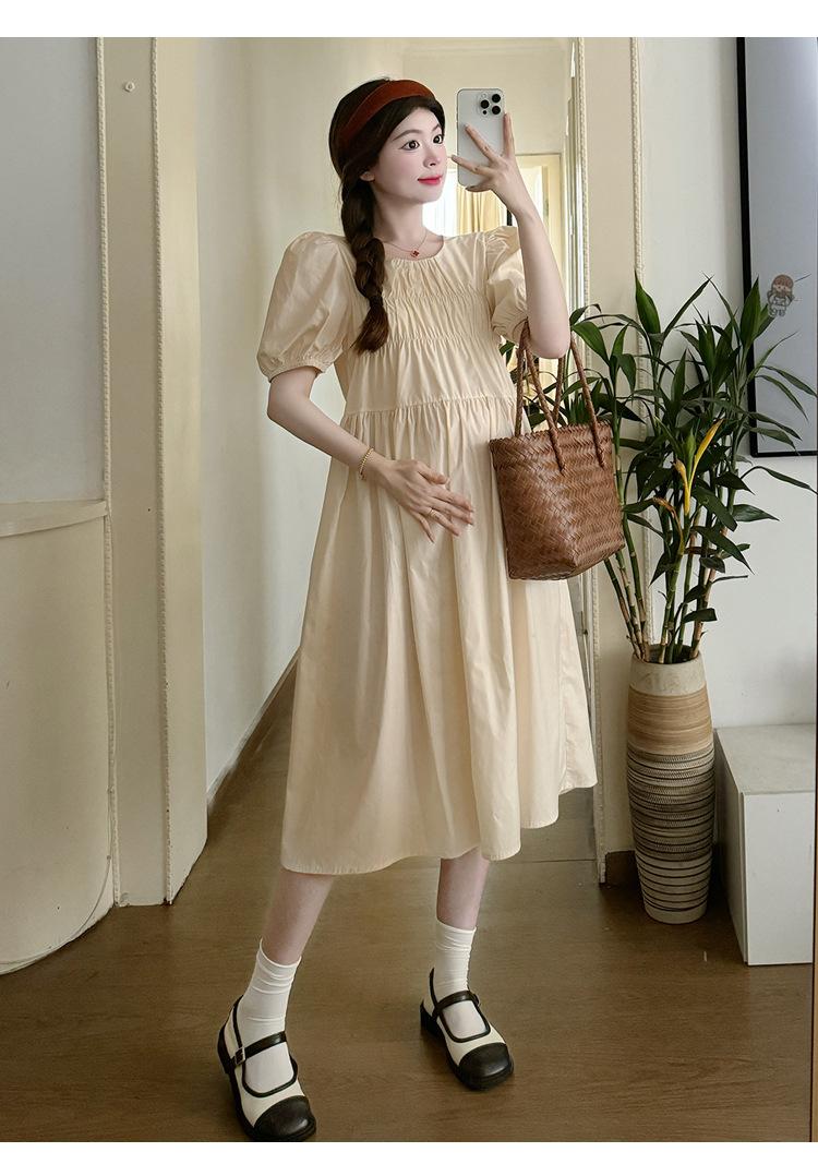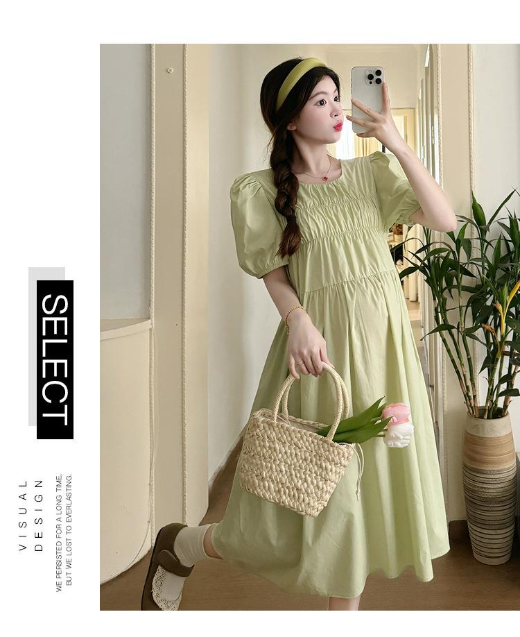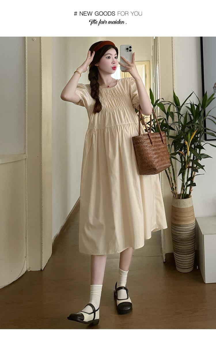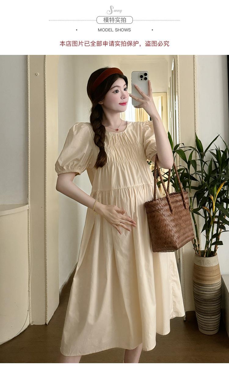 Maternidad 2024 Verano Nuevo Estilo Coreano Moda Sencillo Dulce Holgado Celebridad de Internet Media Longitud Vestido para Mujeres Embarazadas