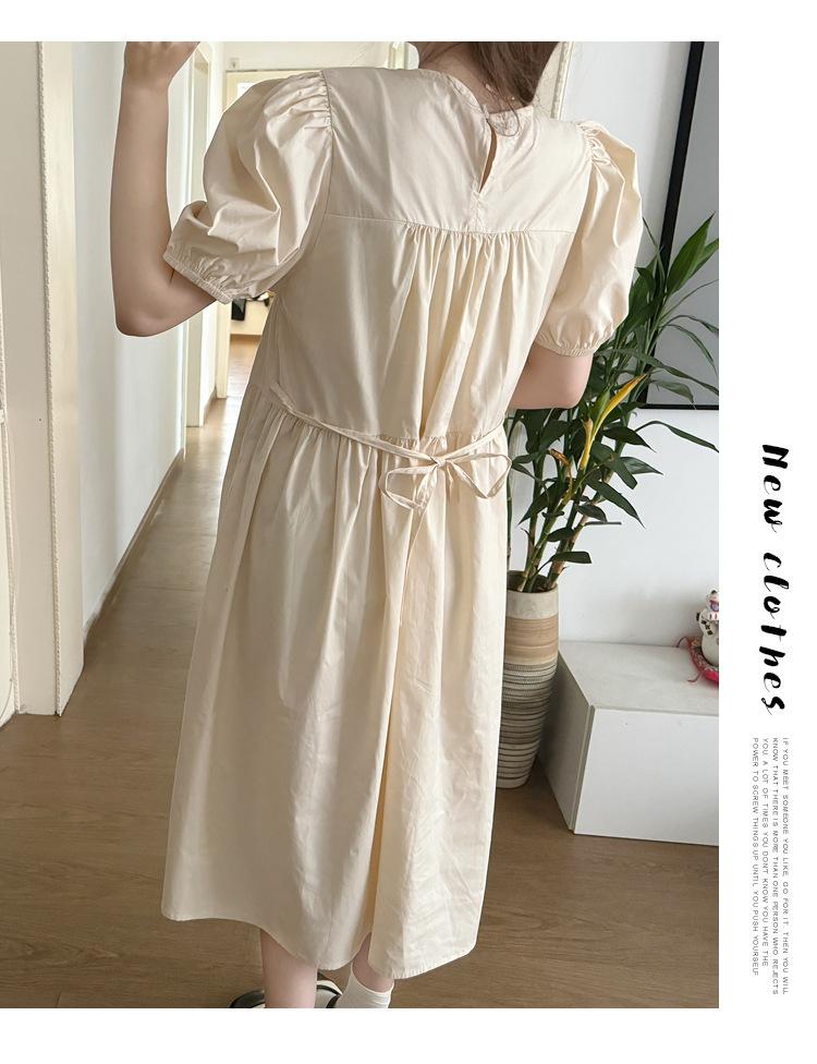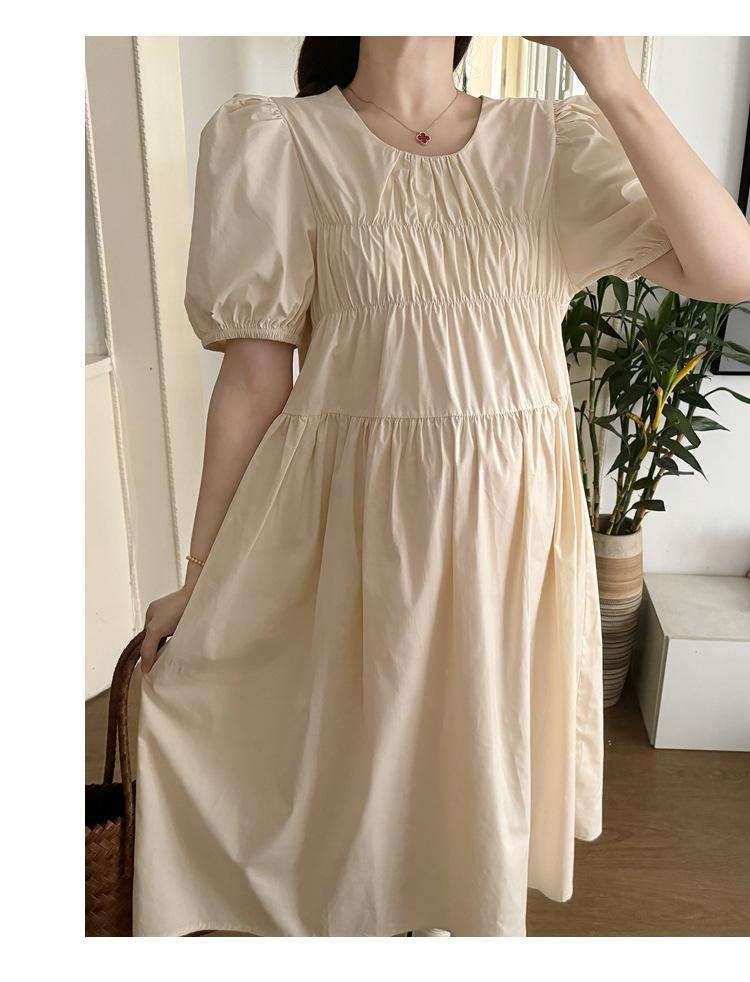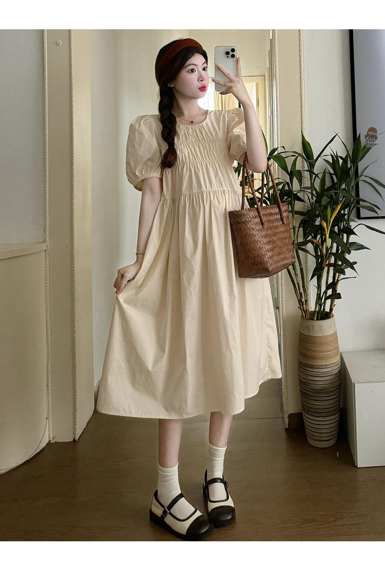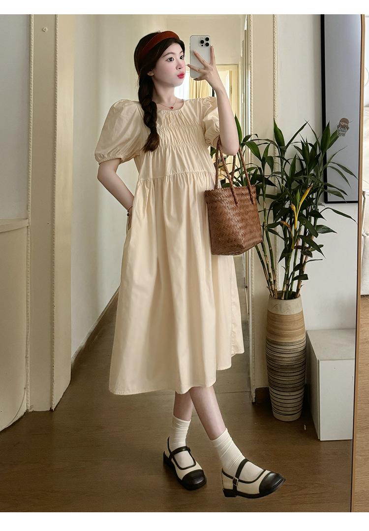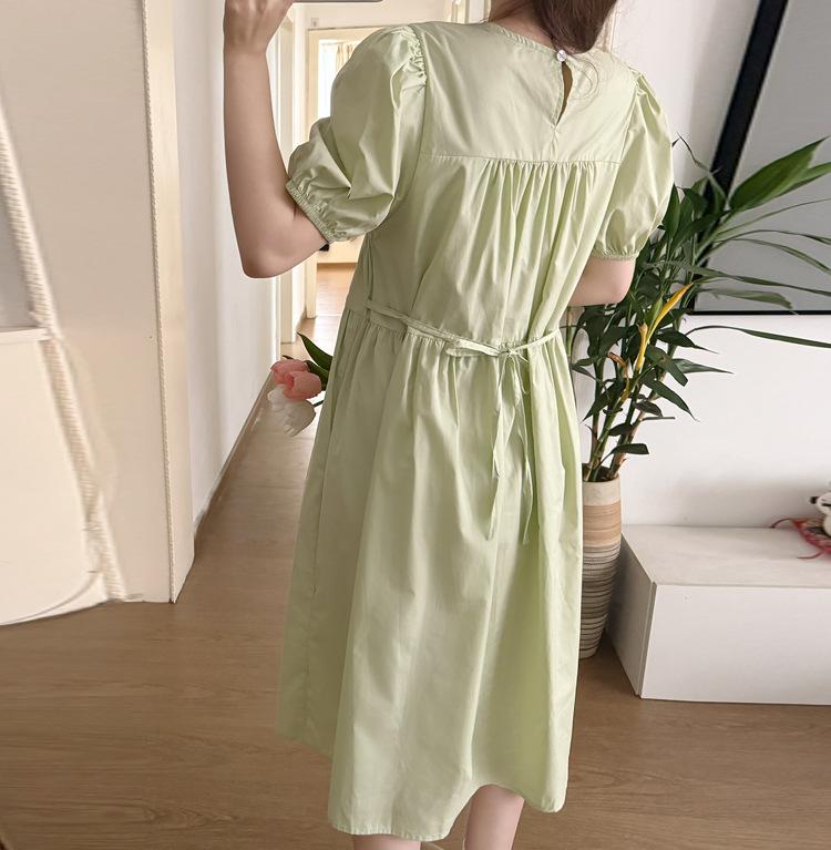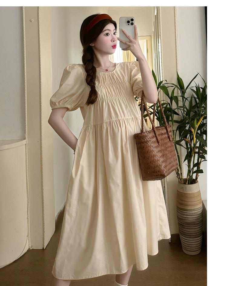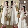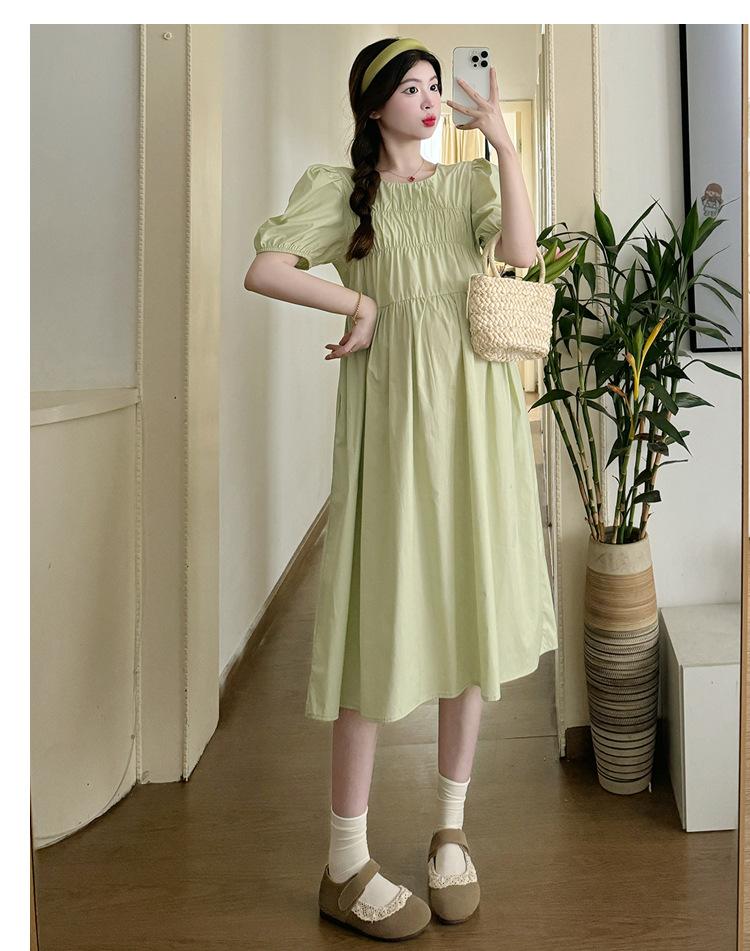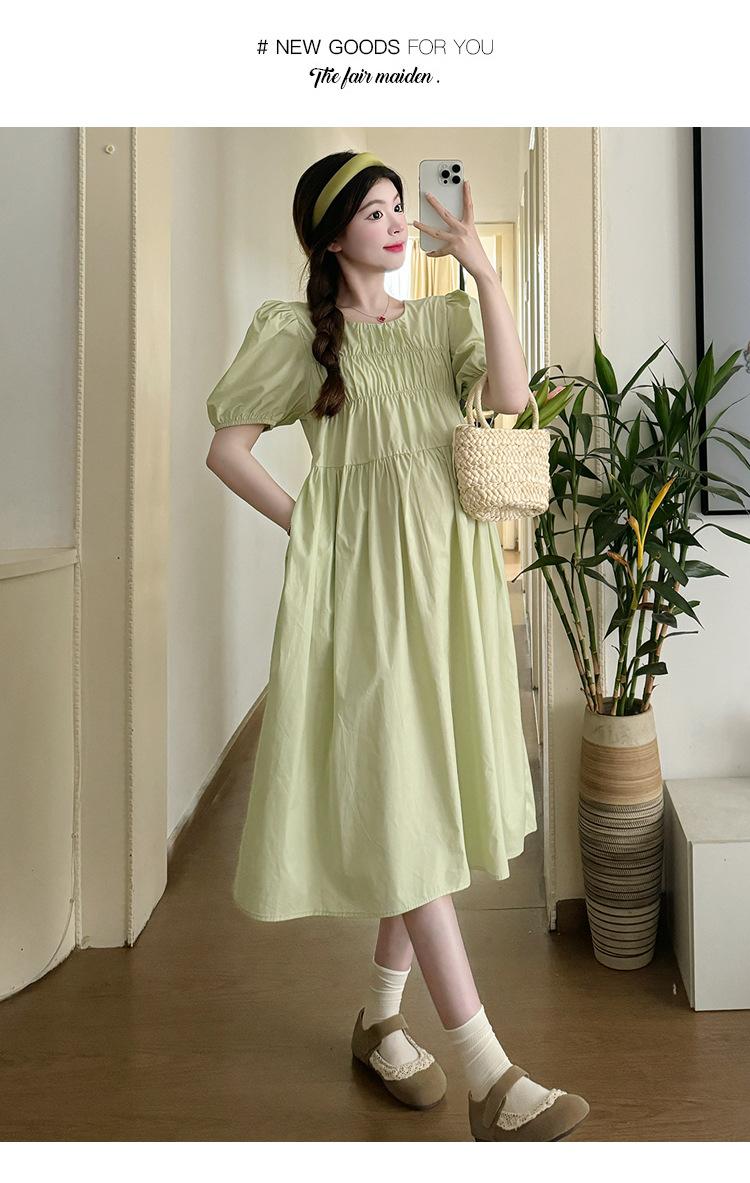 Maternidad 2024 Verano Nuevo Estilo Coreano Moda Sencillo Dulce Holgado Celebridad de Internet Media Longitud Vestido para Mujeres Embarazadas
