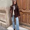 Casual Transfronterizo AliExpress Slub Europeo y Americano para Mujer Top Chaqueta Color Sólido albaricoque Negro Blanco Cuello Cuadrado
