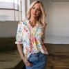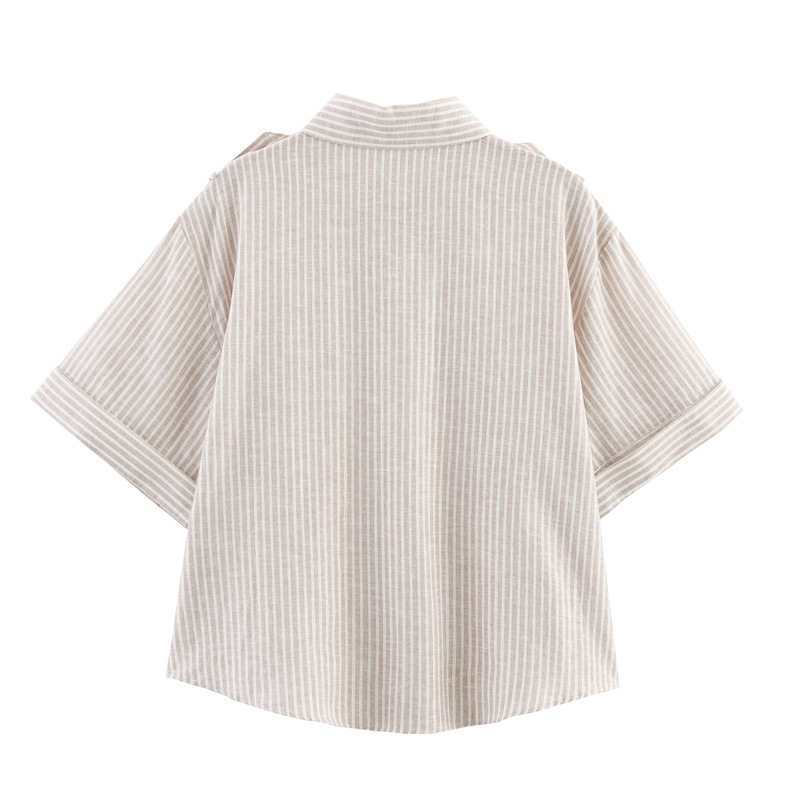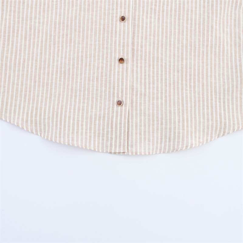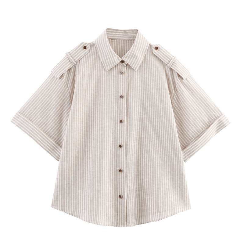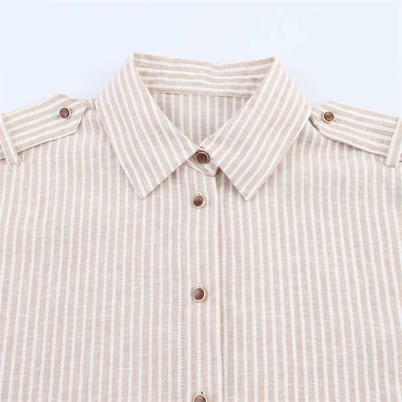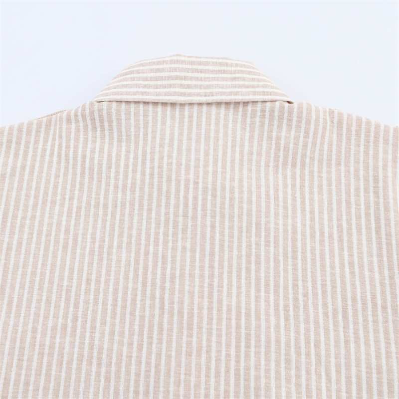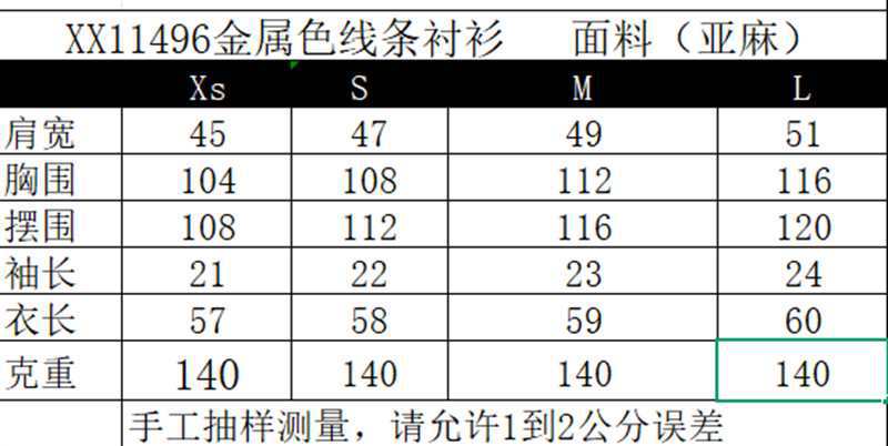 Camisa Rayada Comercio Exterior Color Metálico Estilo Europeo y Americano Moda Casual para Mujer Manga Corta Línea Primavera y Verano Nuevo Estilo