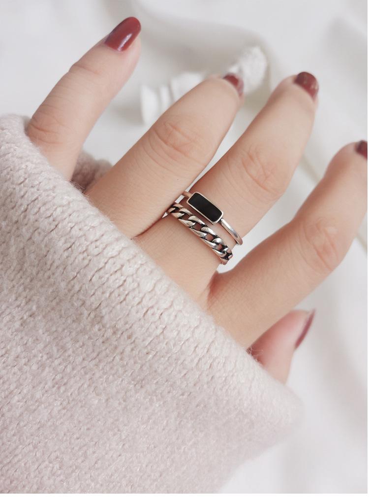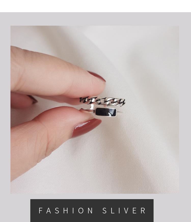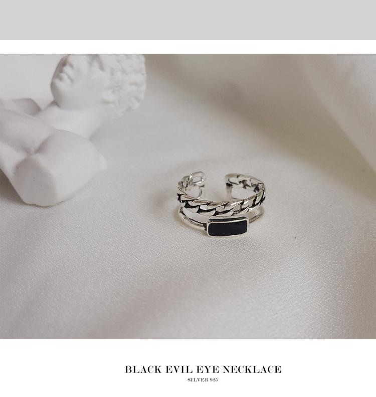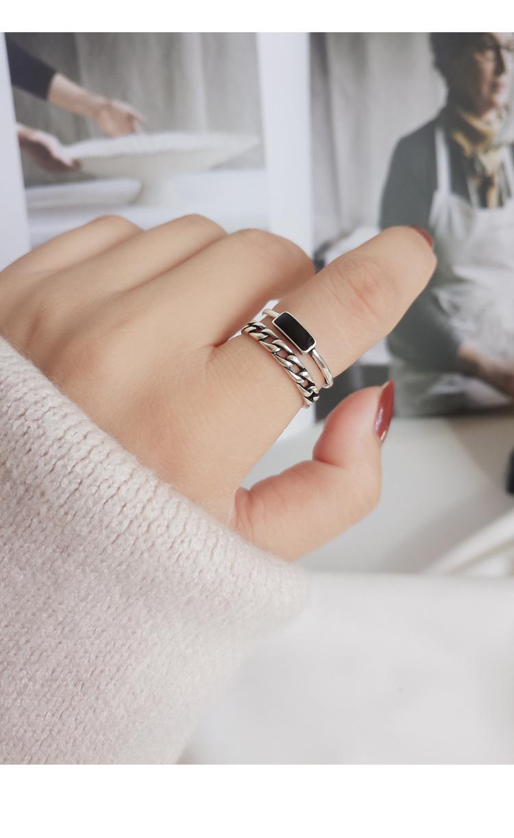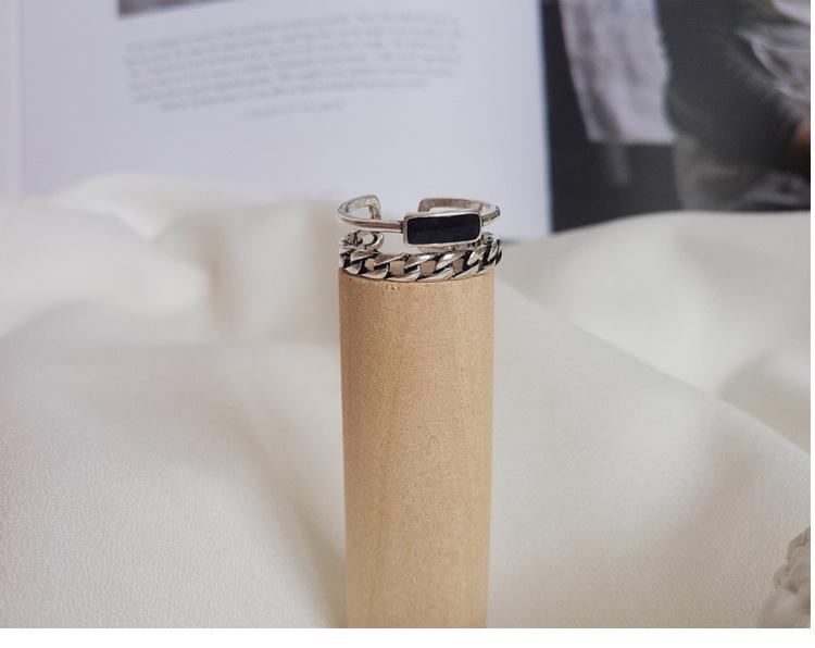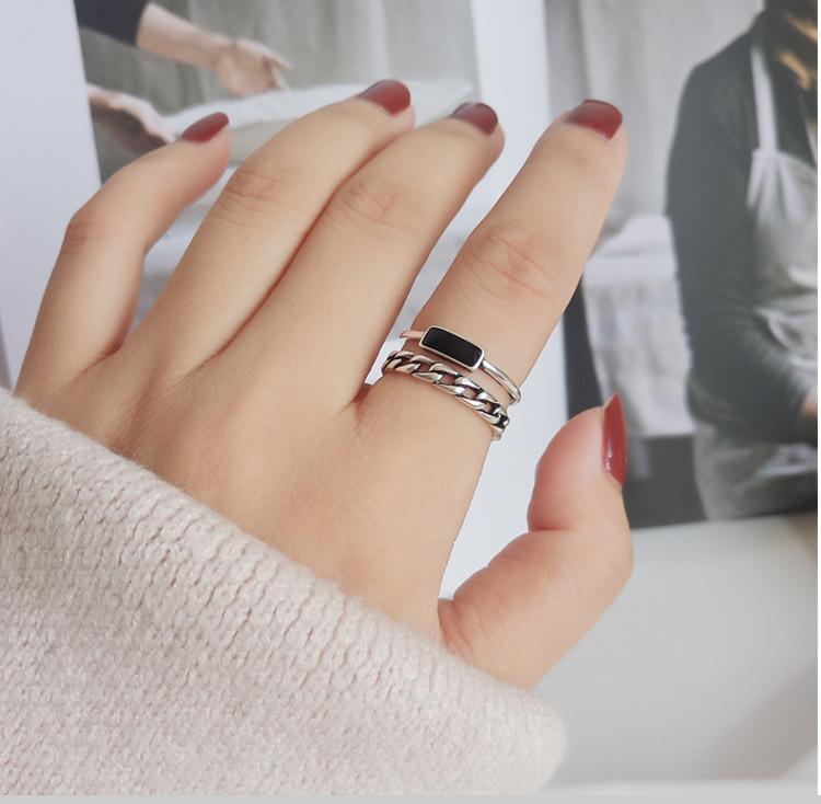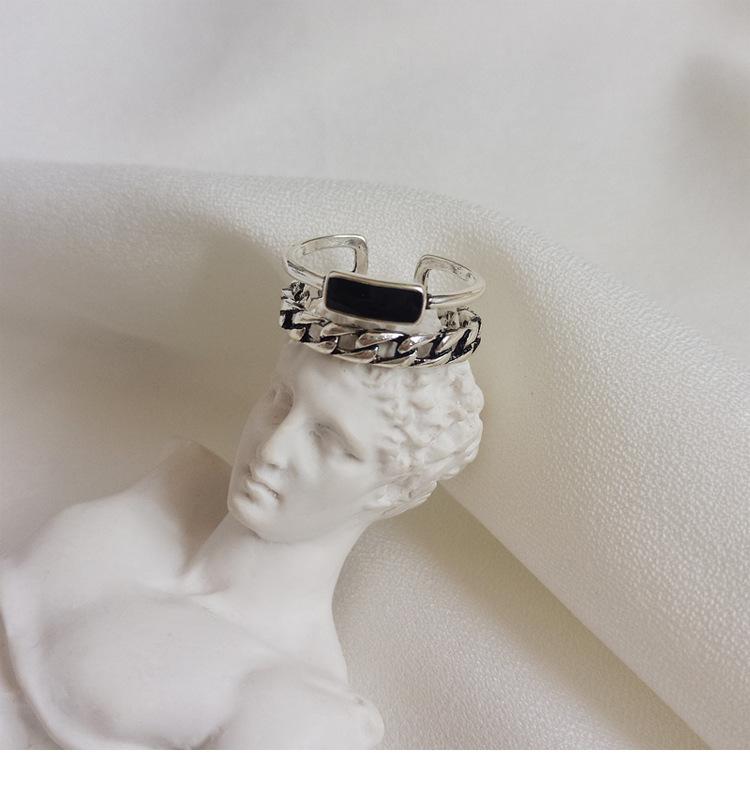 Anillo Chic Retro Plata para Mujer Plata 925 Estilo Coreano Moderno Moda Cadena Esmalte Goteado Anillo Doble Capa Versátil Anillo Personalizado