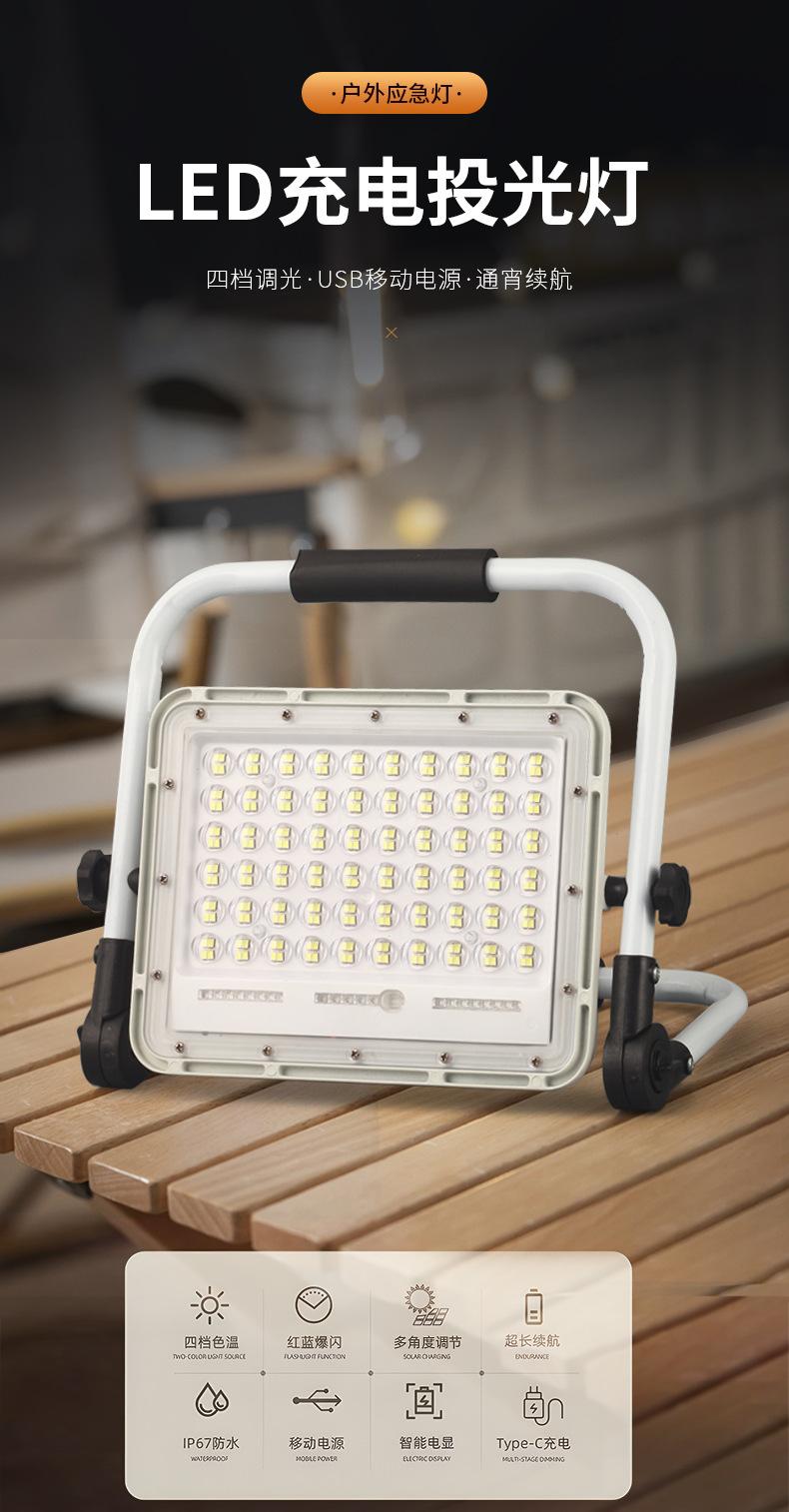 Yaming Reflector LED Multifuncional Recargable Foco Ultrabrillante Luz Portátil de Mano para Exterior Impermeable Iluminación de Emergencia