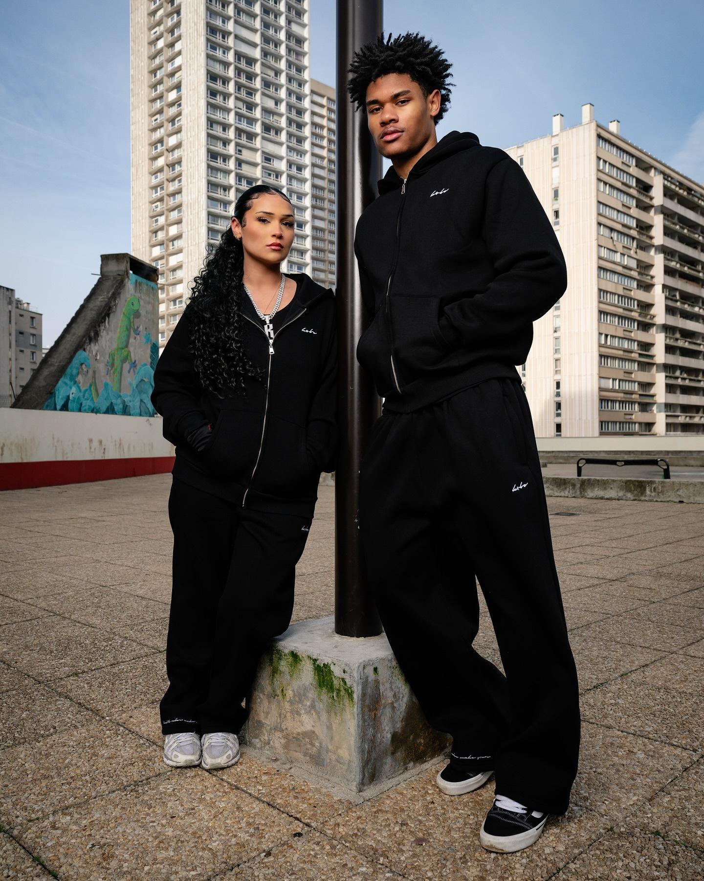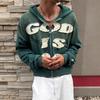 Comercio exterior europeo y americano suelto simple estampado de letras otoño e invierno europeo y americano chaqueta de cintura elástica con capucha traje de moda para hombres y mujeres