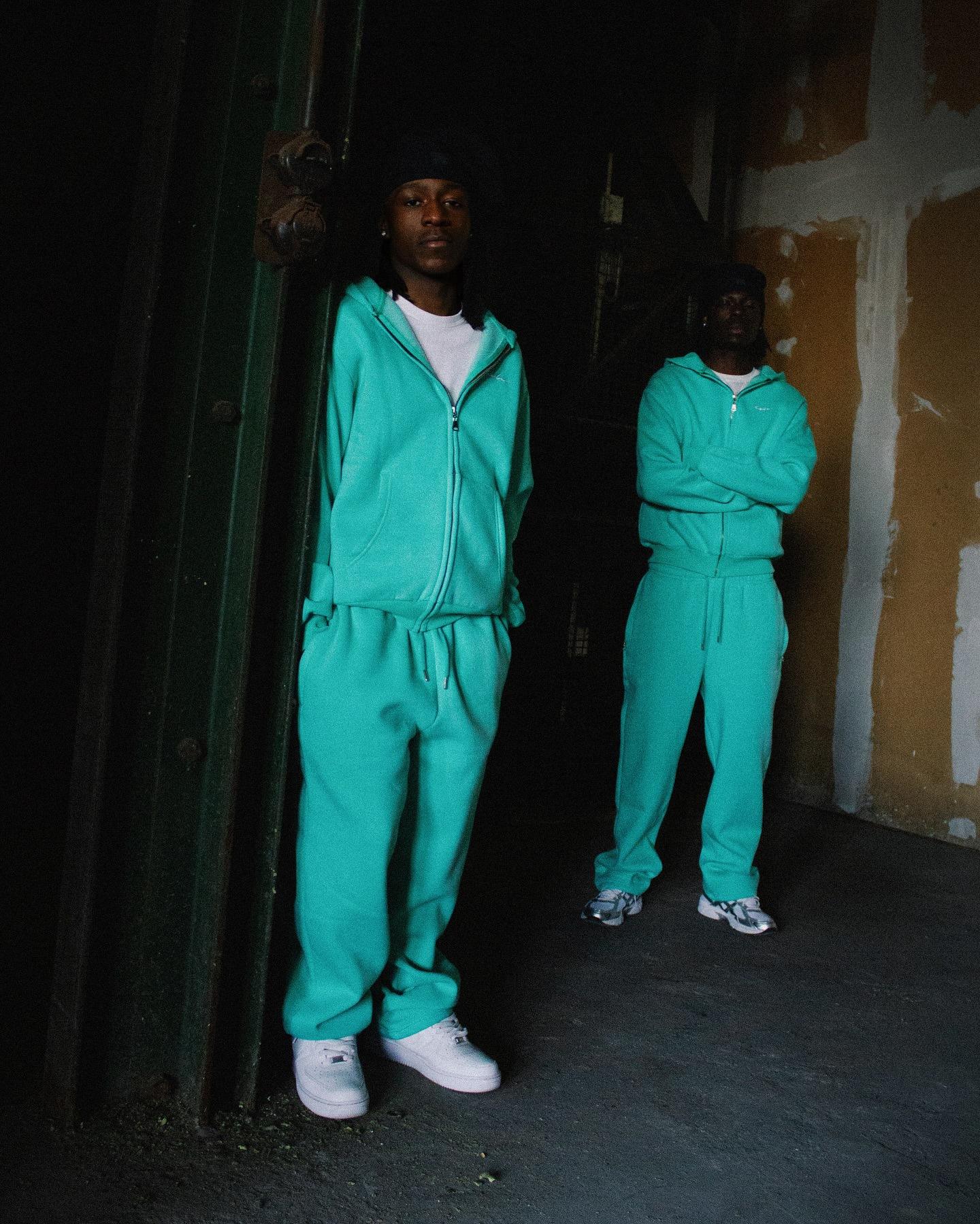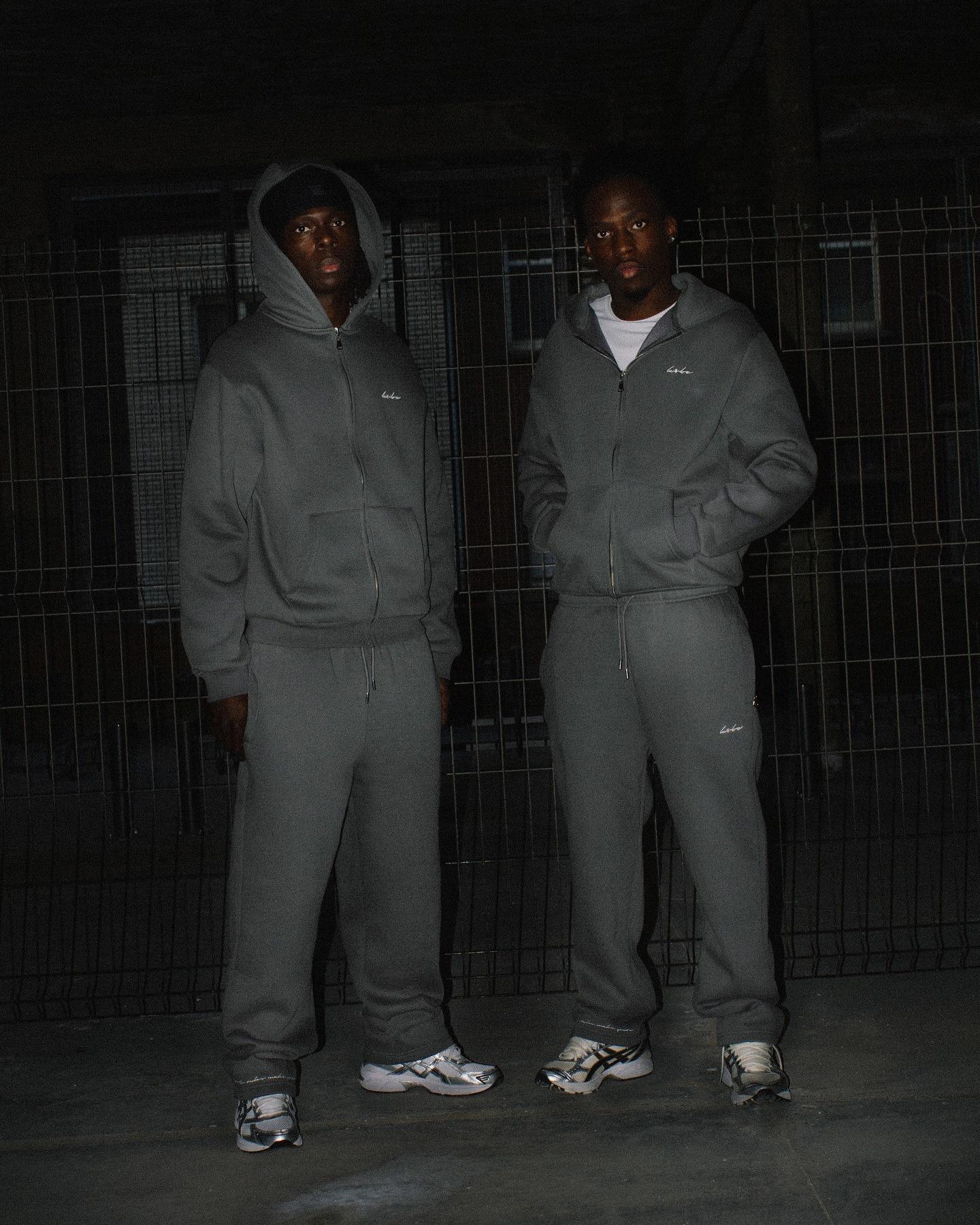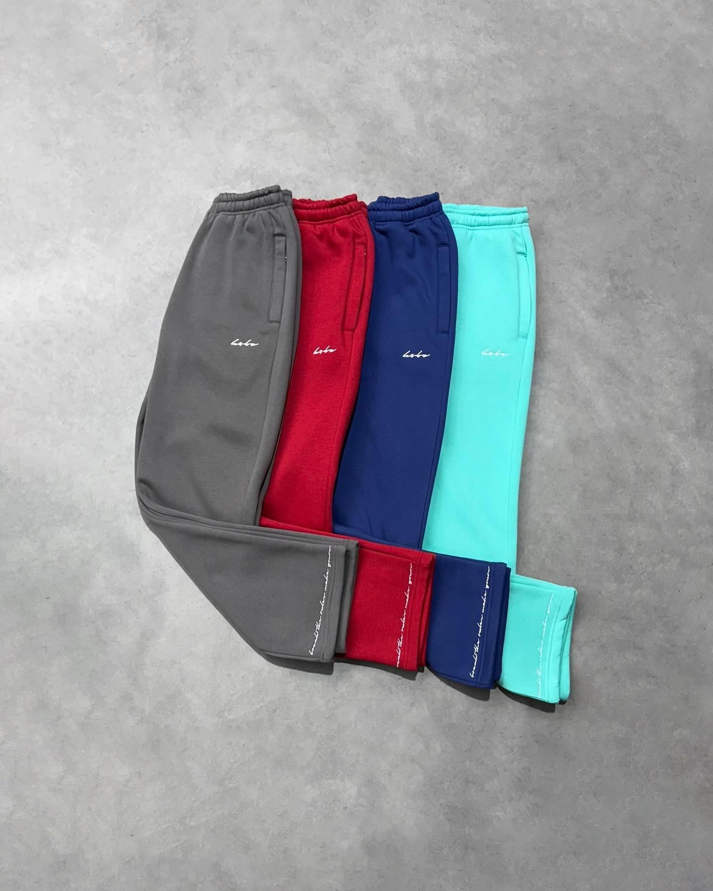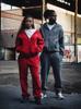 Gray sweatshirt, Gray trousers, Red sweatshirt, Red trousers, Blue sweatshirt, Blue trousers, Large quantity p...