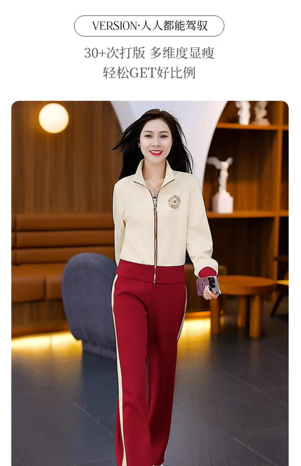 Conjunto deportivo para mujer, primavera y otoño, novedad de 2024, elegante y a la moda, sudadera antiedad con cuello y chaqueta con cremallera, conjunto fino de dos piezas.