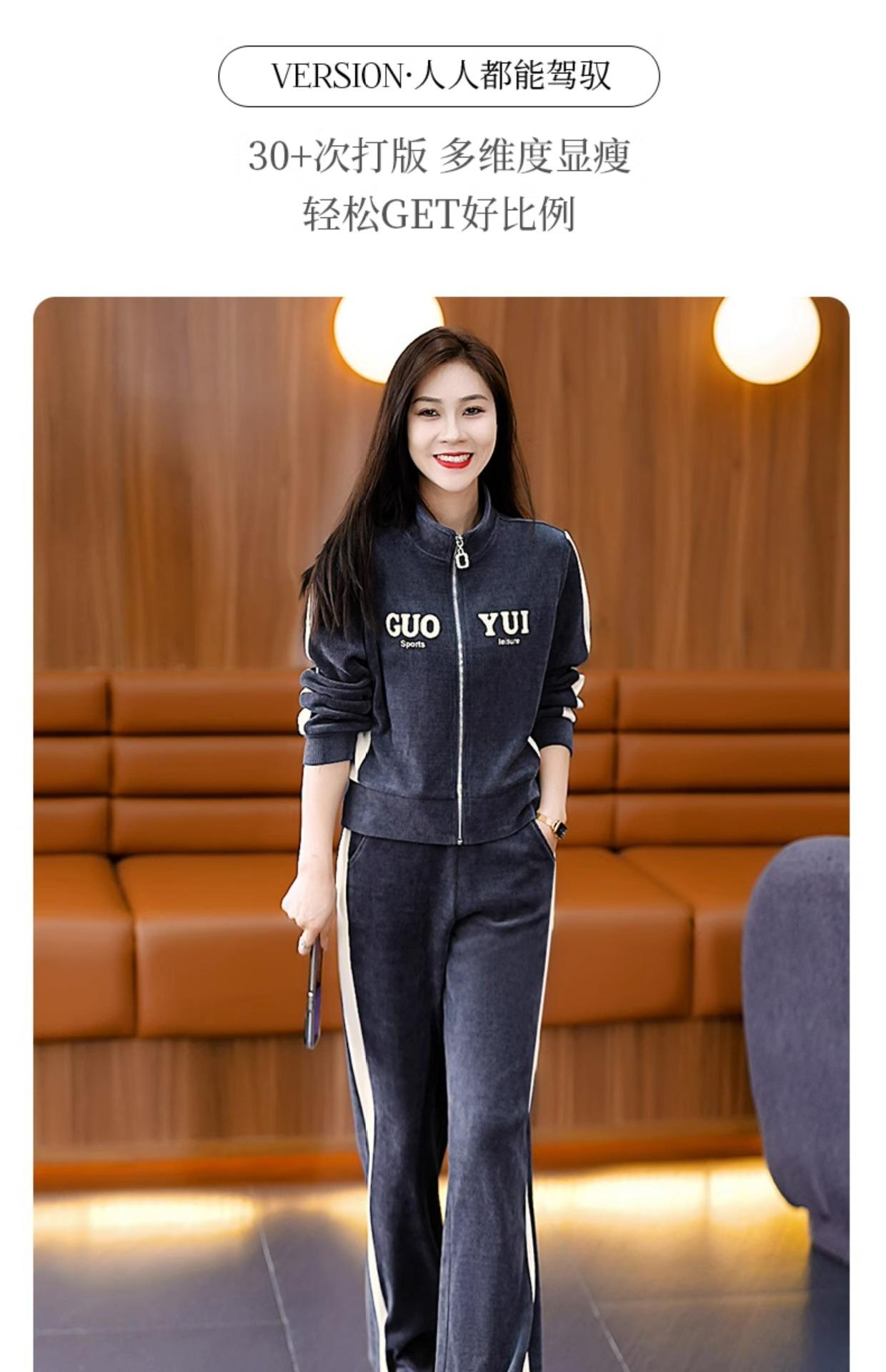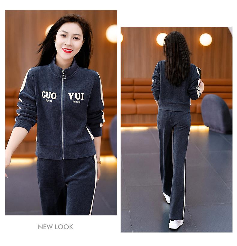Traje deportivo de ocio de primavera y otoño para mujer, estilo occidental, chaqueta que reduce la edad, talla grande, conjunto de dos piezas elegante y a la moda de alta gama para mujer