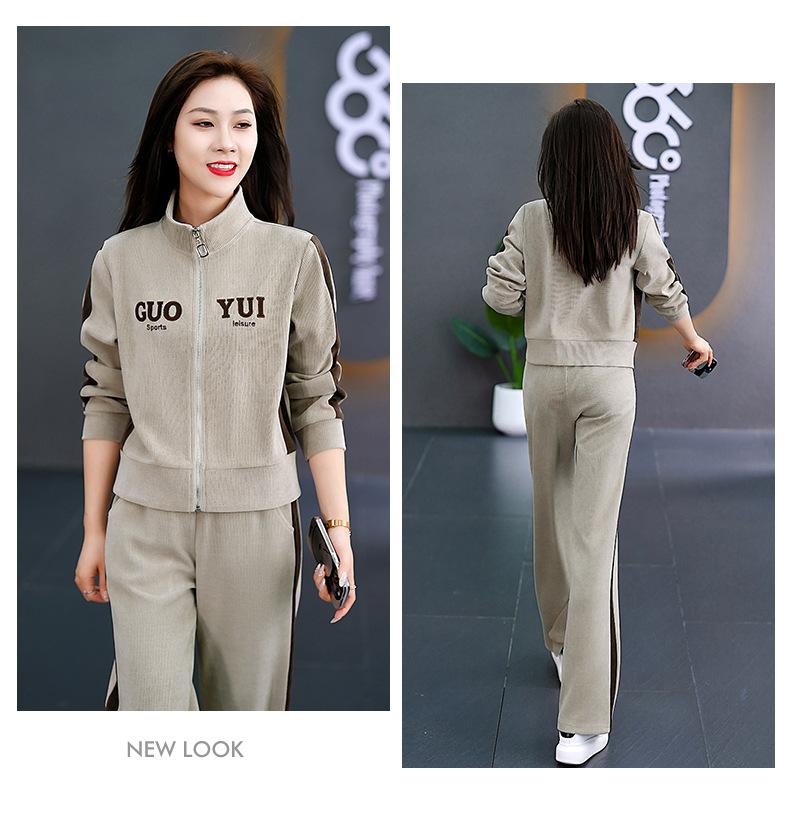 Trajes deportivos casuales de primavera y otoño para mujer, chaquetas modernas que rejuvenecen, tallas grandes, trajes de dos piezas de temperamento de alta gama y a la moda