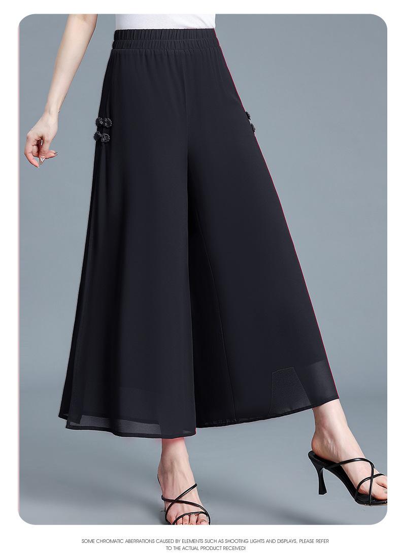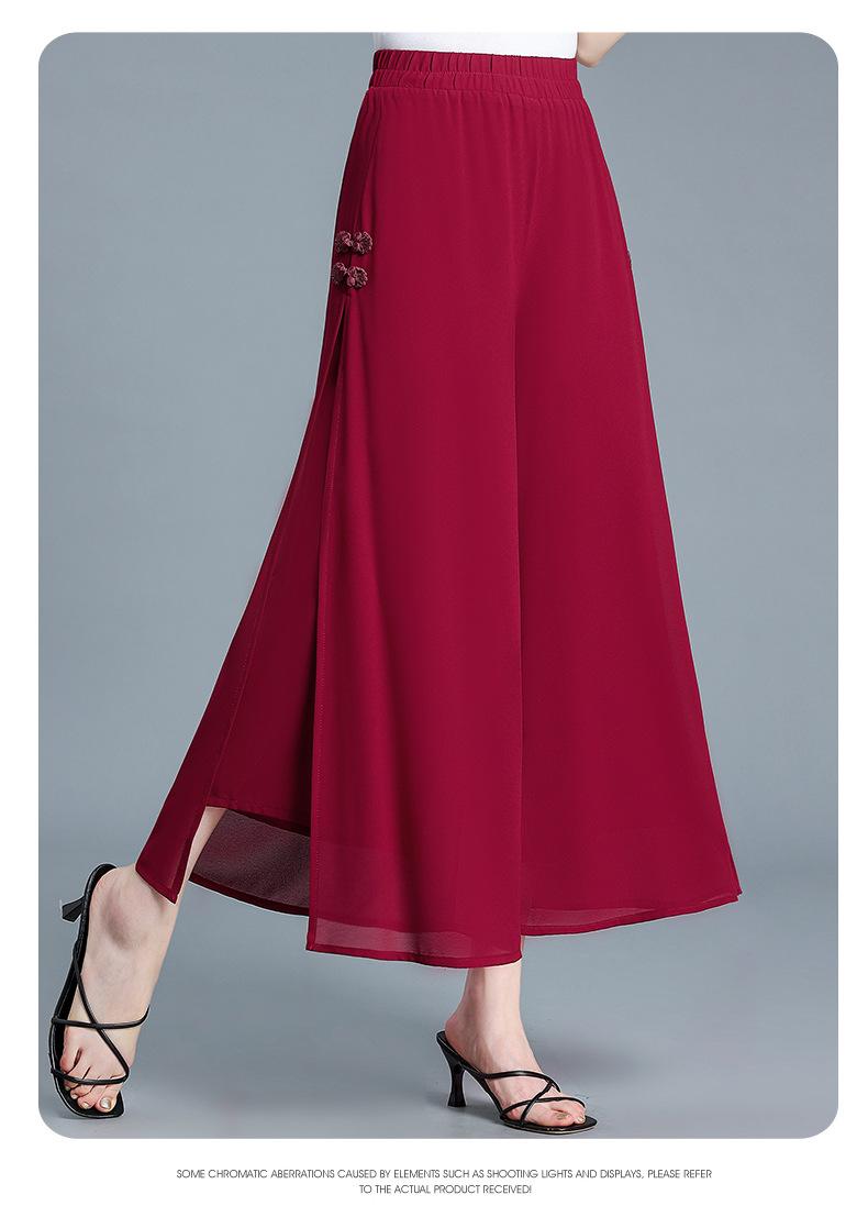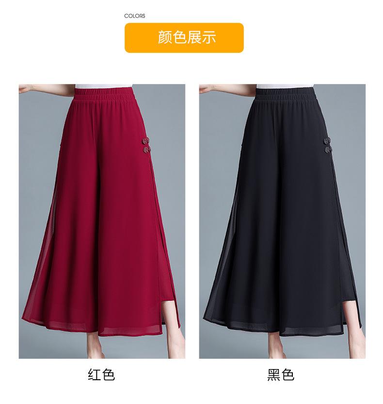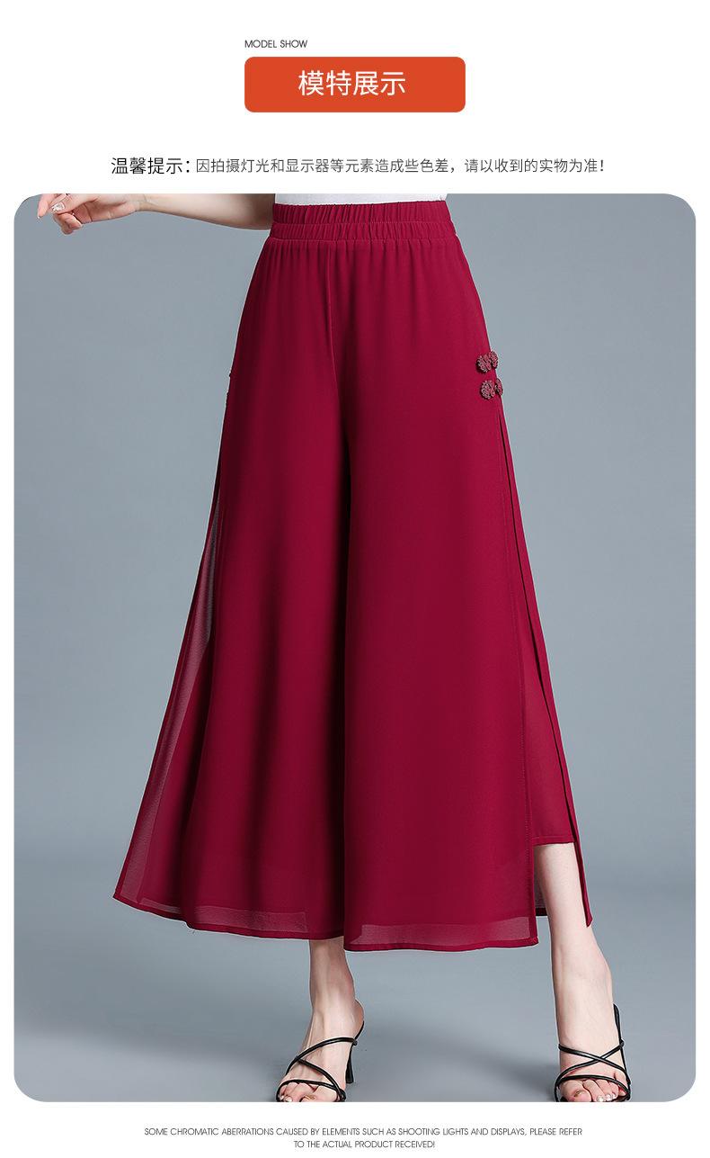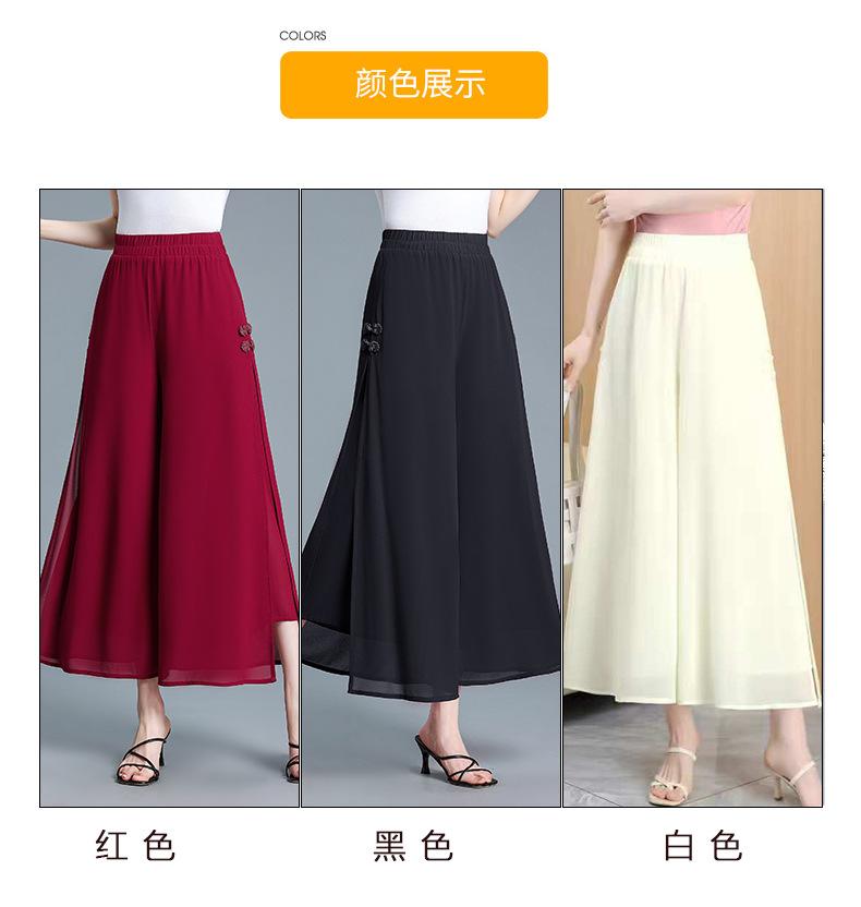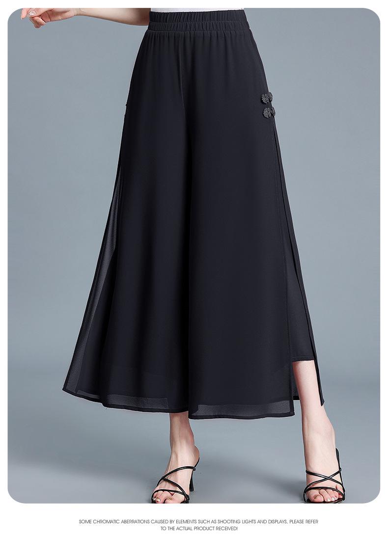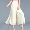 Pantalones de Chifón de Doble Capa de Pierna Ancha para Mujer, Pantalones A-Line Finos de Verano con Abertura, Pantalones Falda Largos Sueltos de Cintura Alta, Pantalones Nueve Puntos