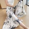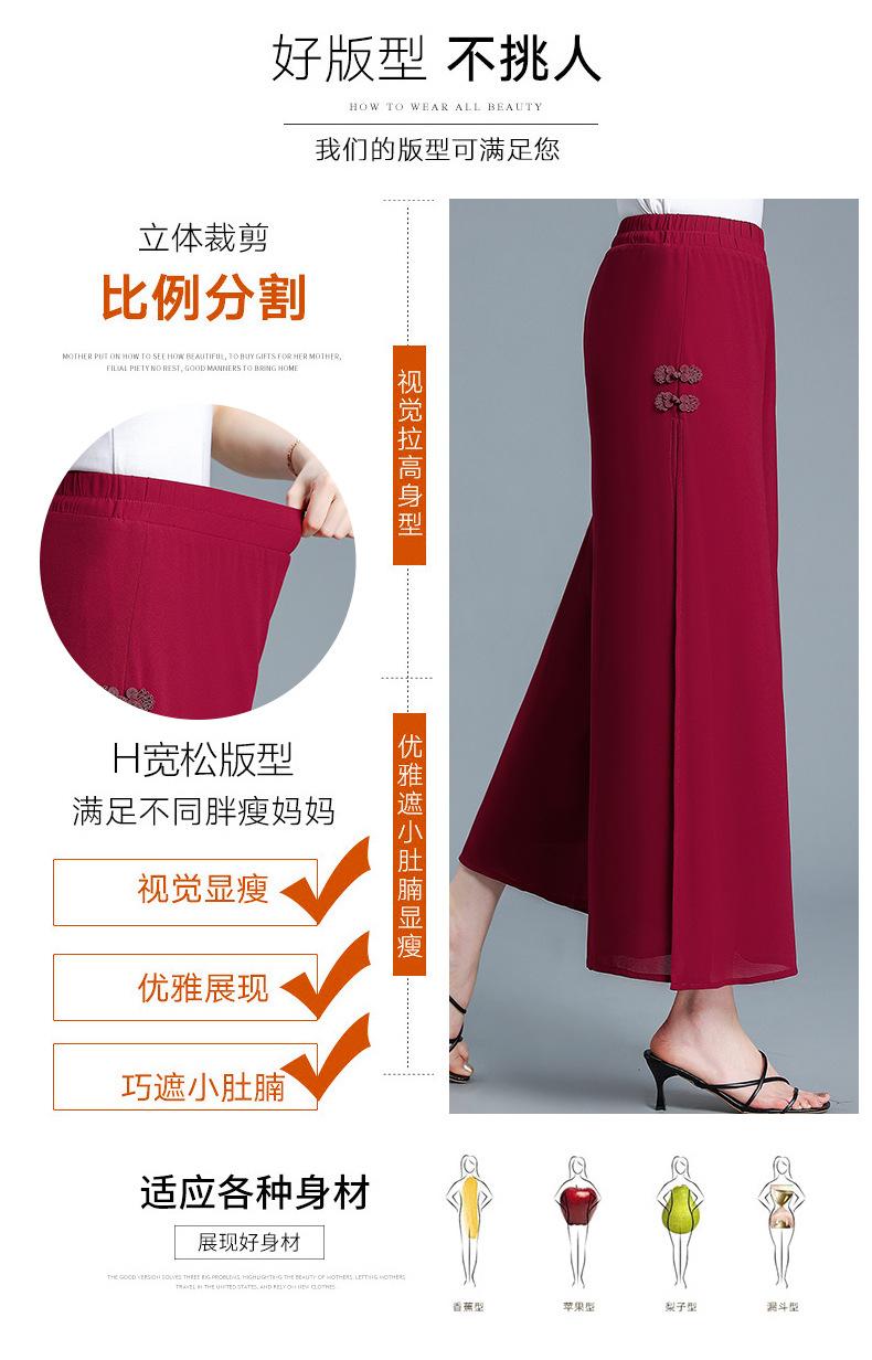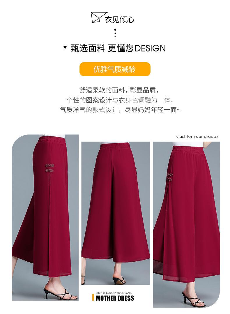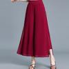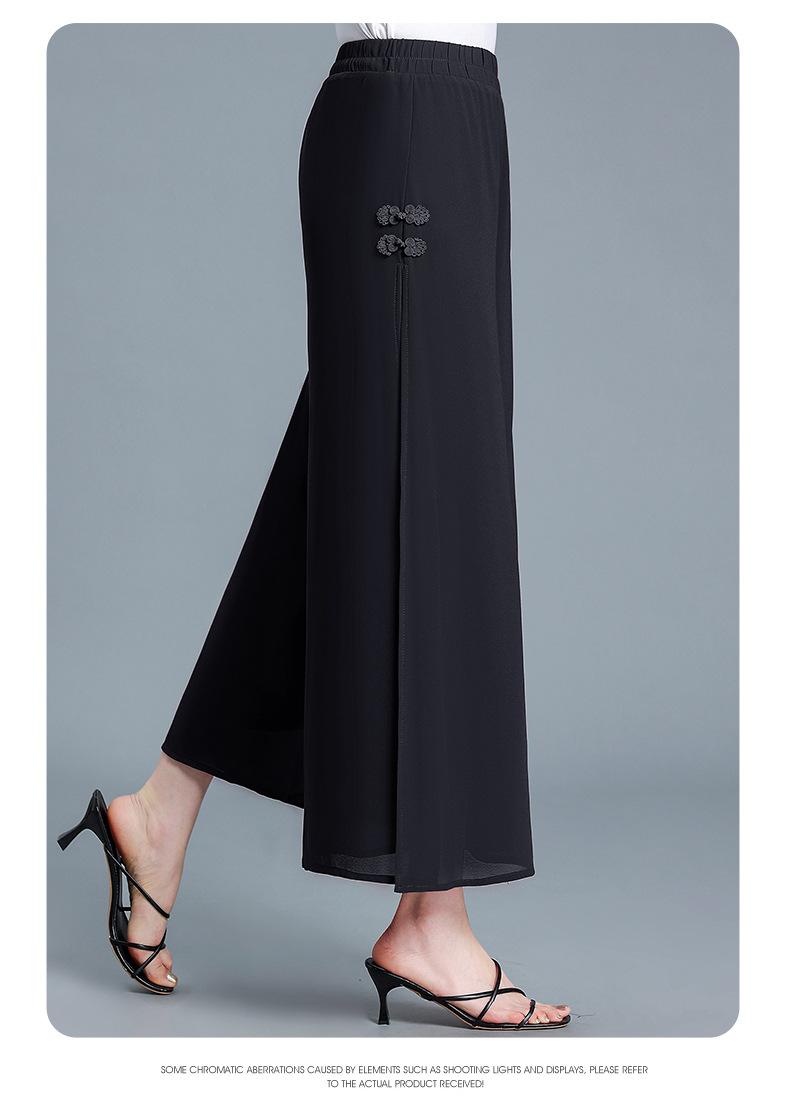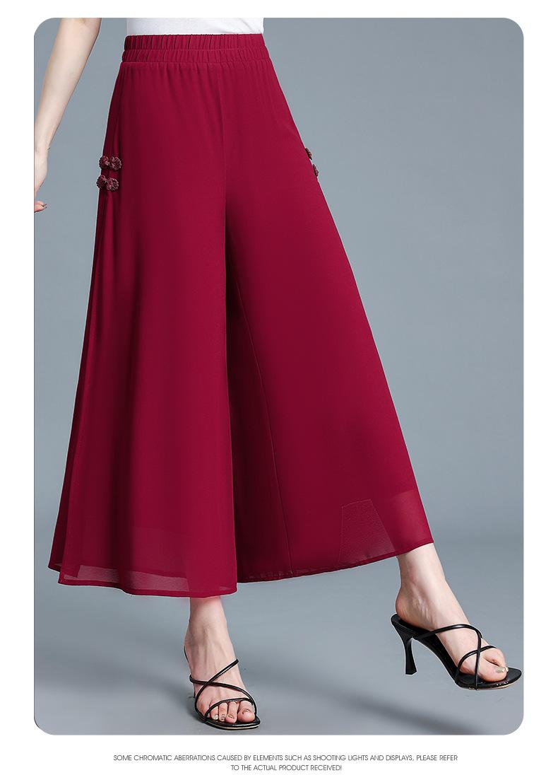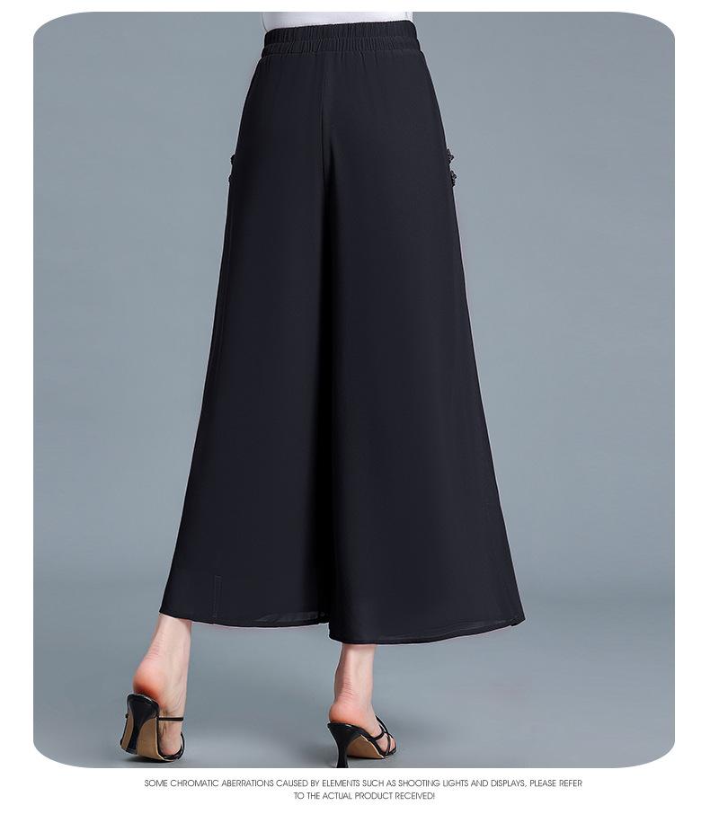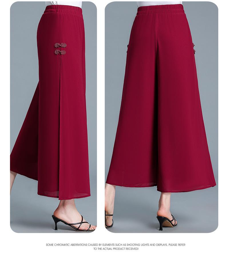 Pantalones de Chifón de Doble Capa de Pierna Ancha para Mujer, Pantalones A-Line Finos de Verano con Abertura, Pantalones Falda Largos Sueltos de Cintura Alta, Pantalones Nueve Puntos