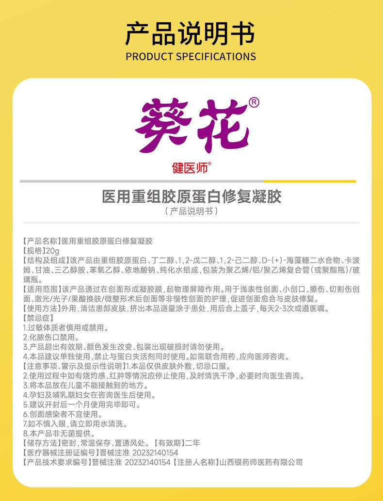 Gel reparador de colágeno recombinante médico clase II línea hospitalaria gel reparador de heridas microcirugía fotónica OEM