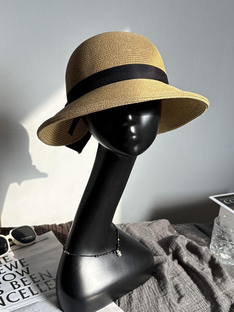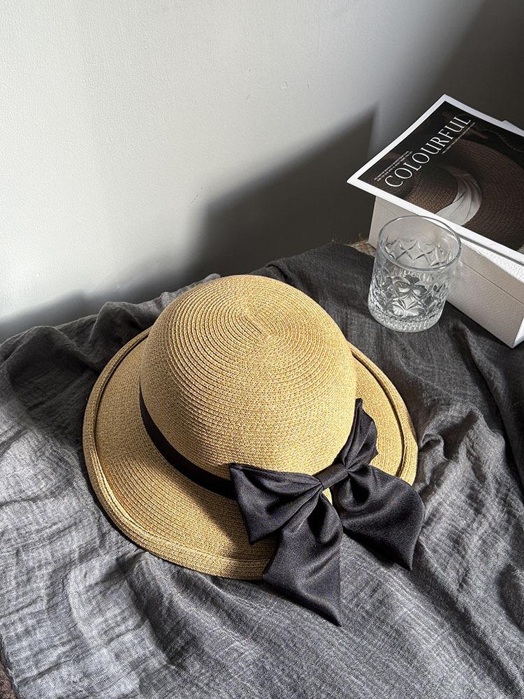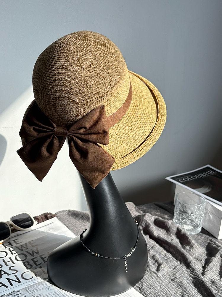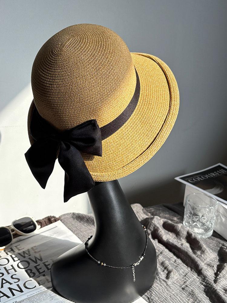 Sombrero de Pescador Mariposa Sun Li para Mujer Verano Elegante Sombrero de Paja Parasol Protección Solar Estilo Hepburn Vacaciones en la Playa Sombrero para el Sol