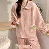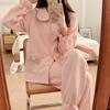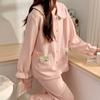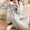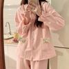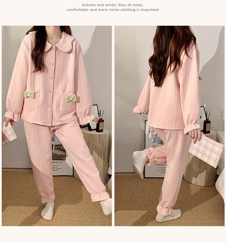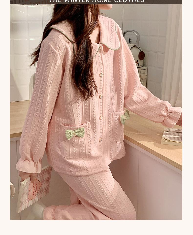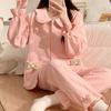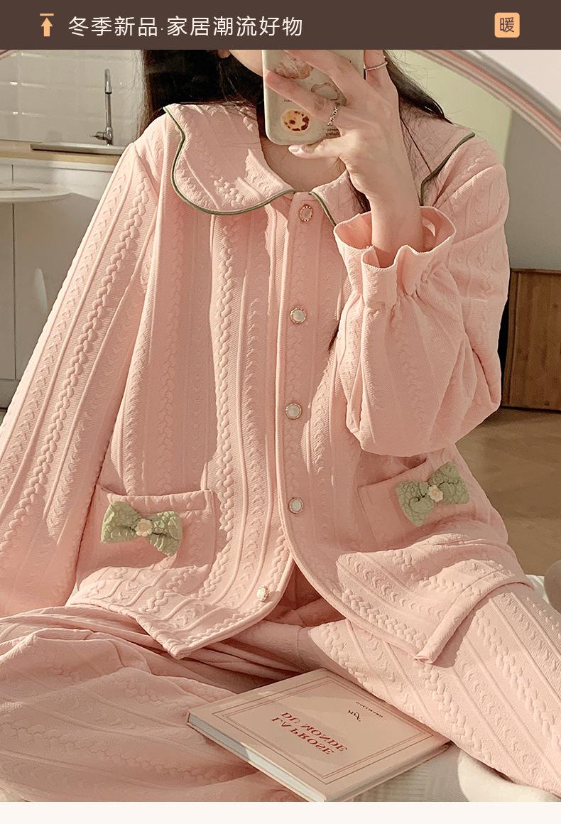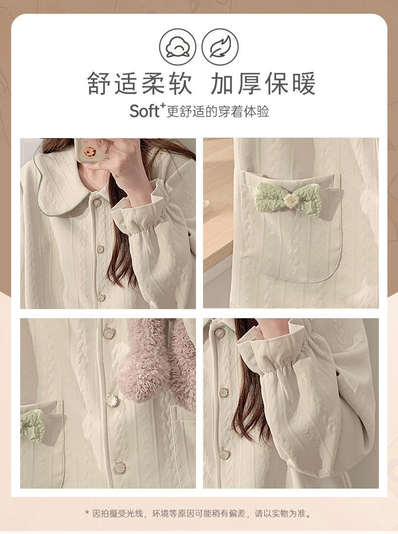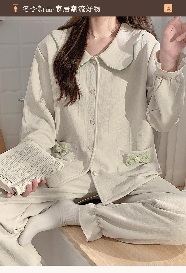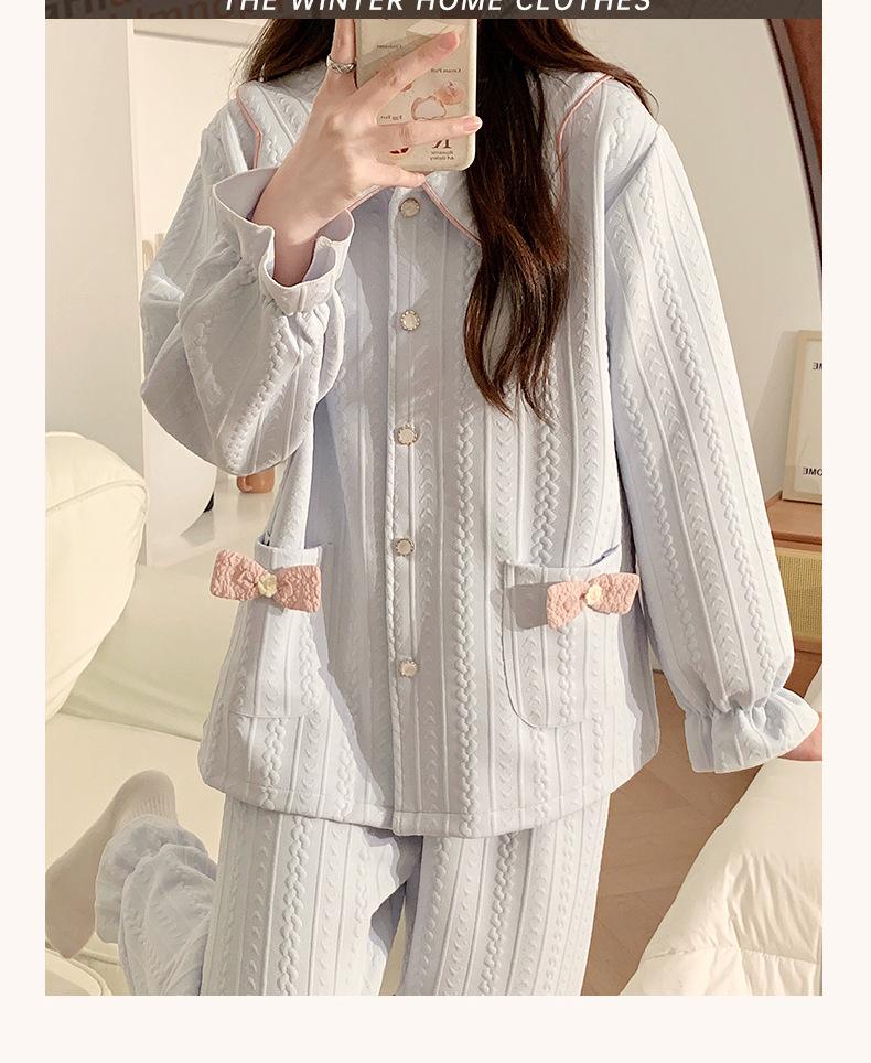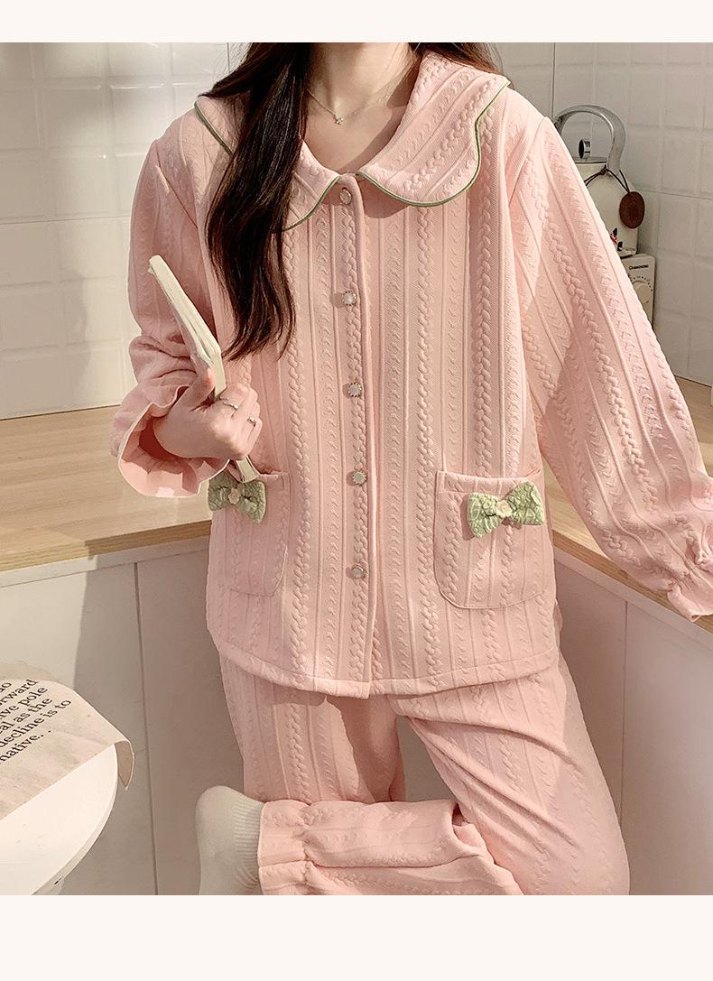 Pijama Sándwich de Algodón Aire para Mujer Otoño e Invierno Engrosado Estilo Princesa Dulce Cuello Muñeca Primavera y Otoño Traje de Ropa para el Hogar