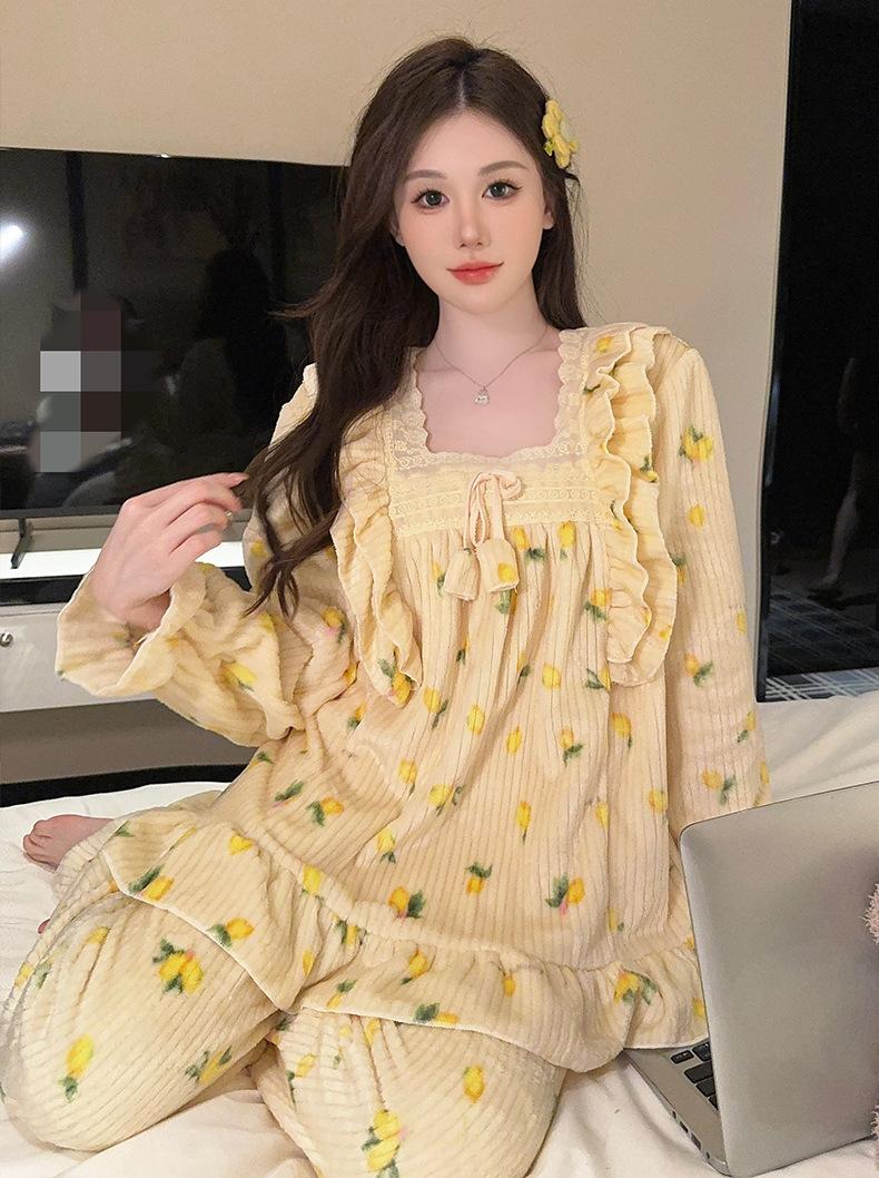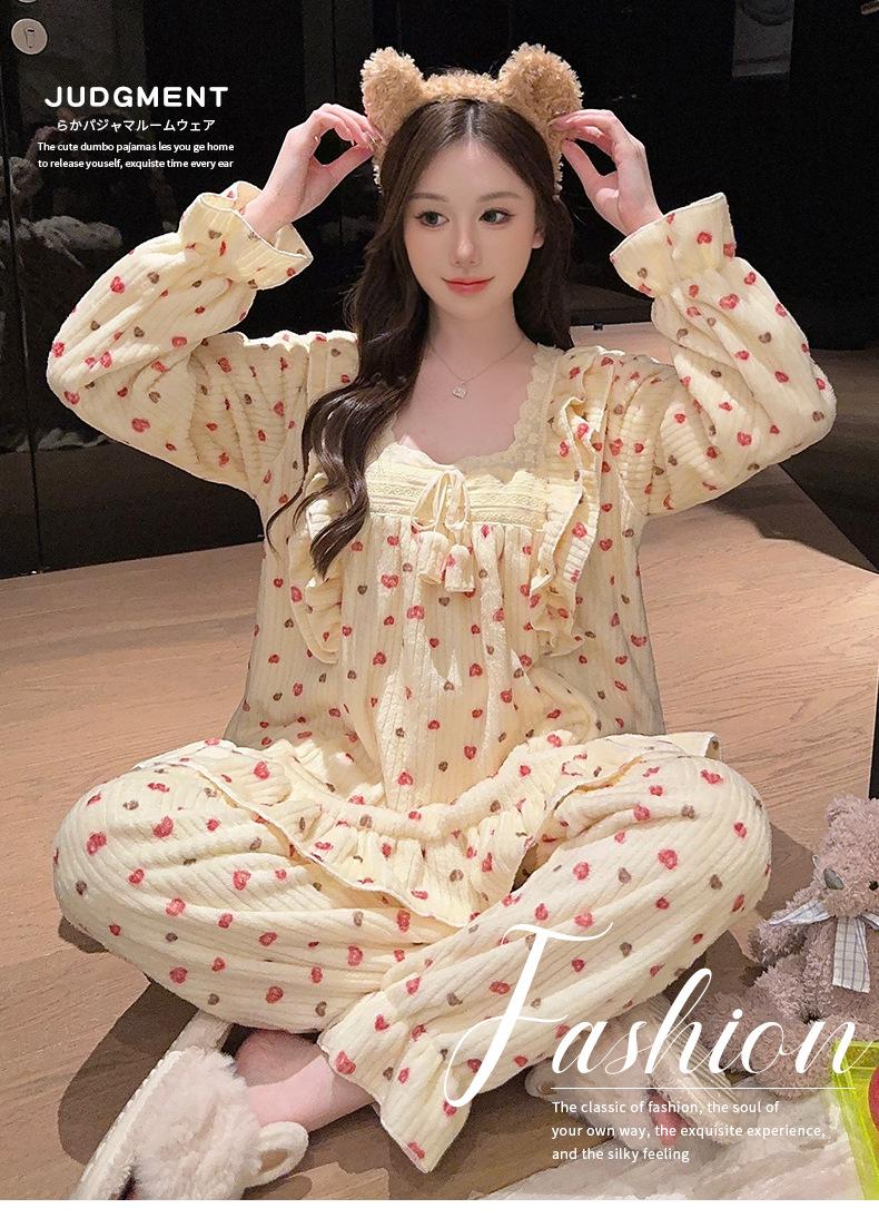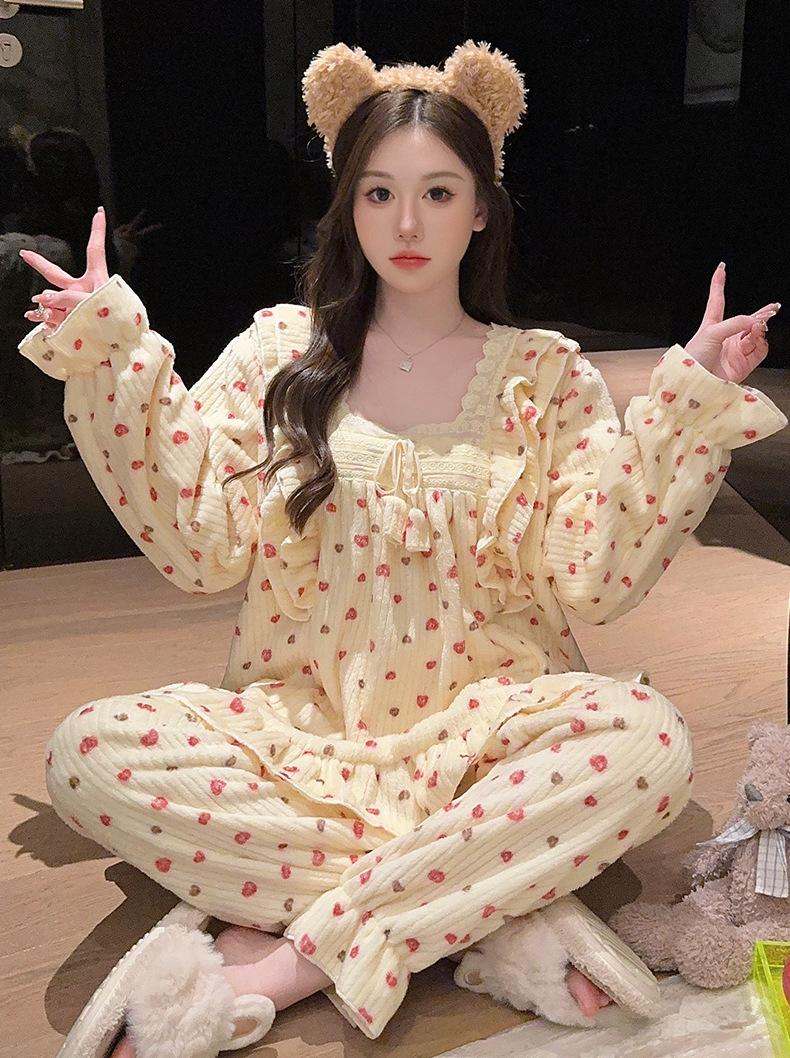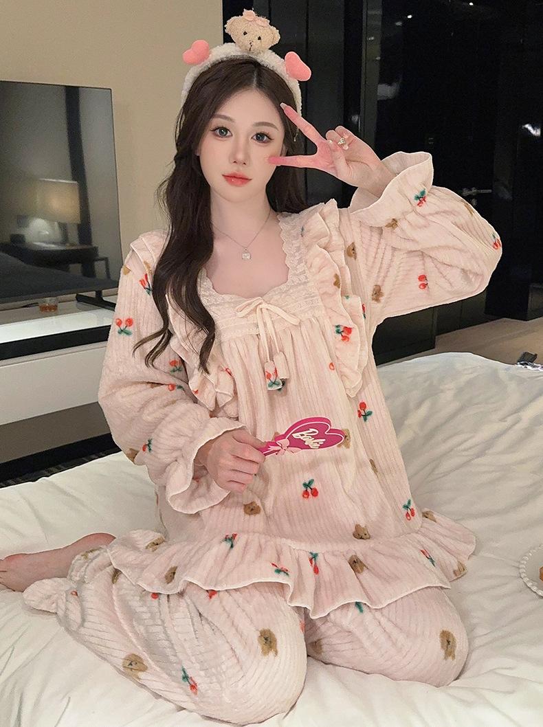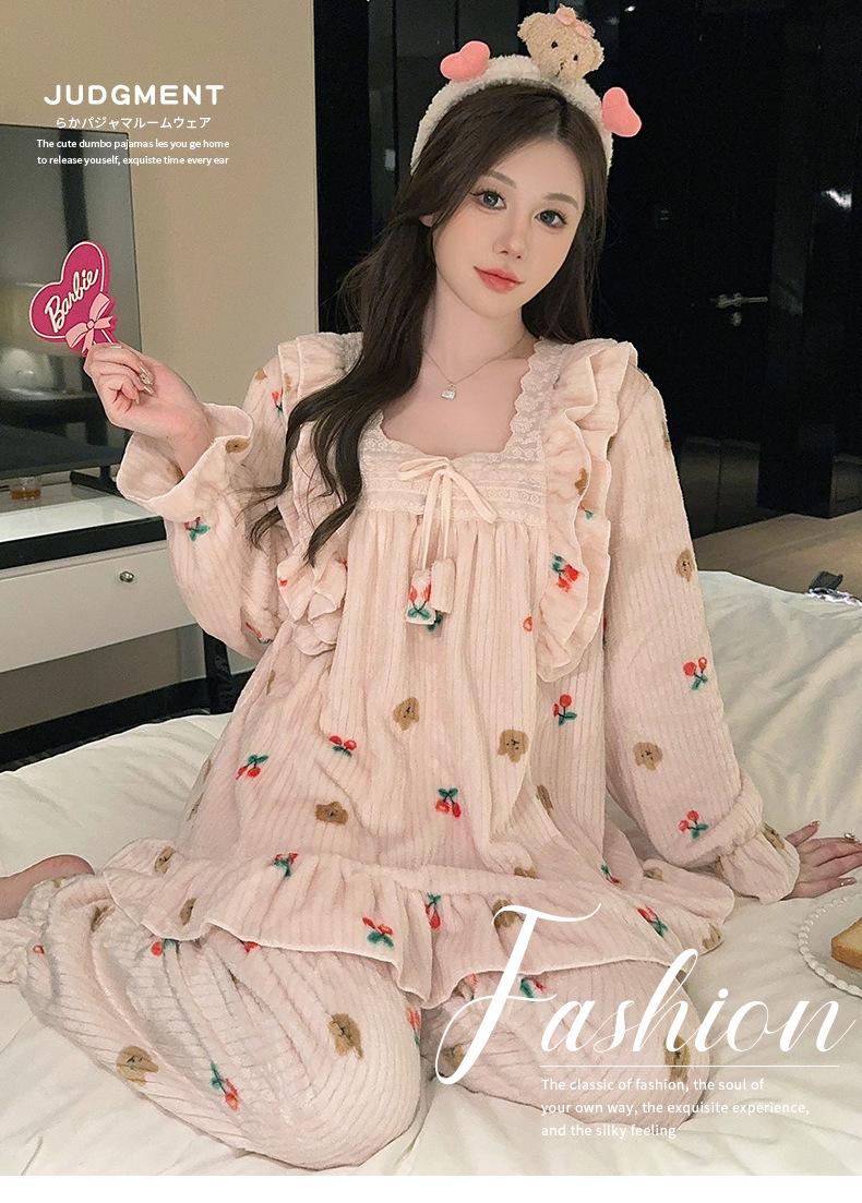 Pijamas de terciopelo coral para mujer, otoño e invierno, forro polar grueso, cálido, nuevo, de franela de invierno, ropa de princesa para el hogar.