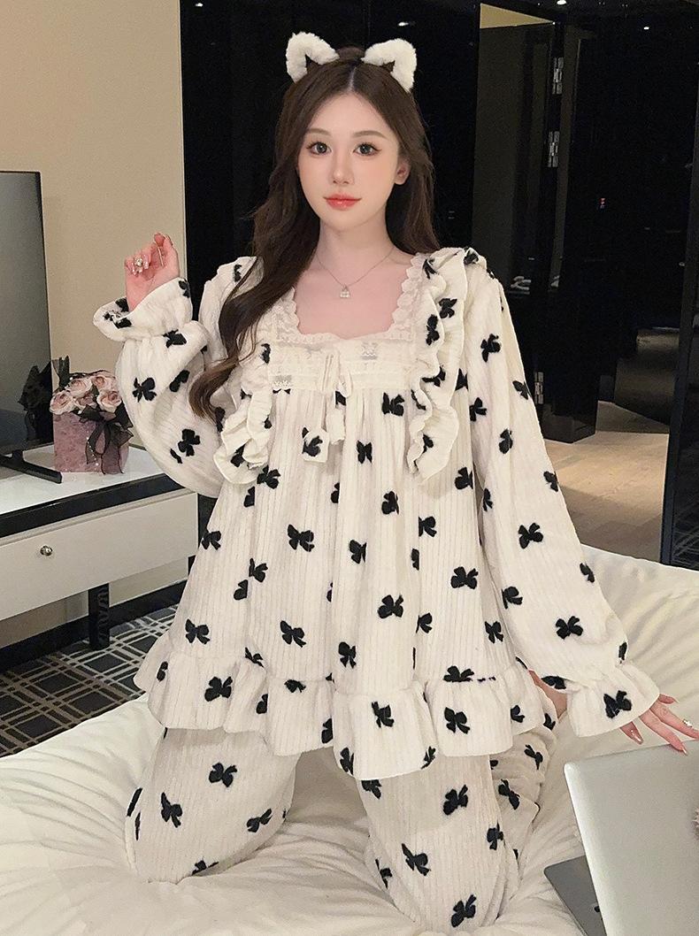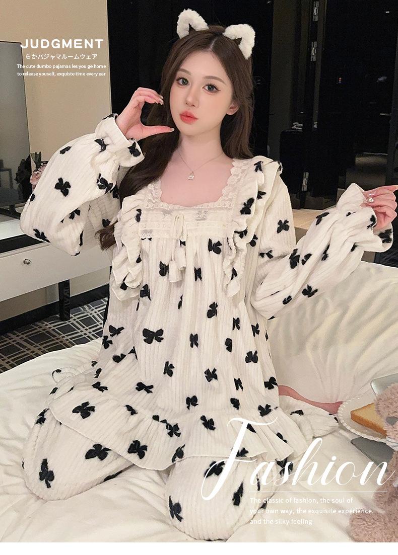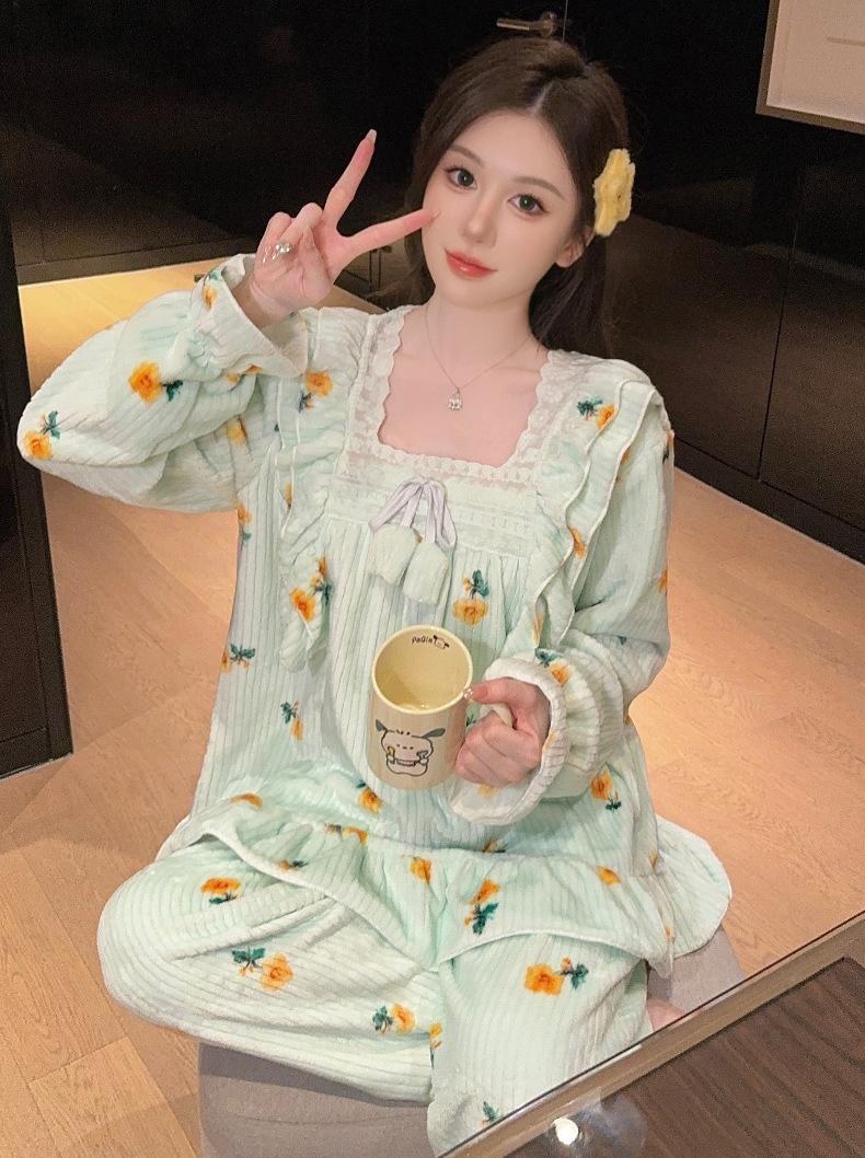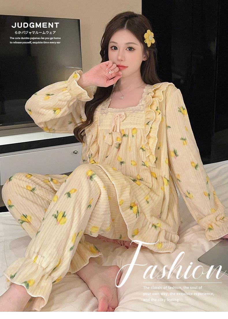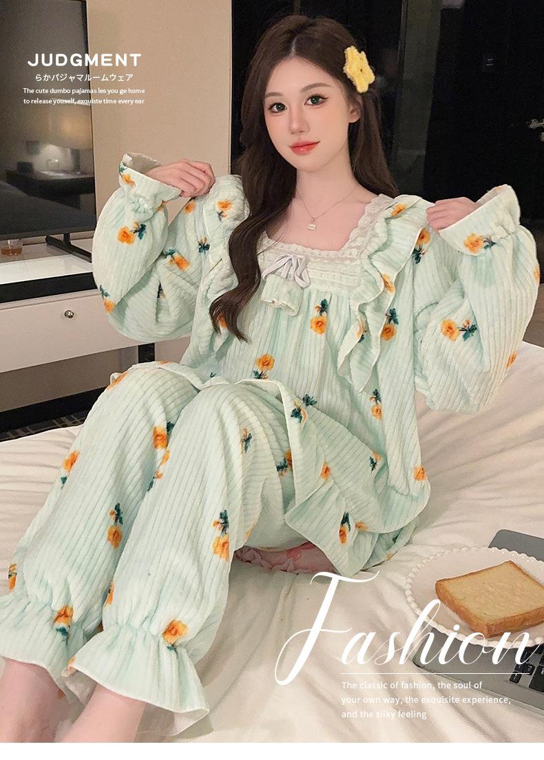 Pijamas de terciopelo coral para mujer, otoño e invierno, forro polar grueso, cálido, nuevo, de franela de invierno, ropa de princesa para el hogar.