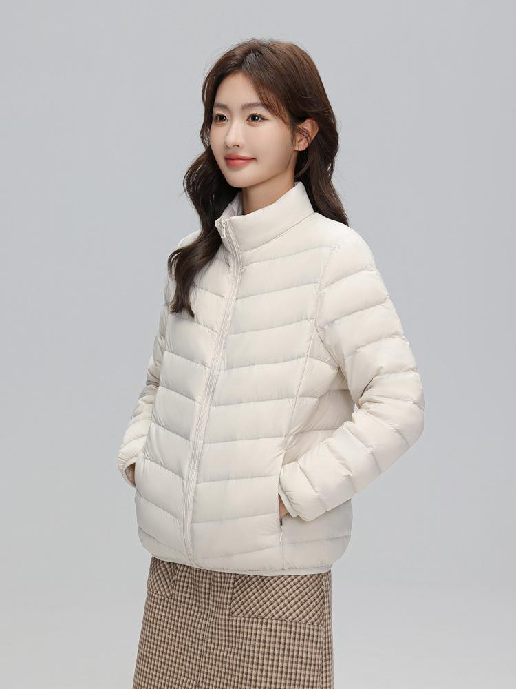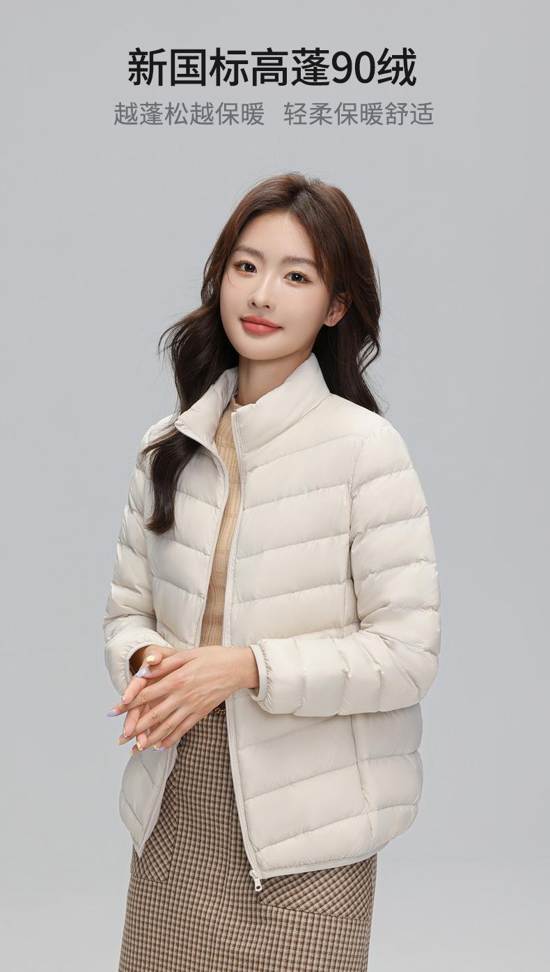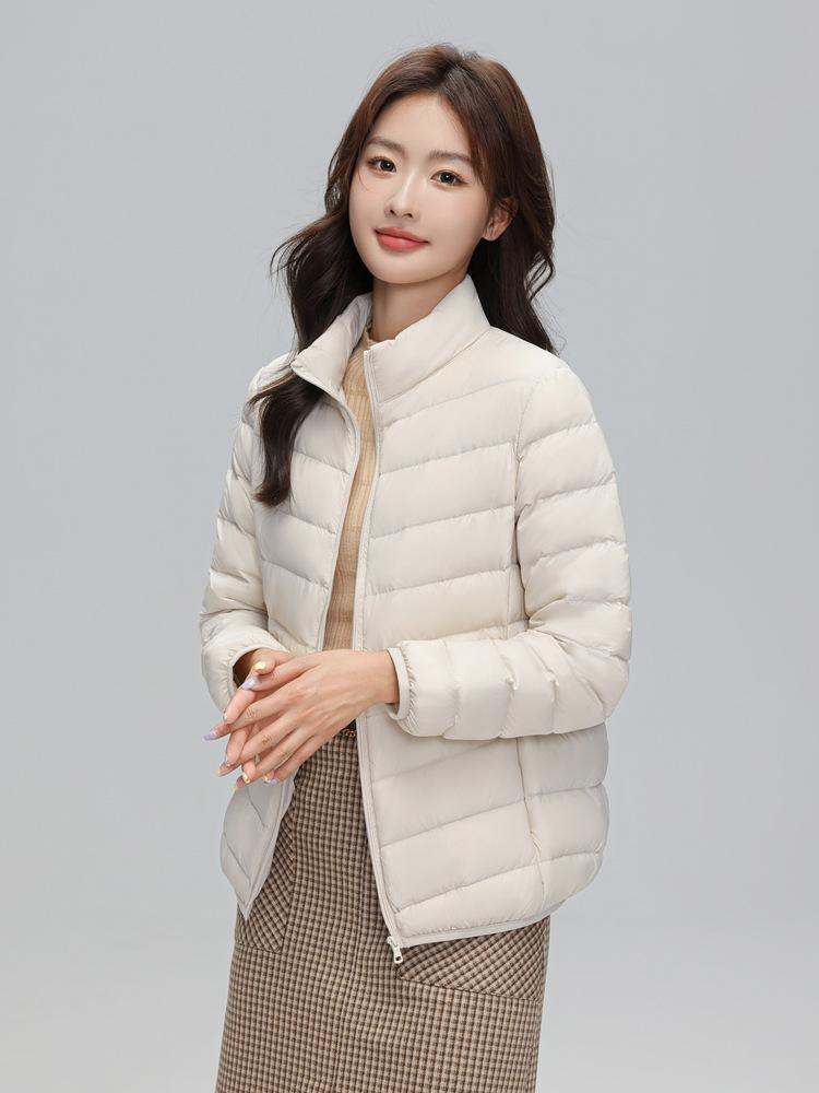 Chaqueta de plumón de pato blanca 90 para mujer, otoño e invierno, cuello alto, ligera, estilo coreano, talla grande, 2023