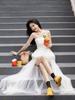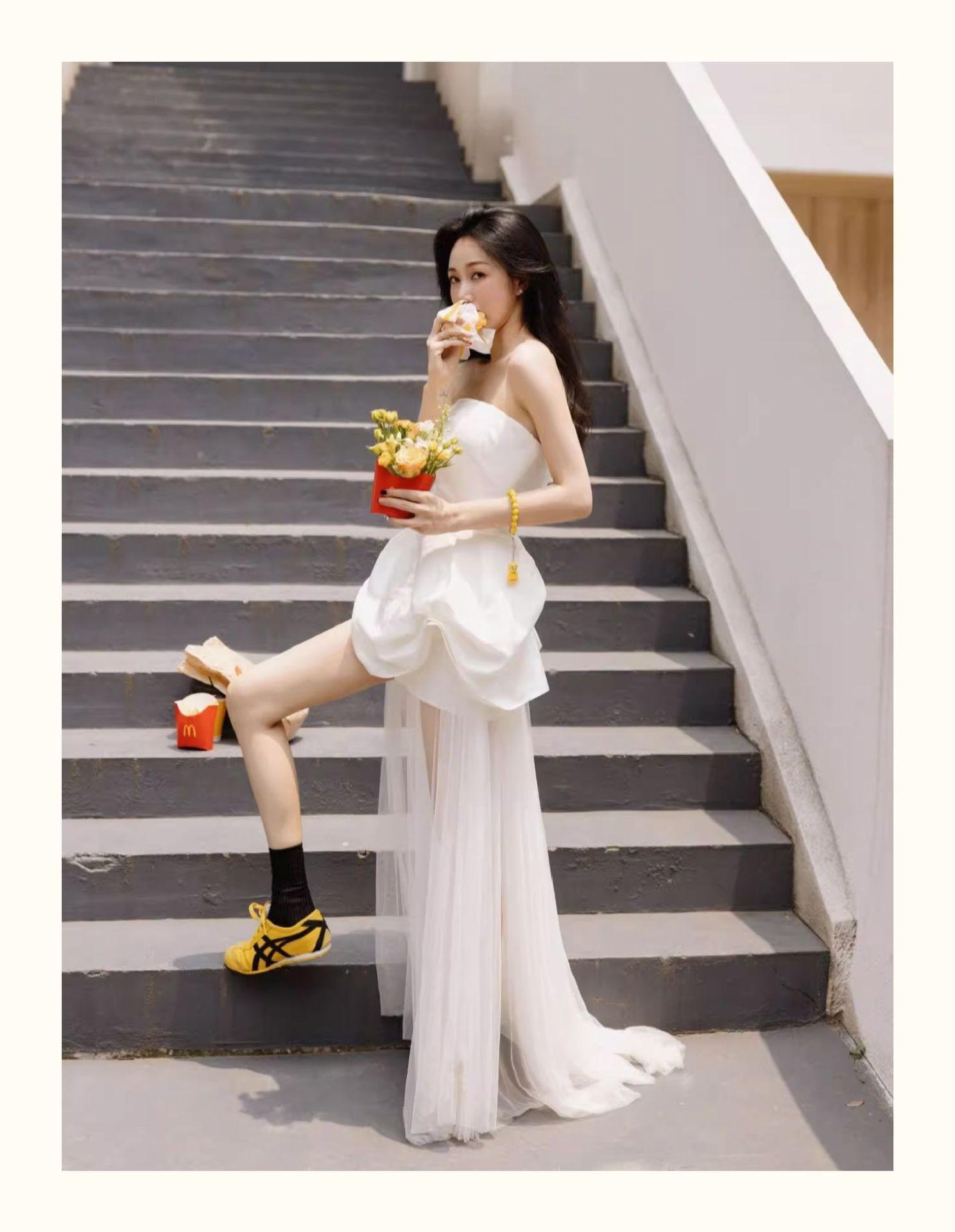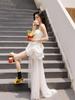Vestido de Novia Ligero Strapless Blanco Francés Primavera Nuevo Banquete Cumpleaños Viaje Sesión Matutina Vestido de Bienvenida