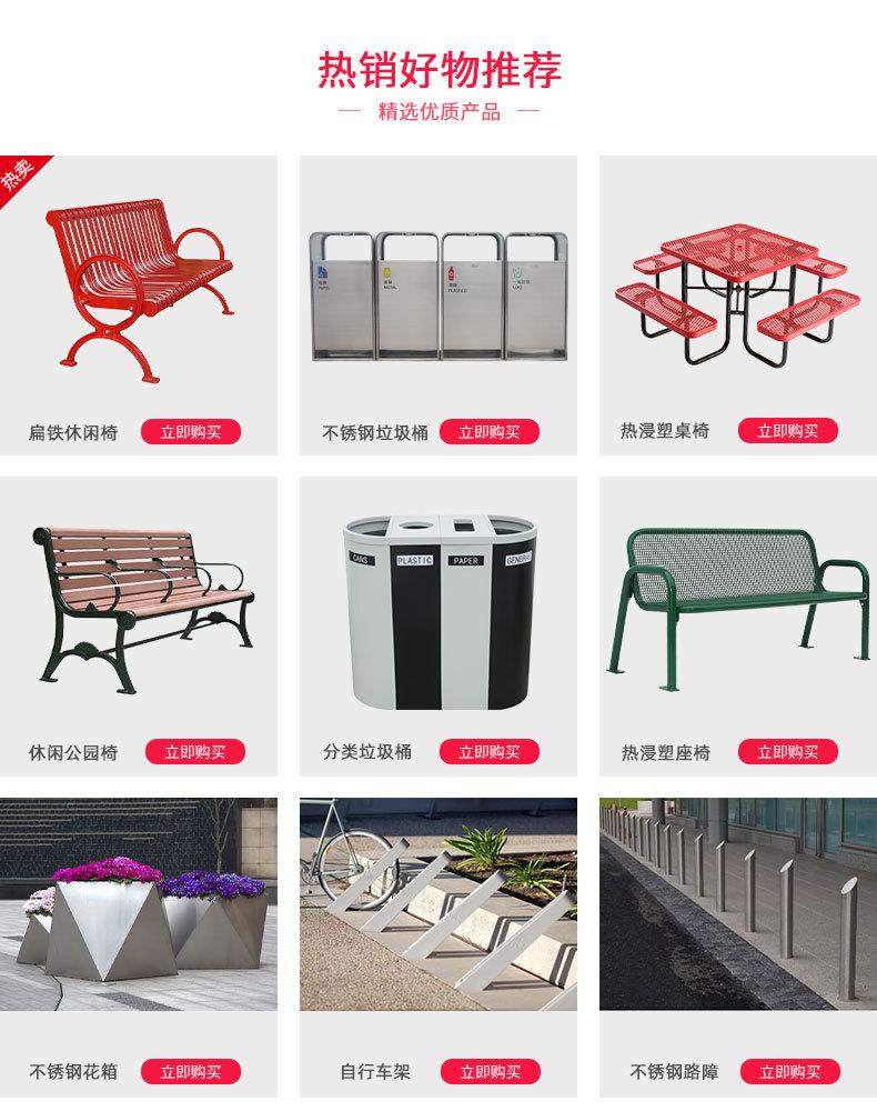 Chongqing Yalou Instalaciones Públicas Urbanas Manufacturing Co., Ltd.Como empresa moderna especializada en la investigación, el desarrollo, la fabricación y la venta de instalaciones públicas urbanas, sus principales productos incluyen: asientos, mesas y sillas de exterior, botes de basura, equipos de fitness para exteriores, parques infantiles, barreras y vallas, jardineras y otras instalaciones públicas al aire libre. Tras años de altibajos, la empresa se ha ganado el reconocimiento de sus clientes gracias a su eficiente funcionamiento y la excelente calidad de sus productos.