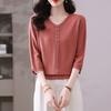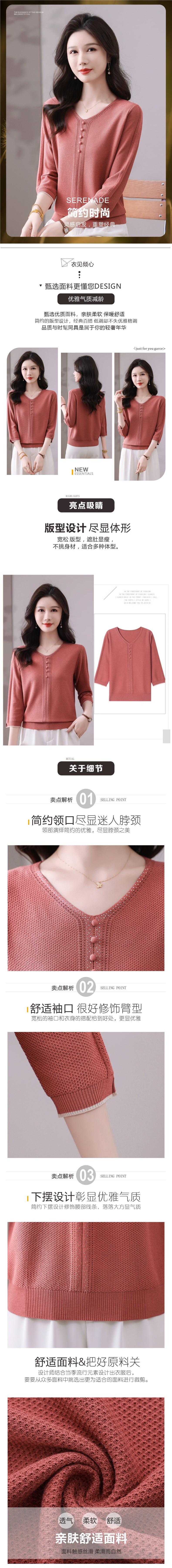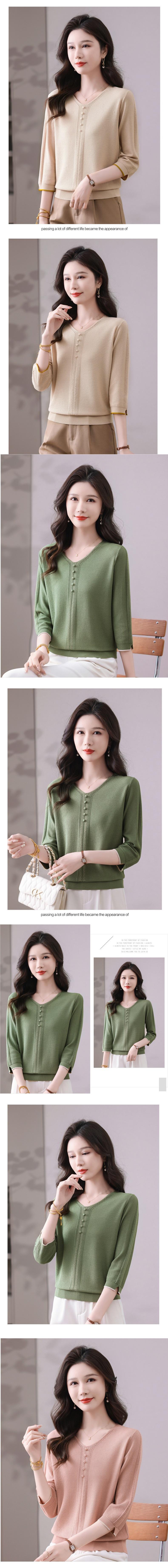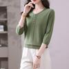 2025 Primavera y Otoño Nueva Camiseta de Media Manga Top de Seda de Hielo Suéter Delgado Suelto de Media Manga para Mujer T