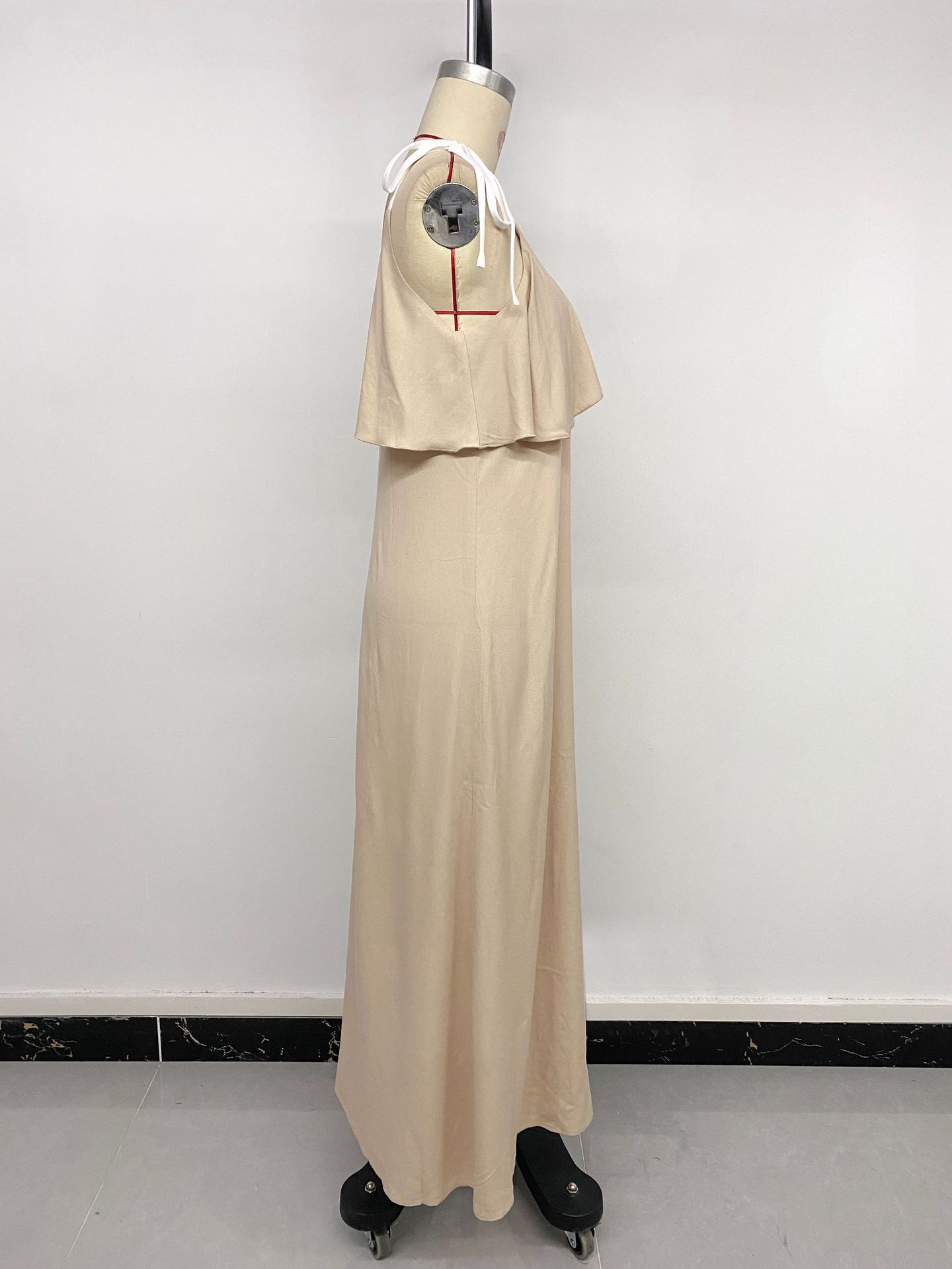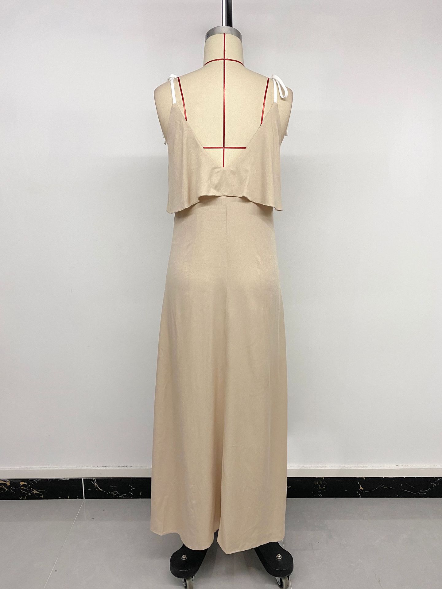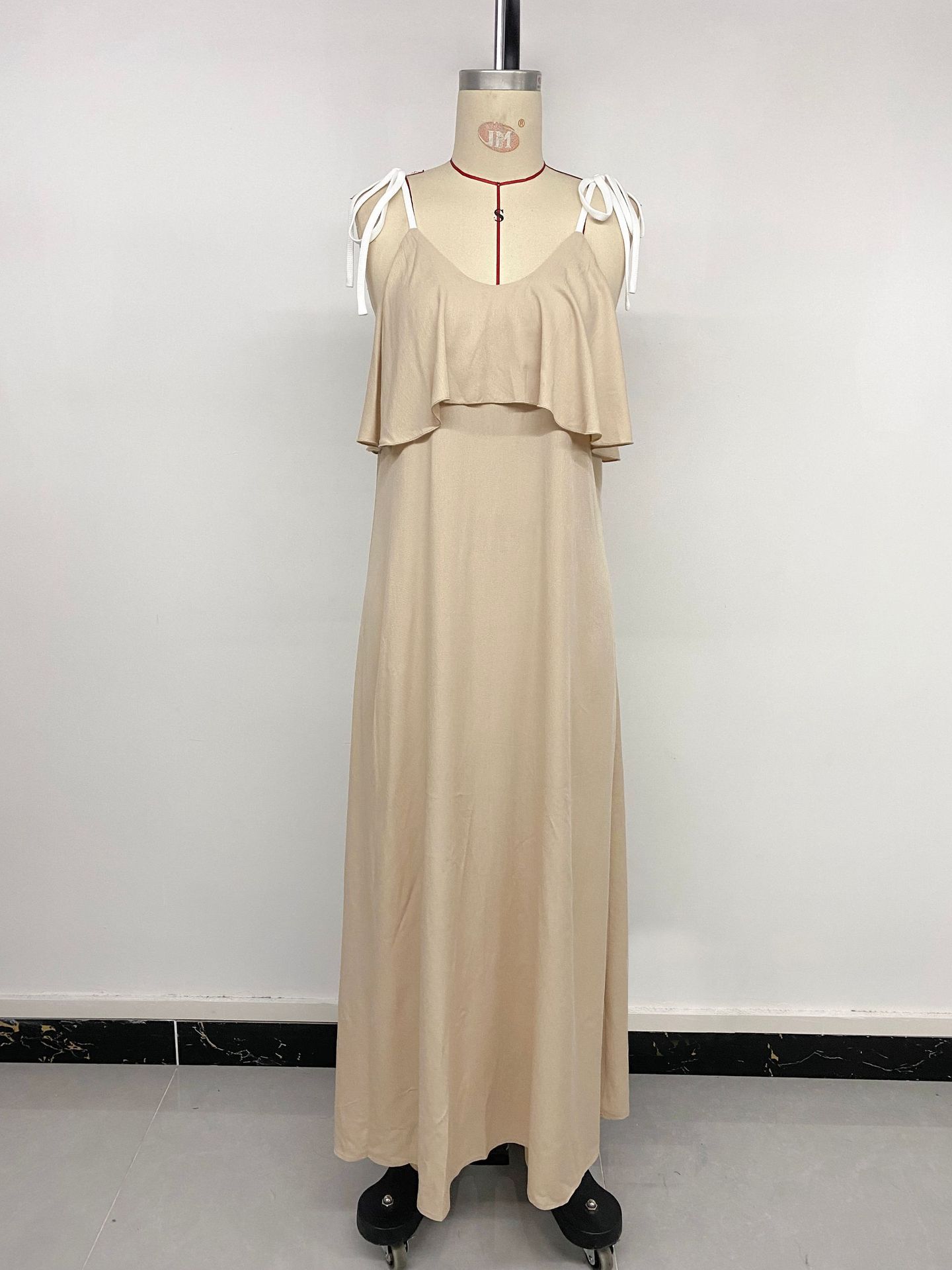 Amazon 2025 Nuevo Europeo y Americano Transfronterizo Ocio Vacaciones Largo Volantes Decorativos Tirantes Vestido de Color Sólido