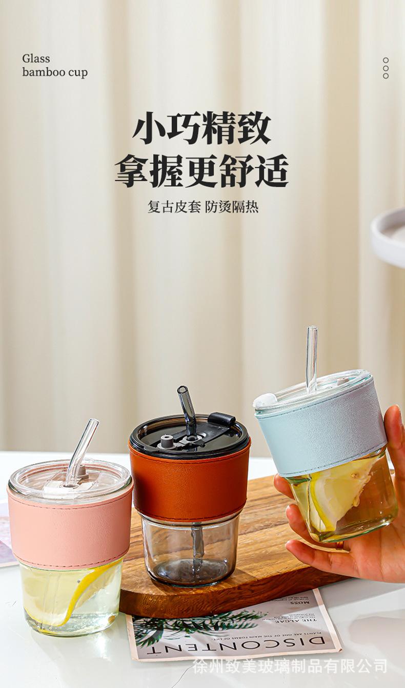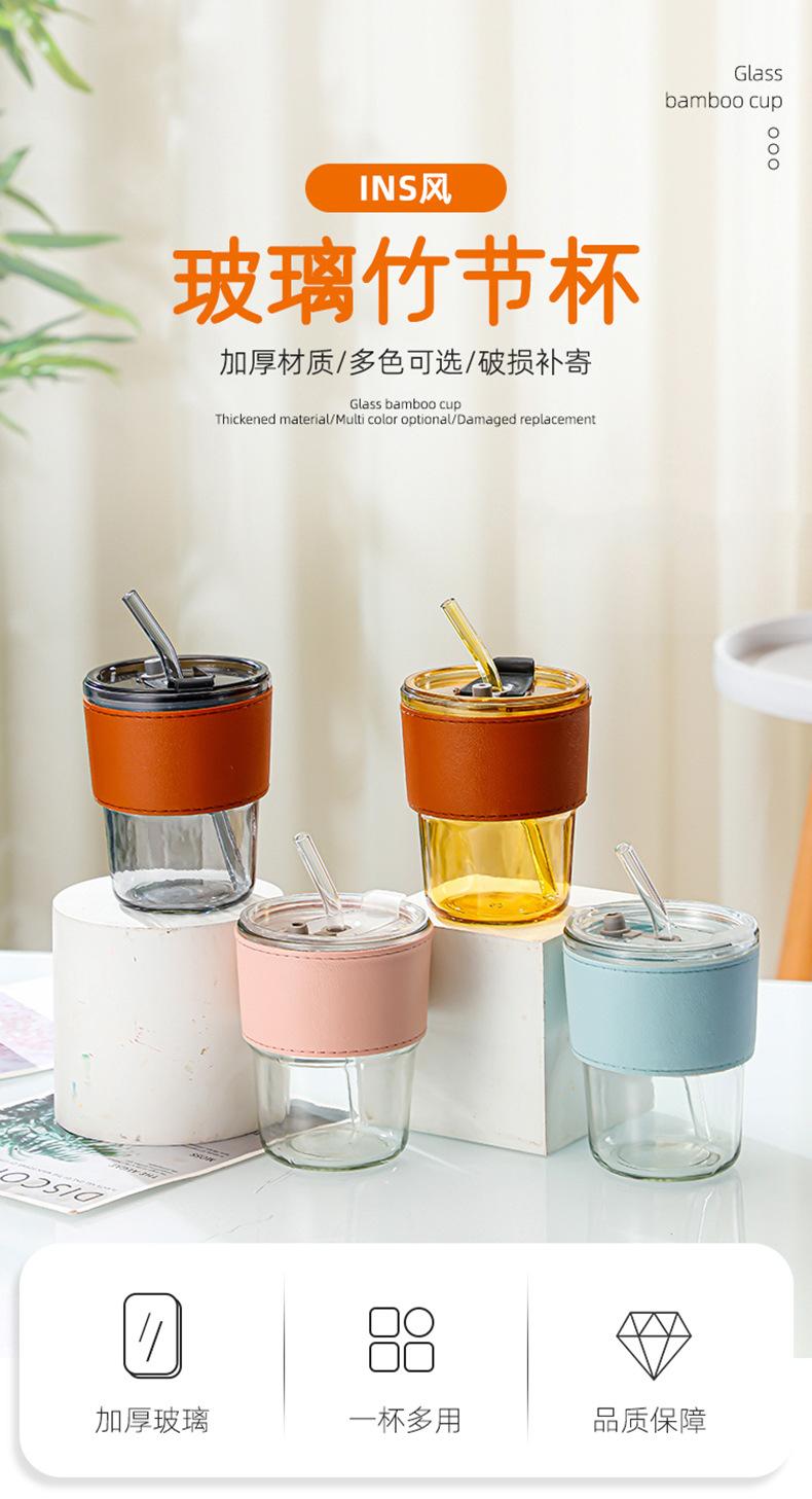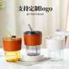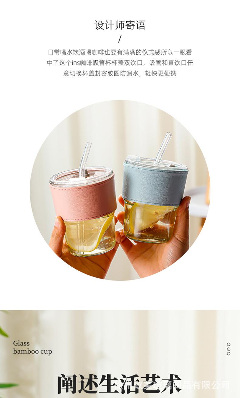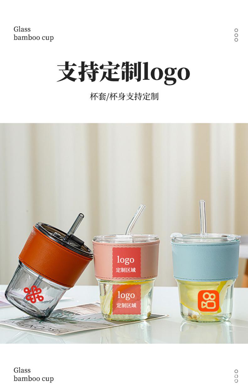 Taza de bambú de vidrio resistente al calor taza de café oficina hogar taza con pajita taza para beber con mano regalo impresión de logotipo