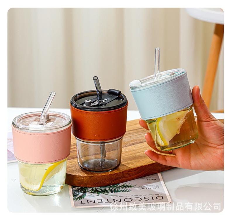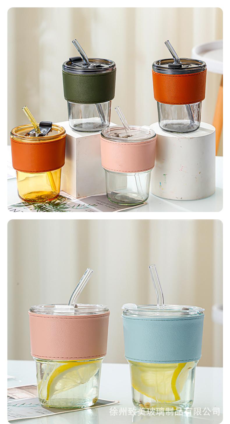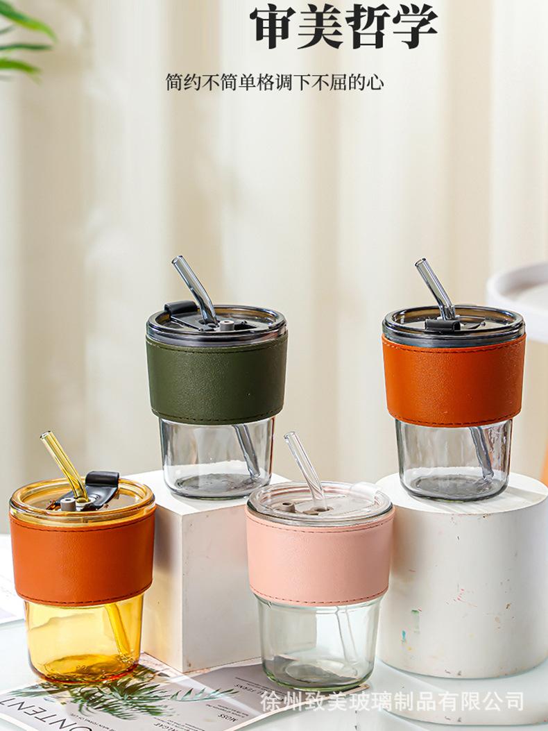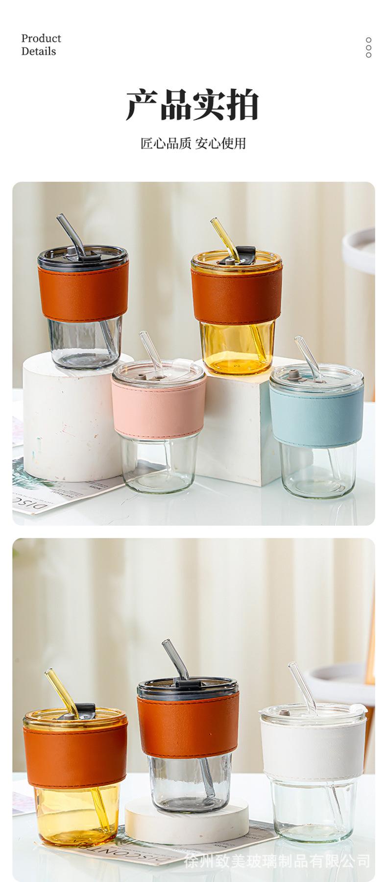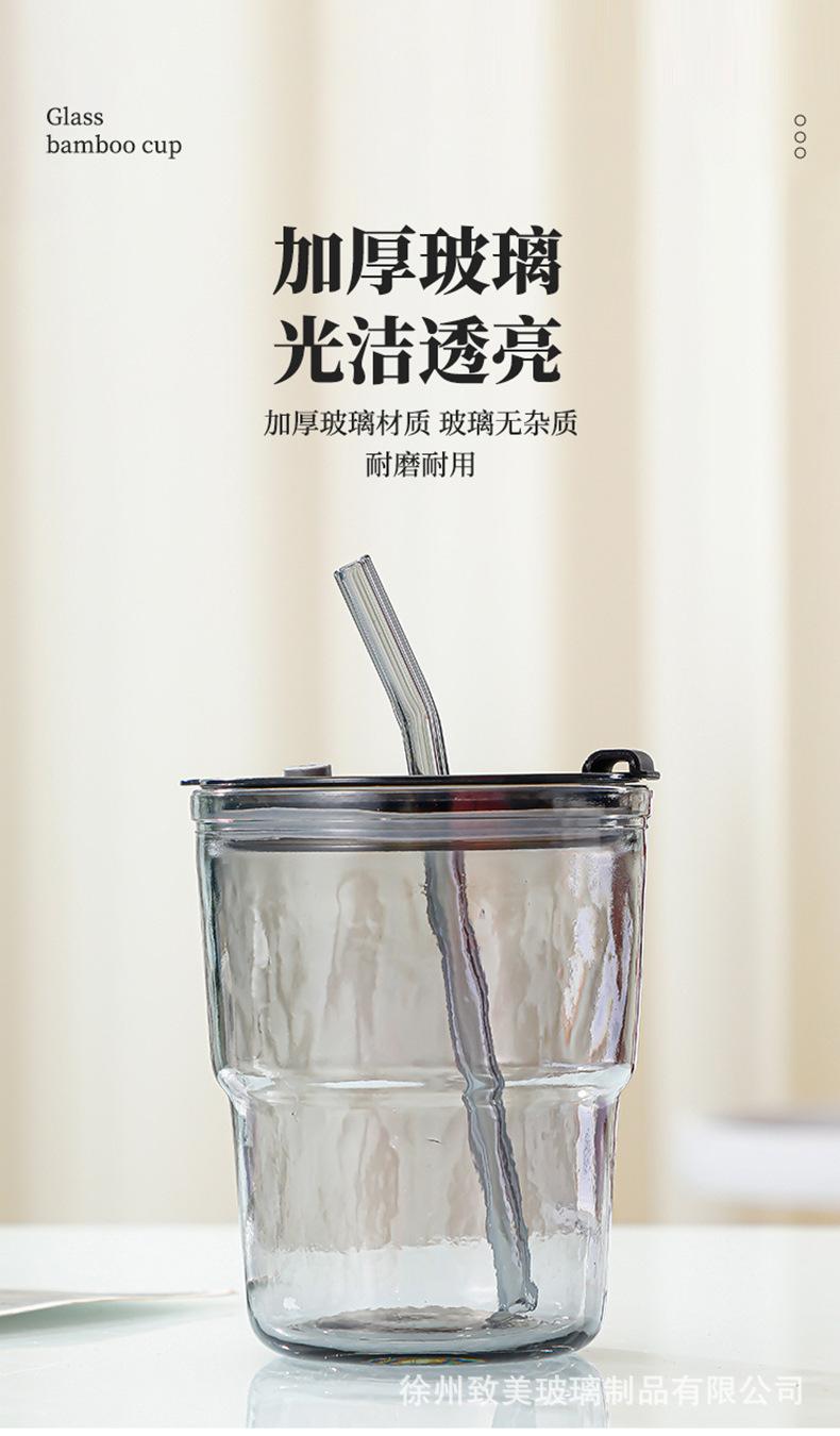 Taza de bambú de vidrio resistente al calor taza de café oficina hogar taza con pajita taza para beber con mano regalo impresión de logotipo