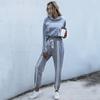 Amazon Estación Independiente Transfronteriza Europea y Americana Comercio Exterior Traje Deportivo Casual con Capucha y Costuras Grises para Mujer Conjunto de Dos Piezas para Mujer
