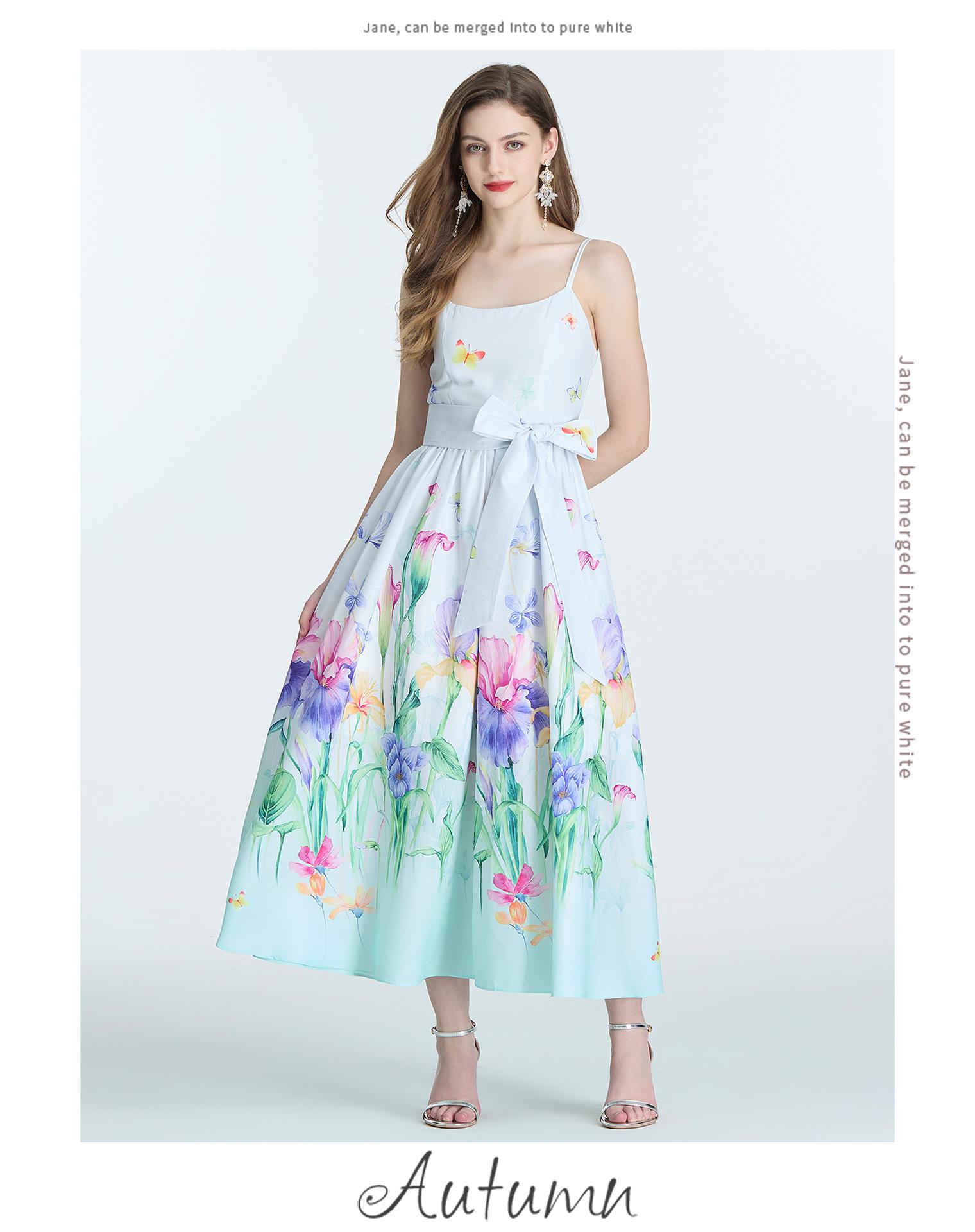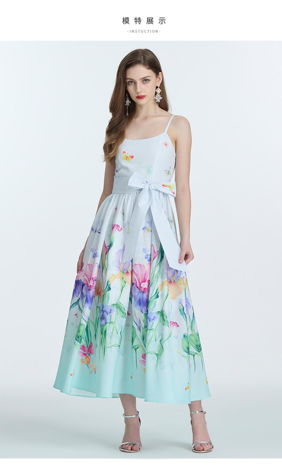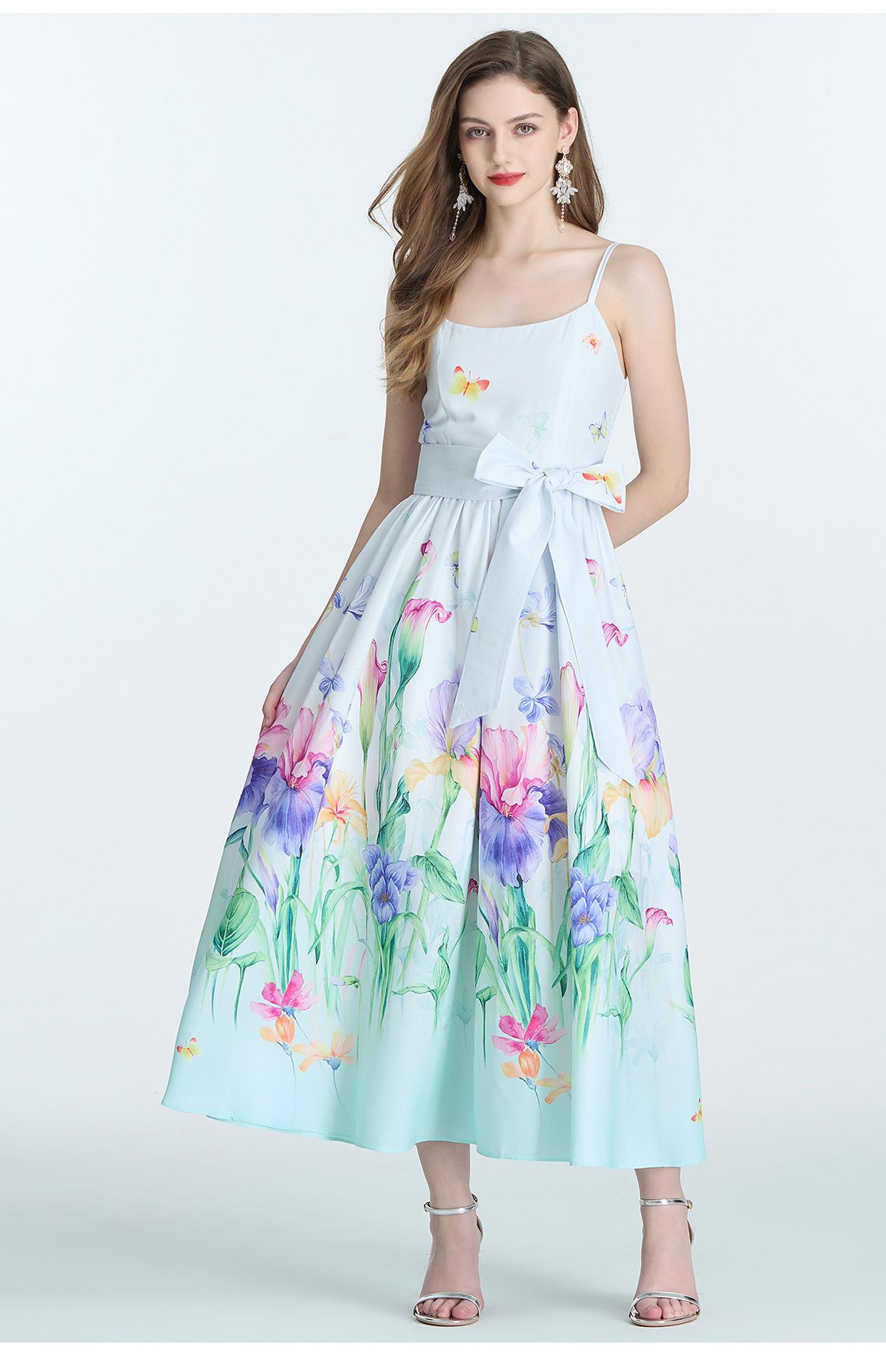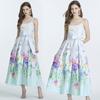 Estilo Verano 2024 Vestido de Tirantes con Lazo Estampado Pintado Estilo Vacacional Entallado sin Mangas