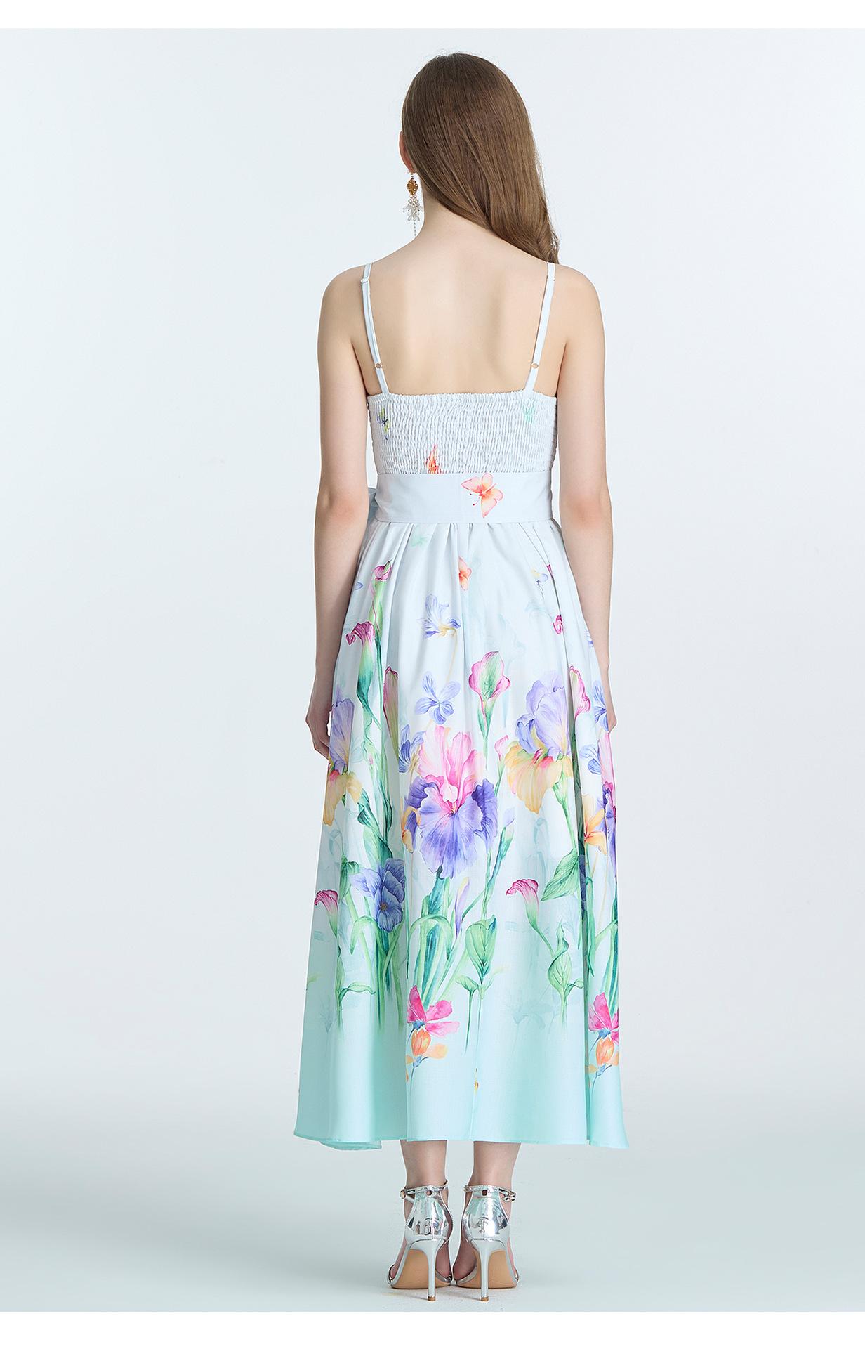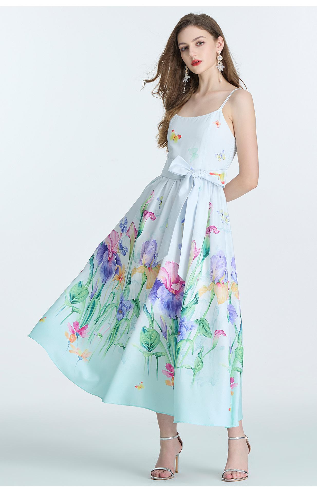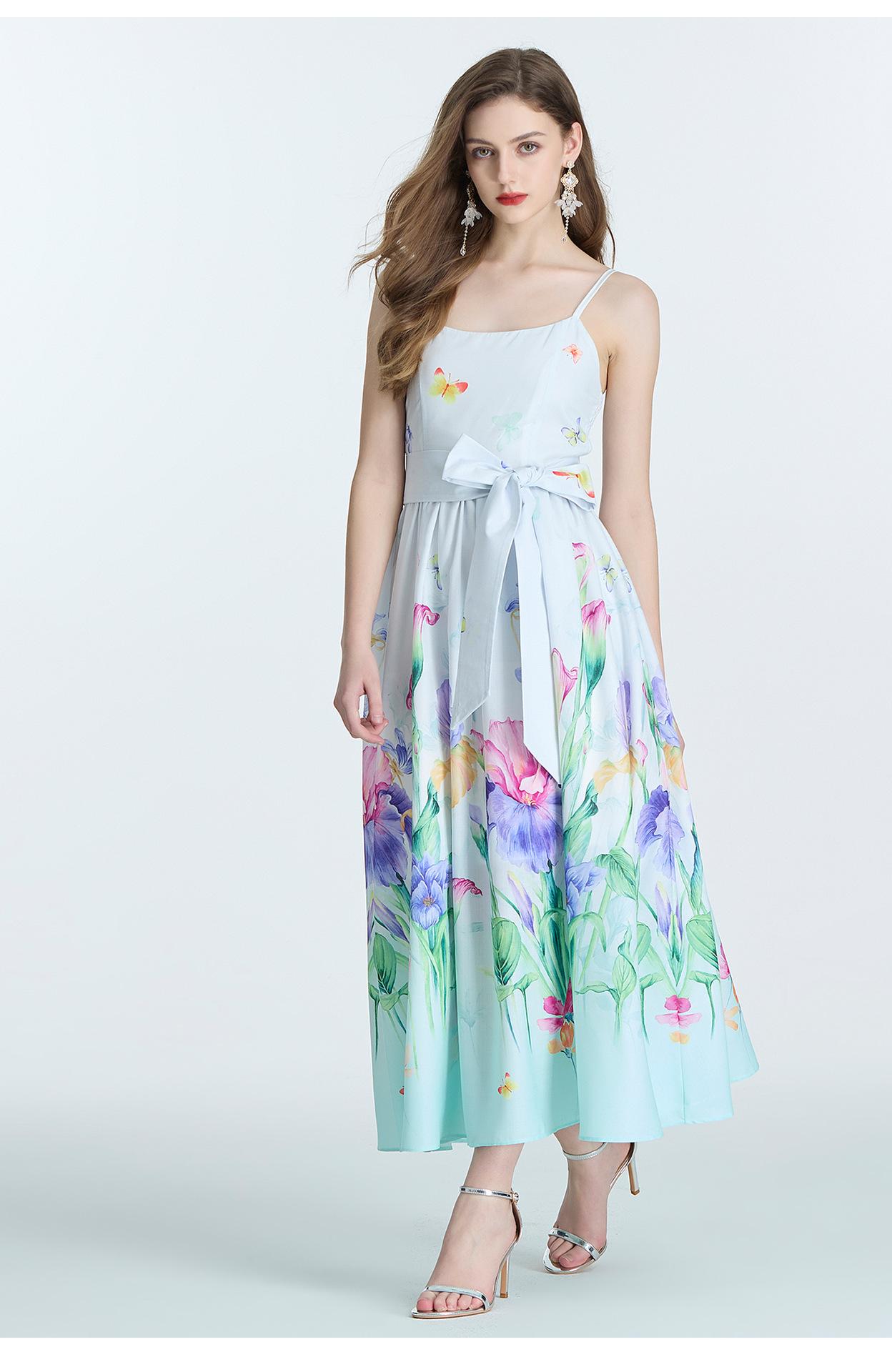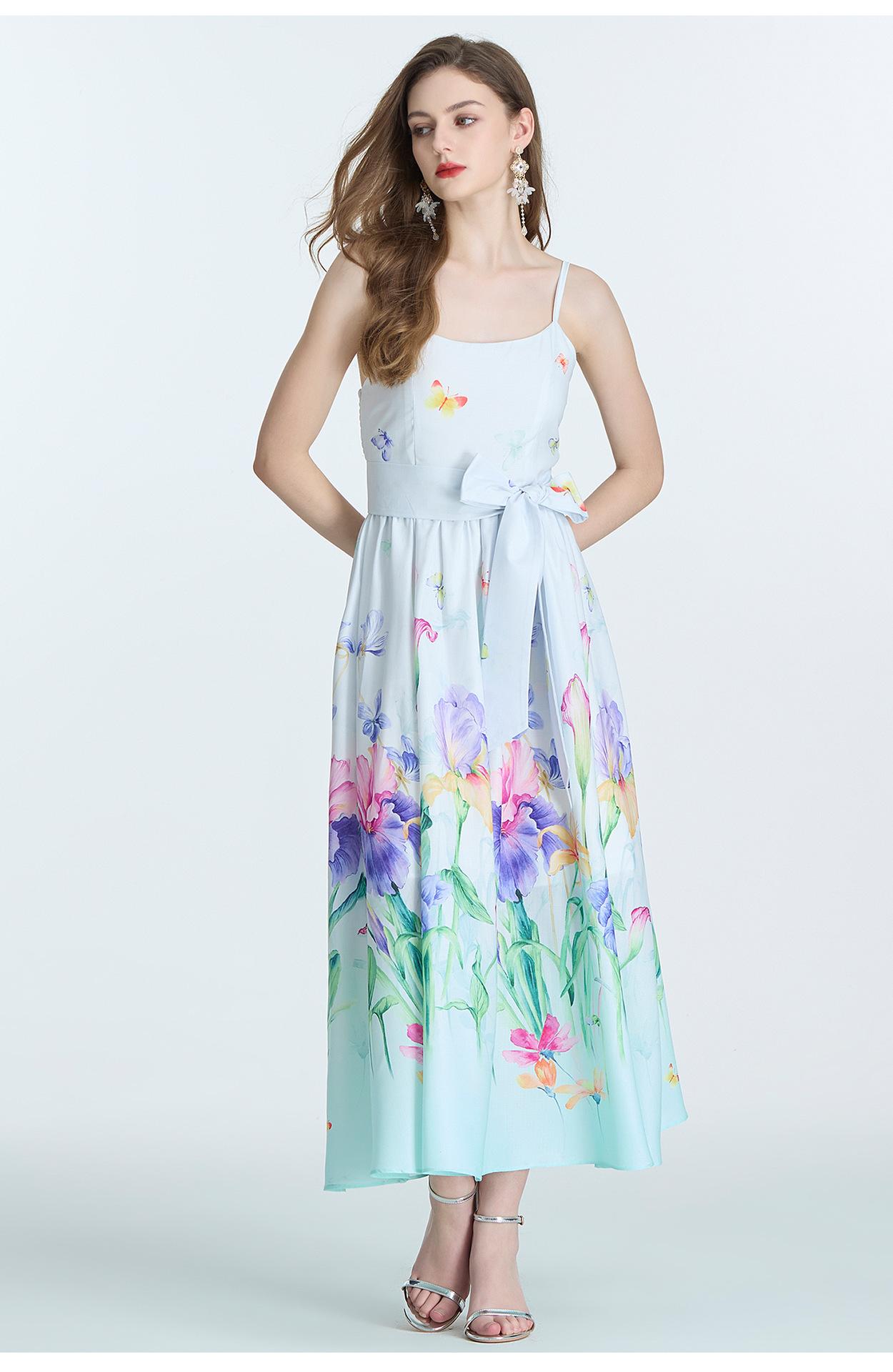 Estilo Verano 2024 Vestido de Tirantes con Lazo Estampado Pintado Estilo Vacacional Entallado sin Mangas