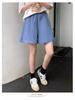 2025 Verano Nuevo Shorts de Cinco Puntos de Cintura Alta para Mujer Pantalones Anchos de Moda Pantalones Adelgazantes Pantalones Deportivos Casuales Sueltos Pantalones Medios