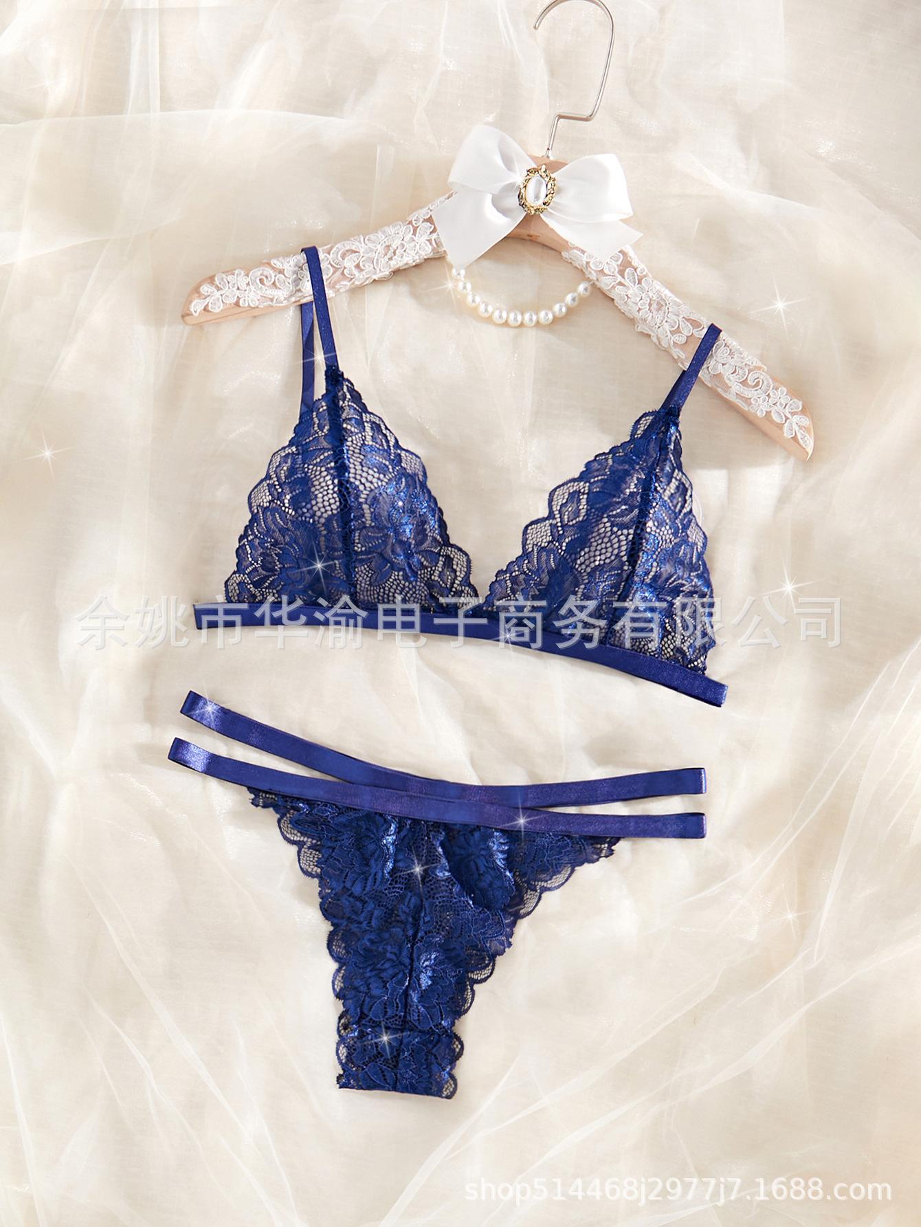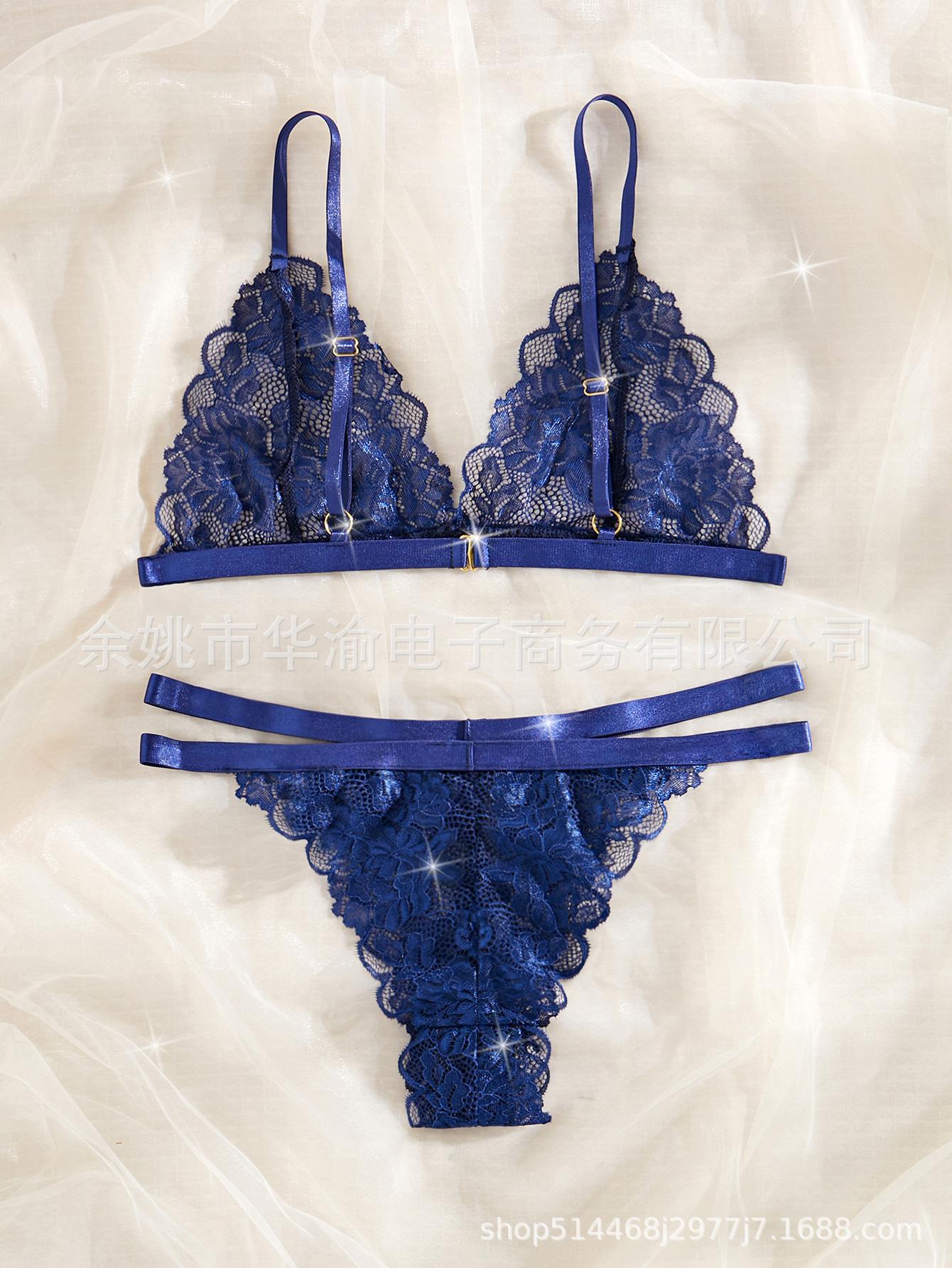2024 Nuevo Europeo y Americano Amazon Sexy Perspectiva Encaje Lencería Conjunto de Lencería de Tentación de Dos Piezas Mujer