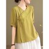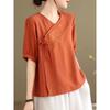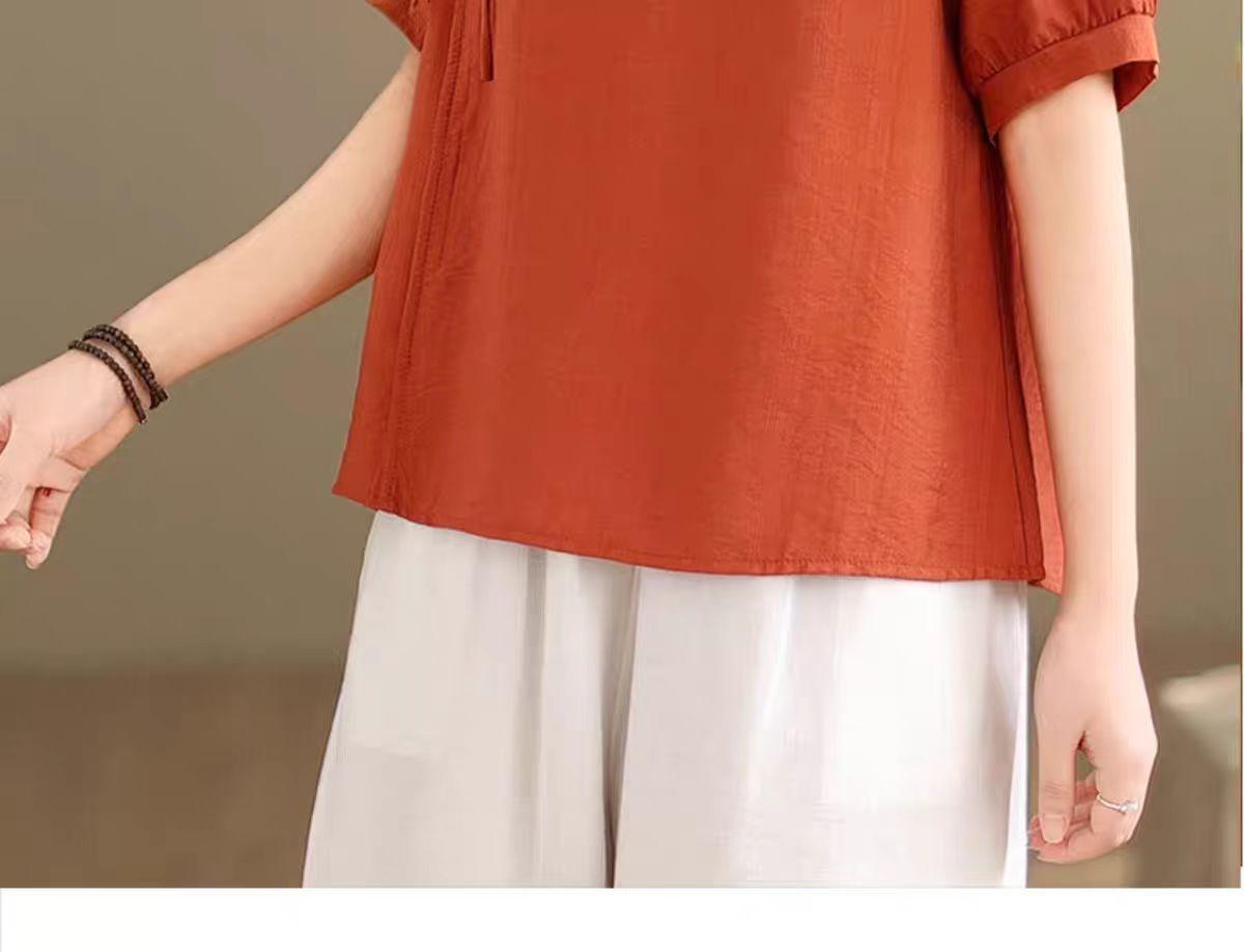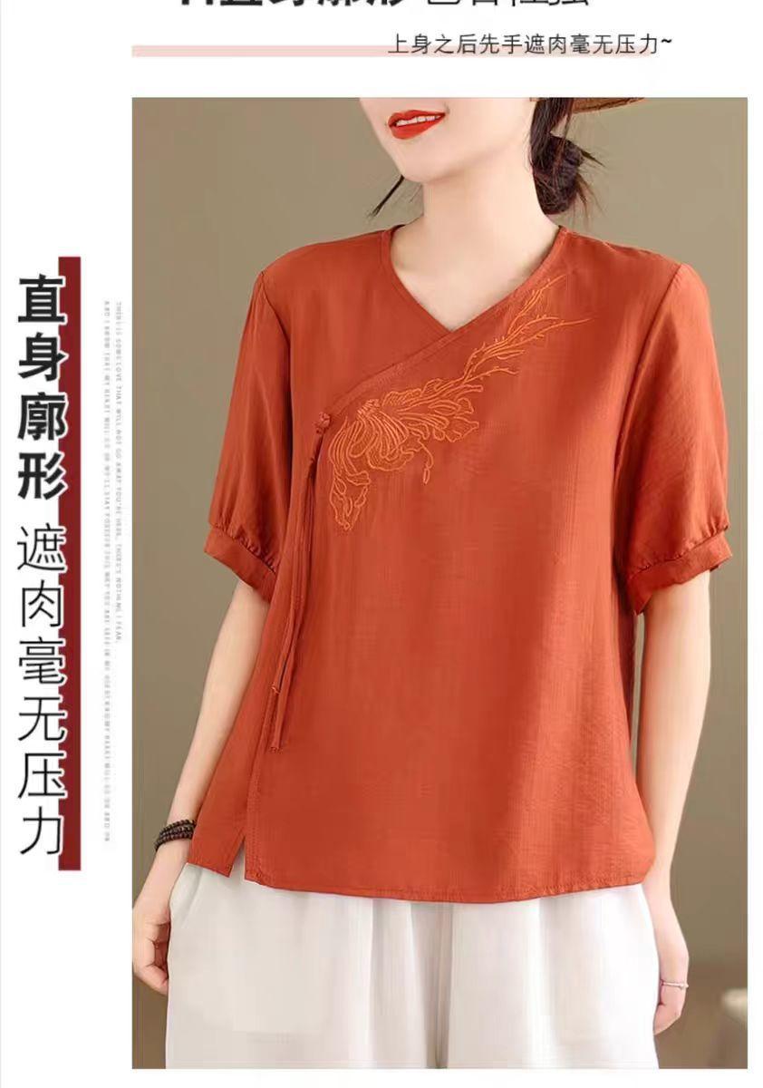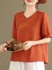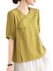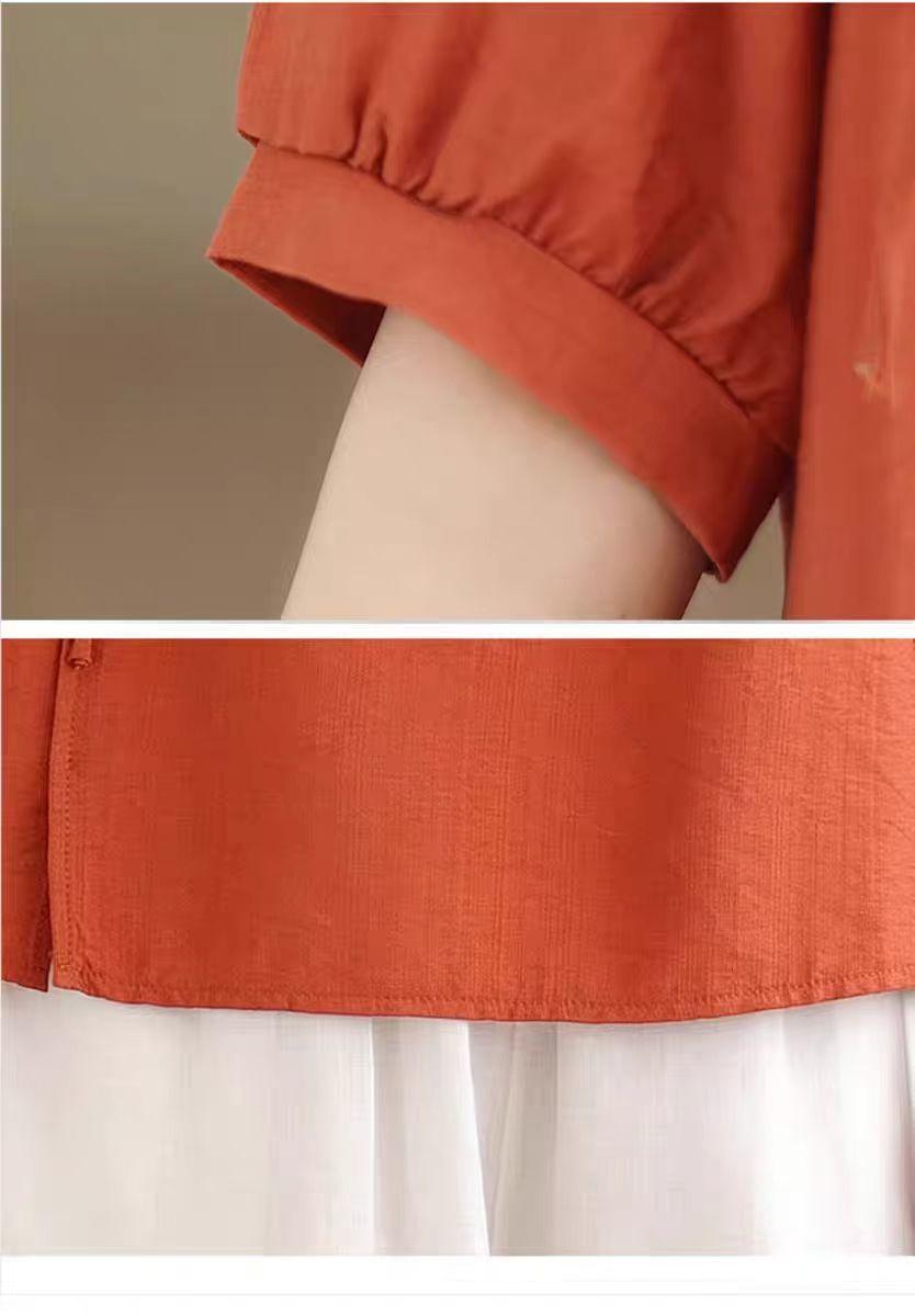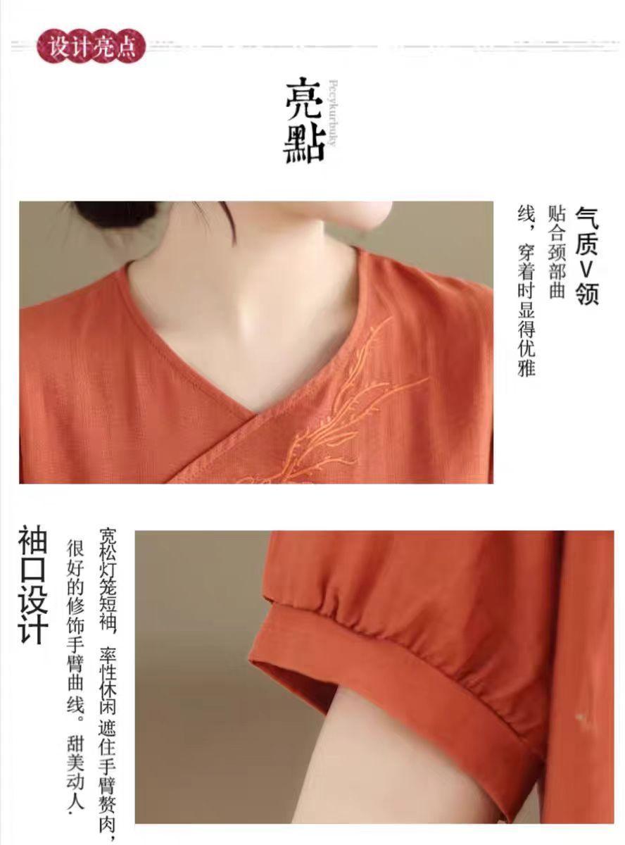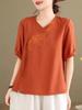 Camisa Casual de Algodón y Lino Bordada para Mujer Verano 2024 Nueva Vintage Cruzada de Manga Corta Camisa Holgada Versátil Top