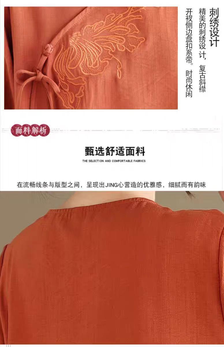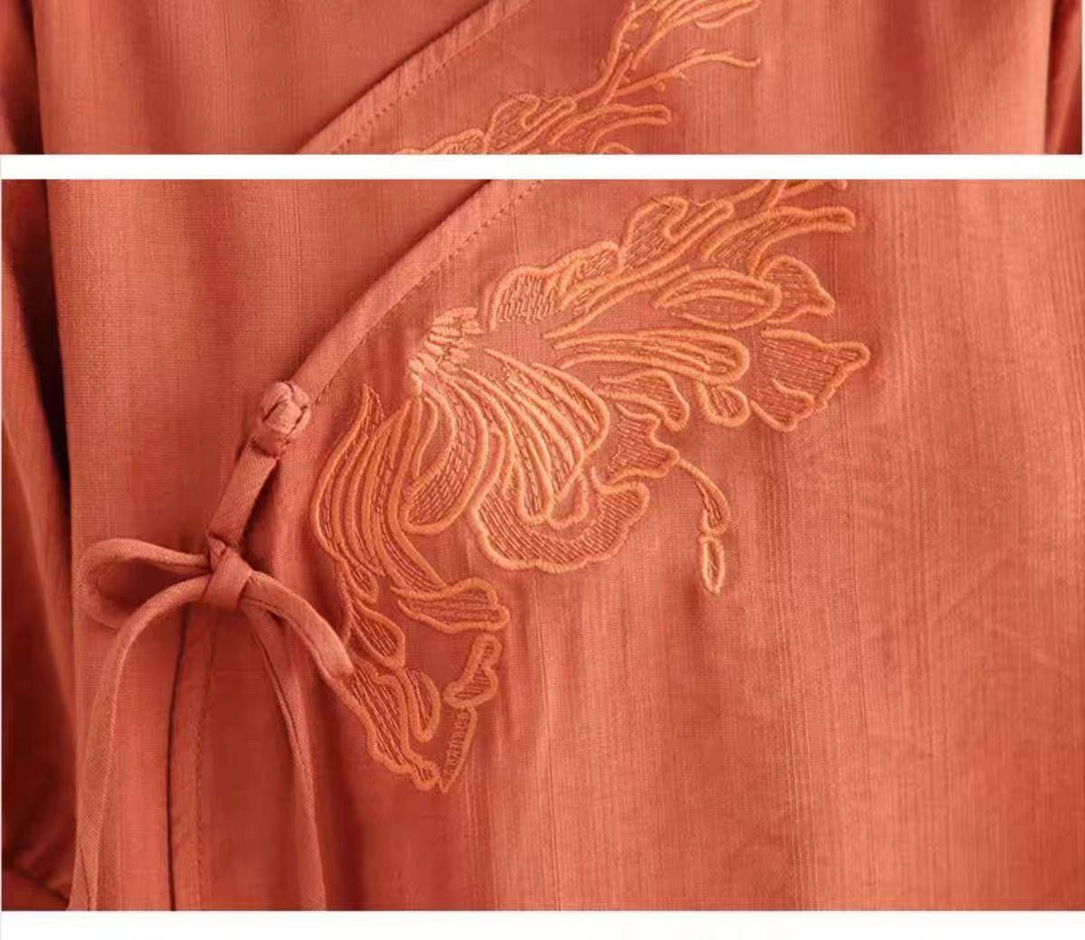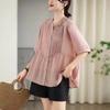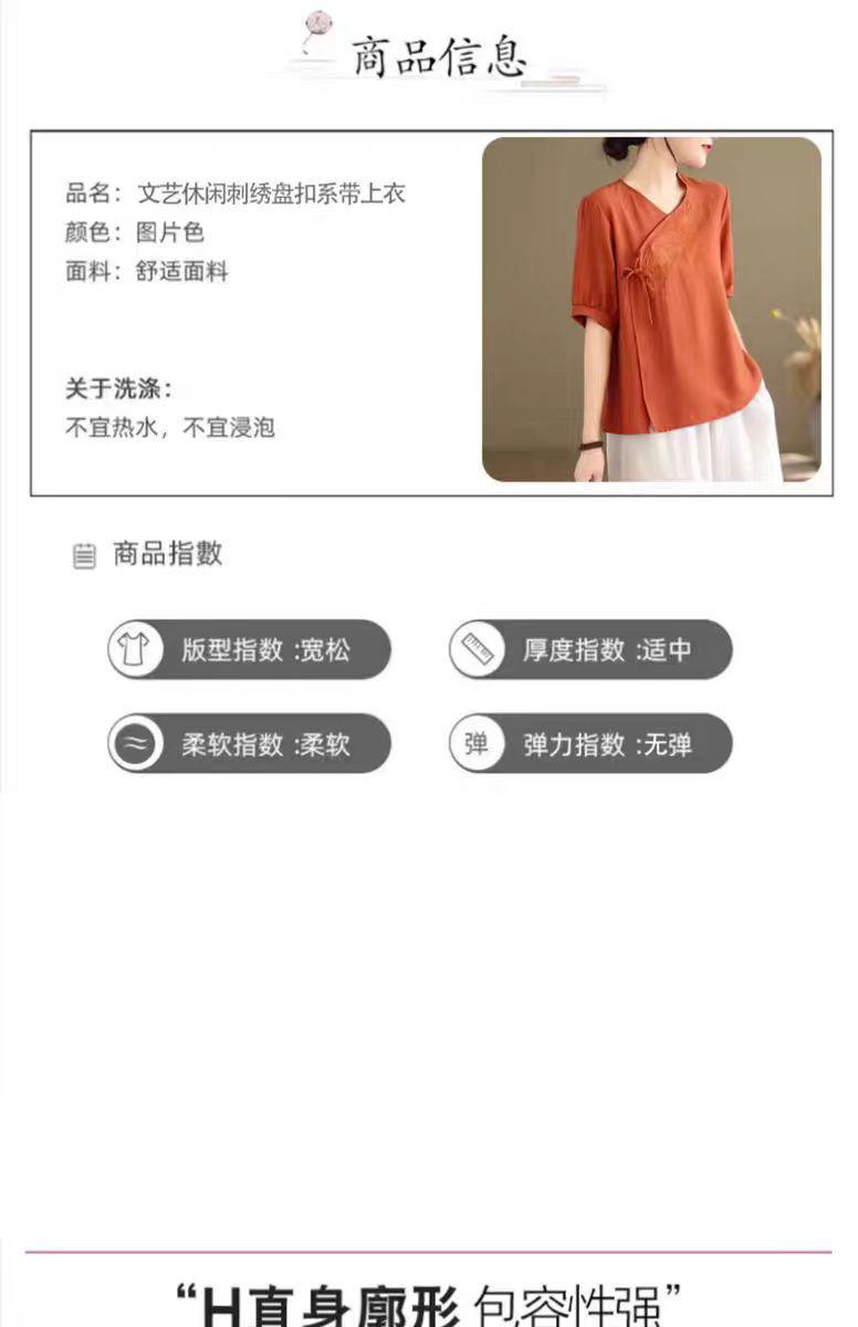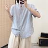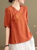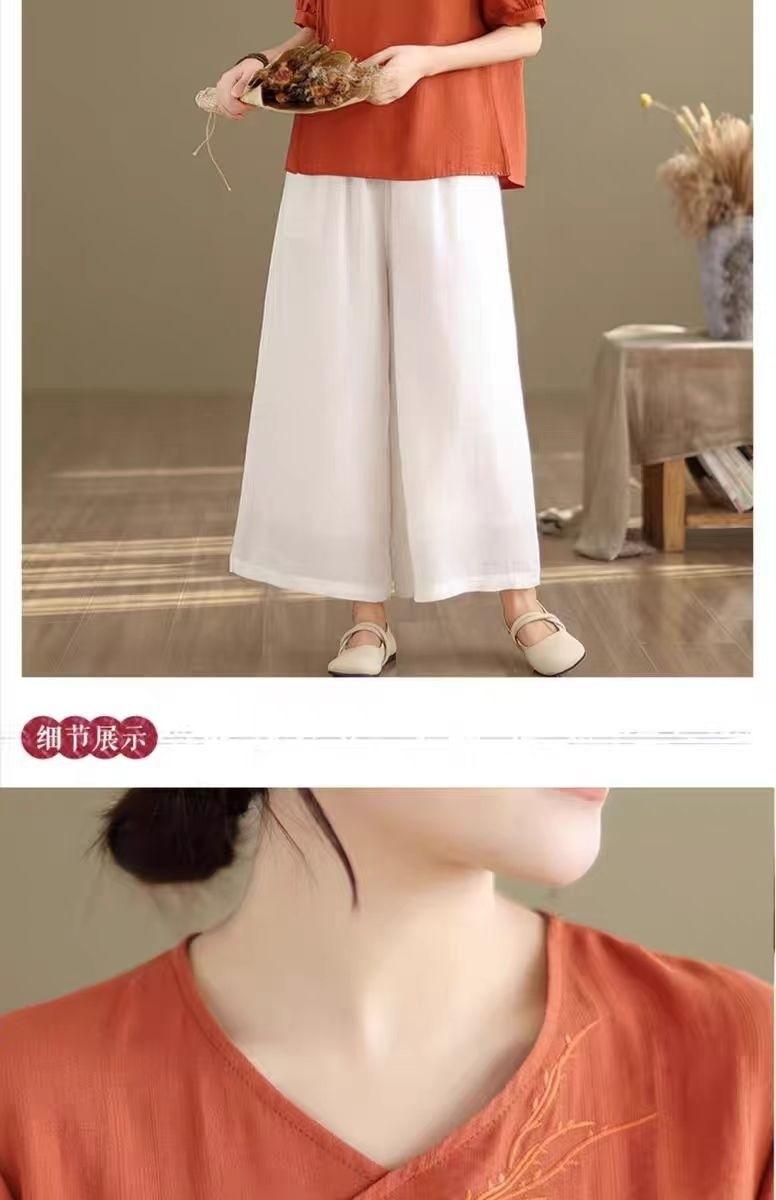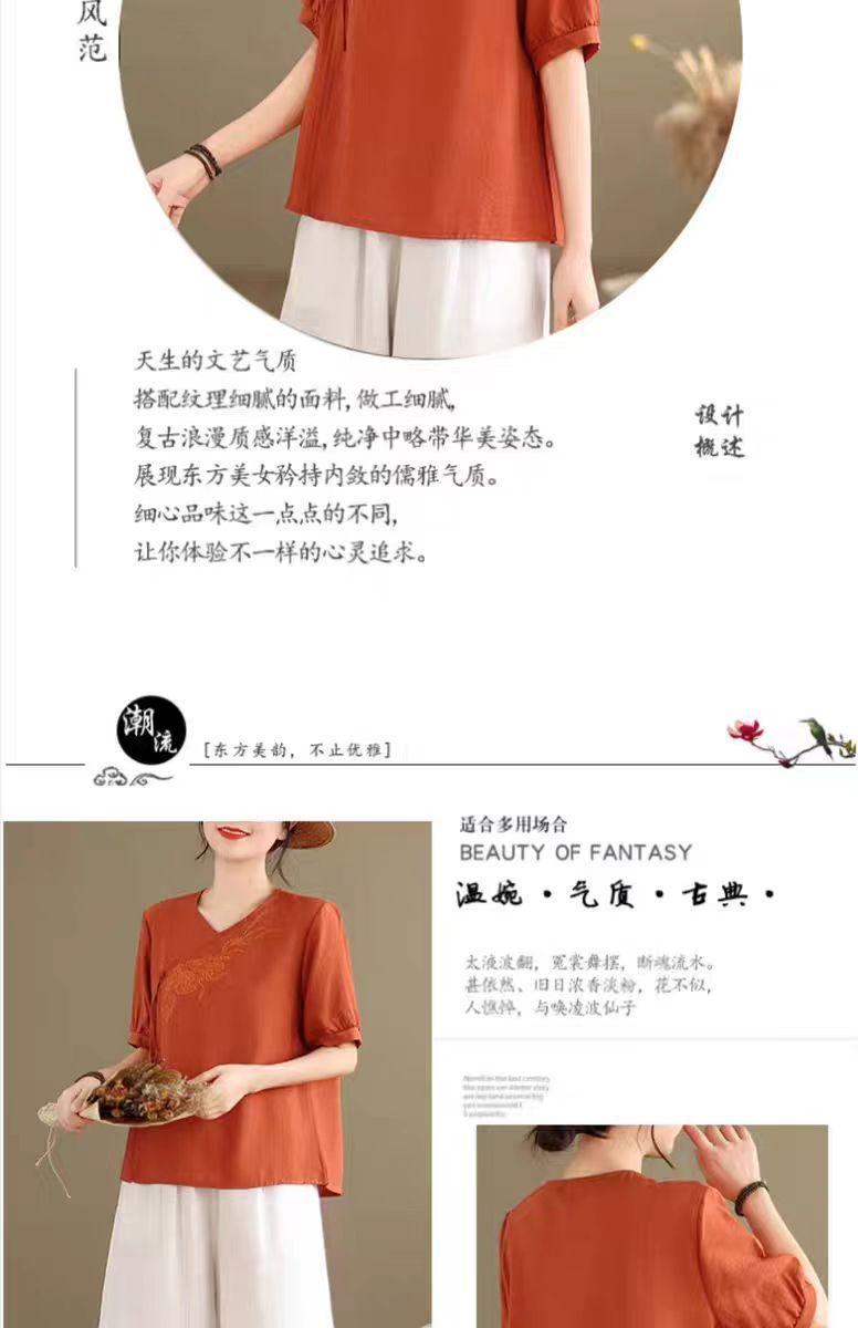 Camisa Casual de Algodón y Lino Bordada para Mujer Verano 2024 Nueva Vintage Cruzada de Manga Corta Camisa Holgada Versátil Top