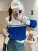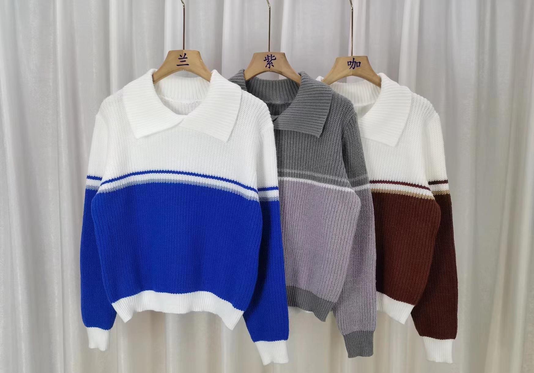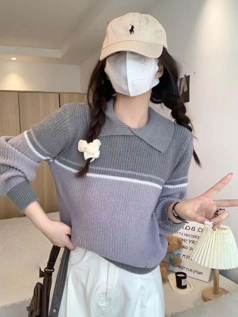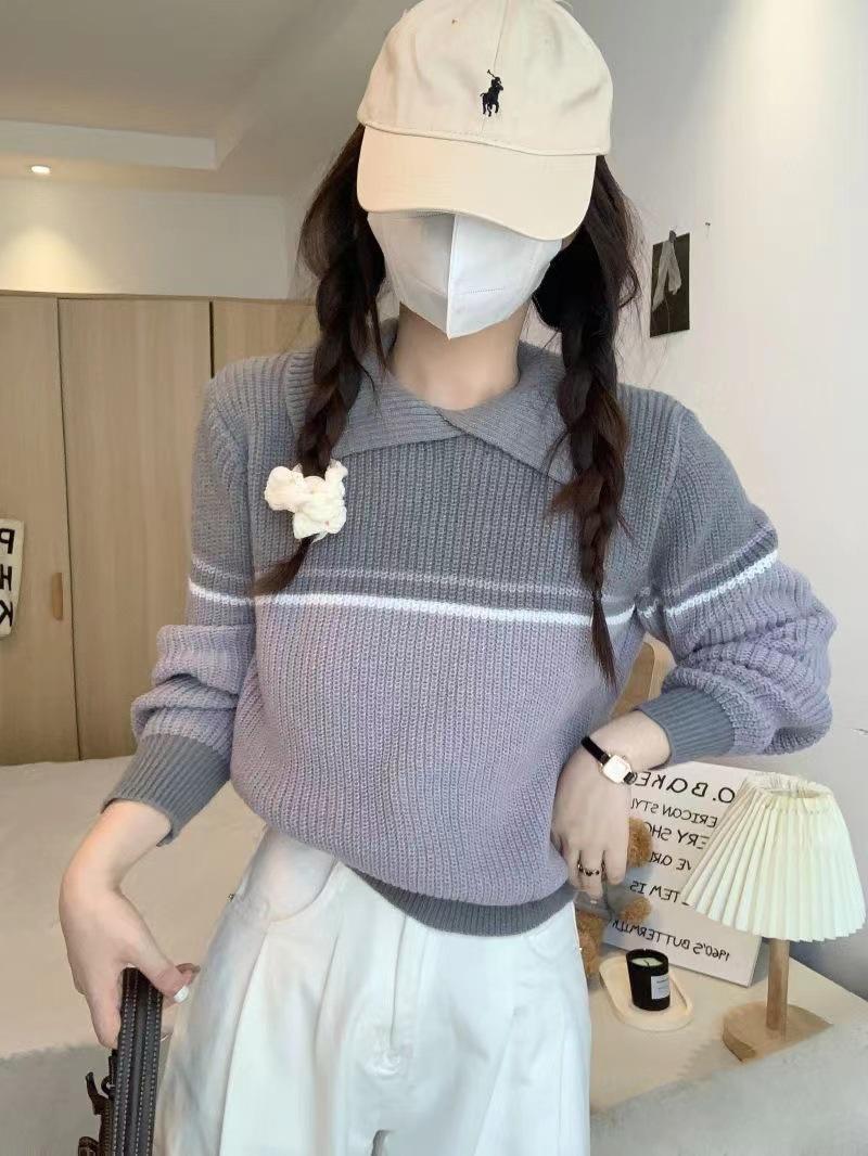 Tejido de Punto con Cuello Polo de Color Contrastante para Mujer Otoño e Invierno 2023 Nuevo Estilo Holgado y Relajado Versátil Suéter de Punto de Manga Larga