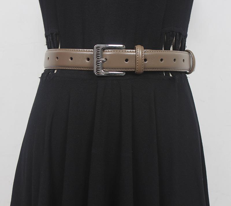 Material: Piel de vacuno serrajeLargo del cinturón 107 (ajustable) ancho 2.9 ancho de la hebilla 4.2