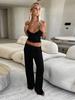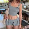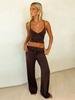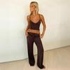 Traje de dos piezas deportivo casual de calle para el día a día, versátil, ajustado, camisola con ombligo, pantalones de tiro bajo, comercio exterior europeo y americano