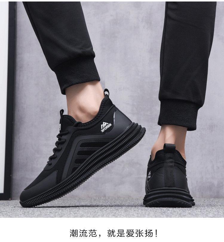 Zapatos Deportivos para Hombre Transfronterizos, Zapatos Casuales Transpirables, Zapatos para Correr para Estudiantes, Zapatos Versátiles Negros de Suela Blanda, Transpirables y Cómodos para Hombre