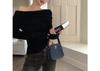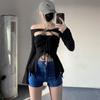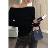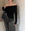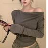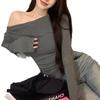 Camiseta de mujer de principios de otoño, ajustada, elástica, con hombros descubiertos, dulce y sexy, irregular, con cuello de manga larga