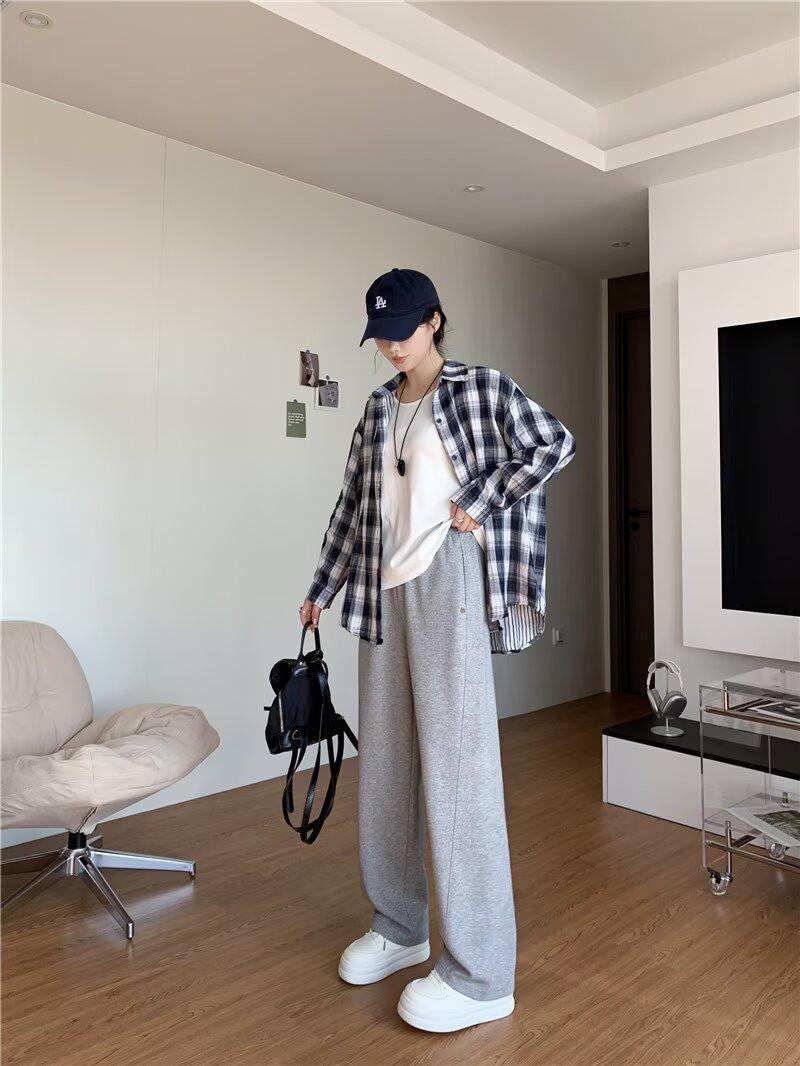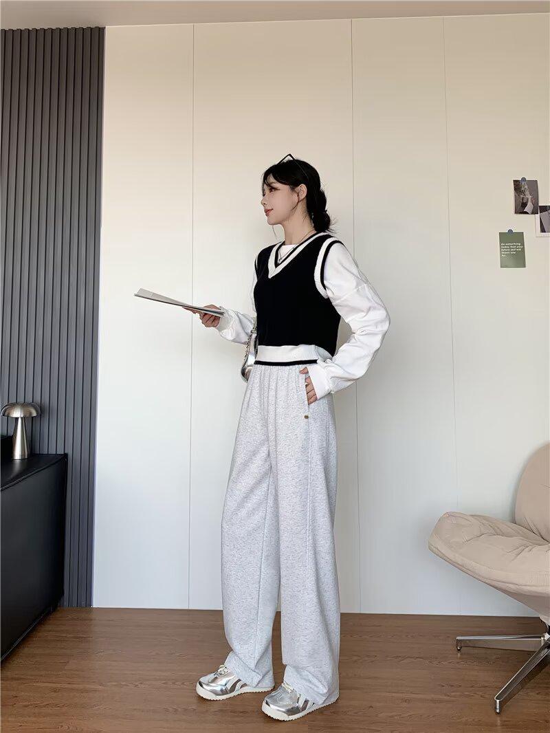 Sei Jauiq Pantalones Casuales Estrechos Tipo Hoz Primavera 2025 Nuevo Cintura Alta Adelgazantes Casuales Combinan con Todo Anchos de Pierna Anchos Tipo Banana