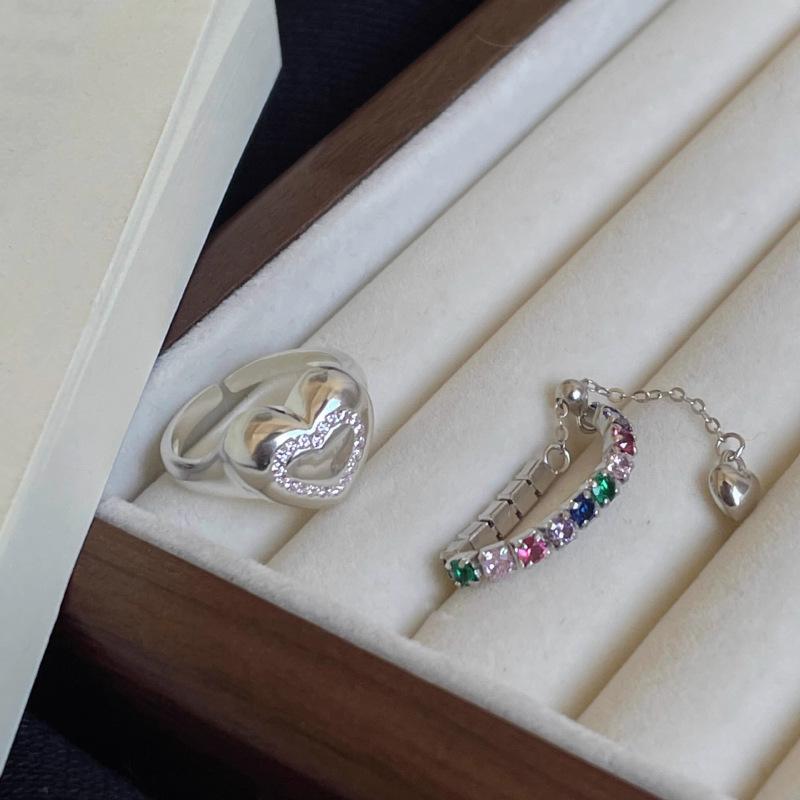 Anillo de Amor Diamante Arcoíris Vintage Nicho para Mujer Talla Libre Ajustable Moda Temperamento Industria Pesada Combinable Anillo de Dedo Joyería