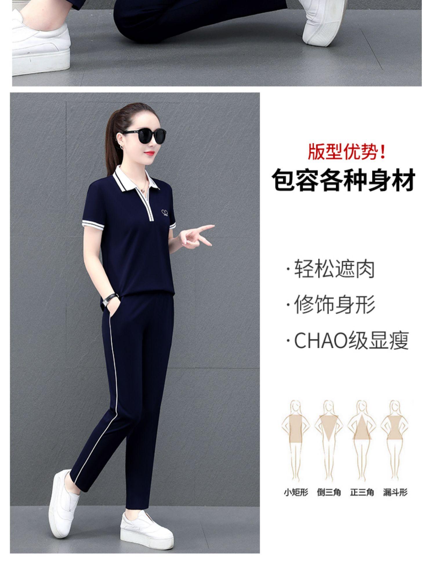 Conjunto deportivo de dos piezas para mujer, verano 2022, nueva moda, holgado, de algodón, manga corta, marca, ropa informal