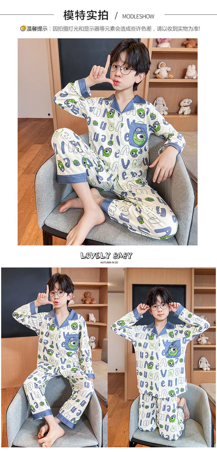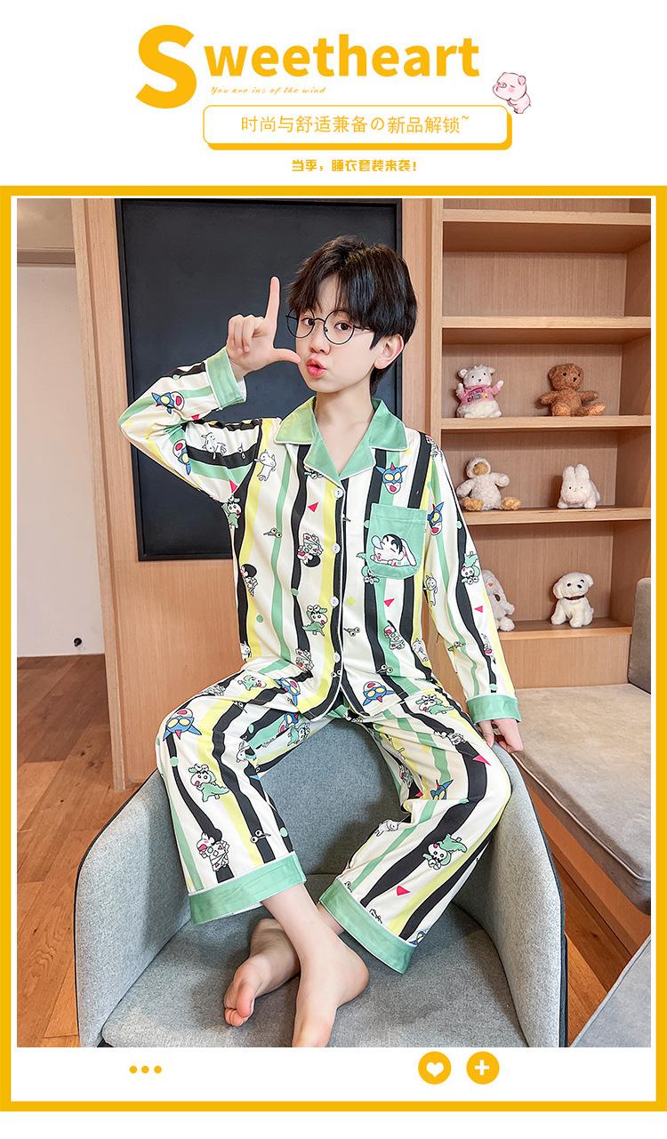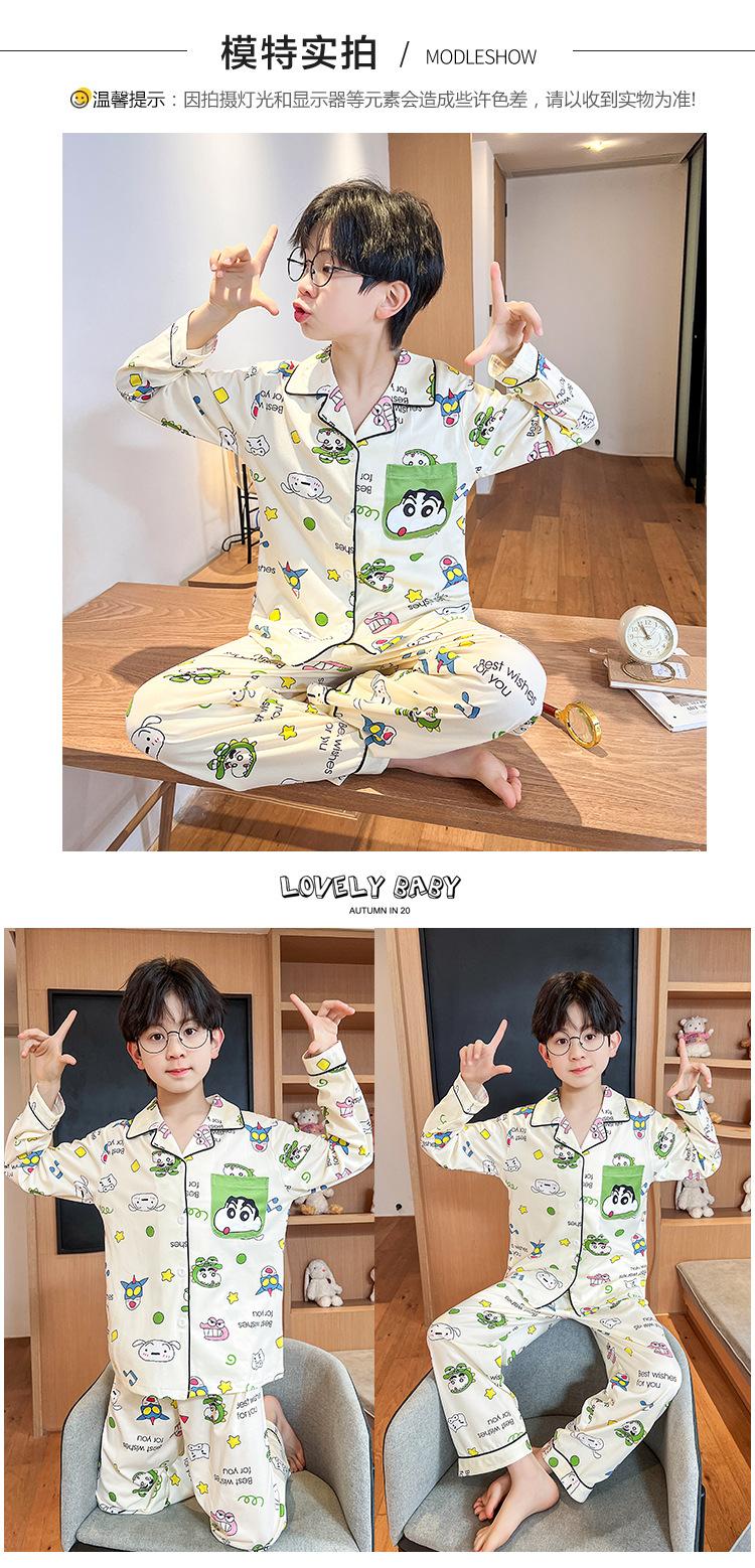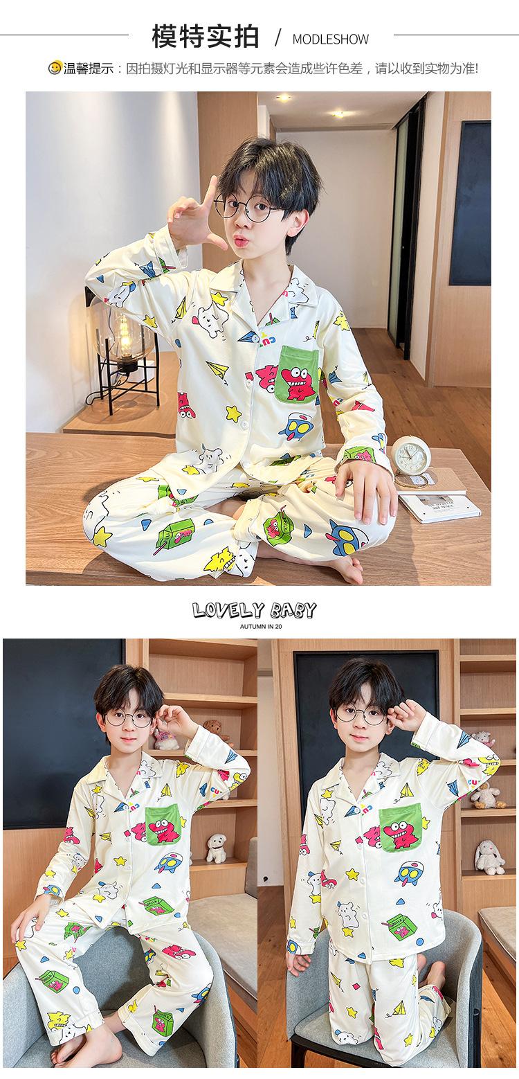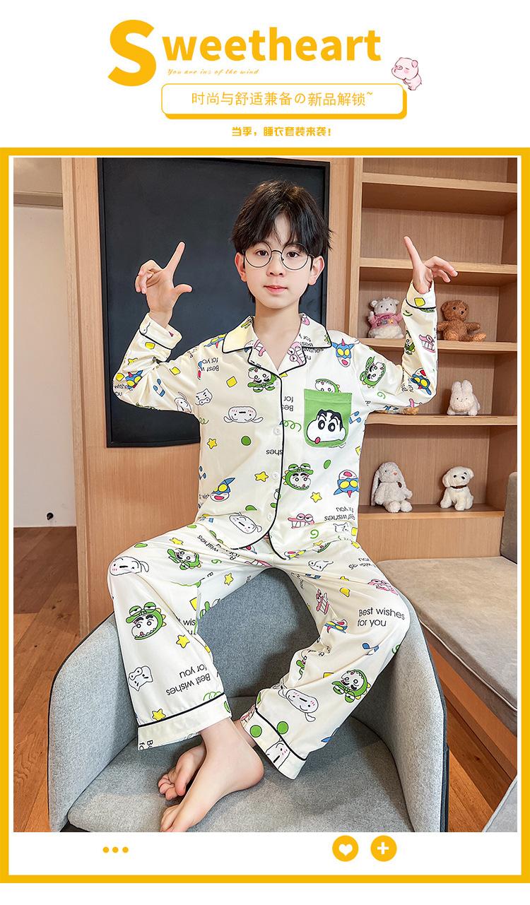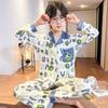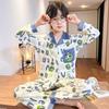 Pijamas de primavera y otoño para niños, de manga larga y solapa, de algodón de imitación, de dibujos animados, para el hogar