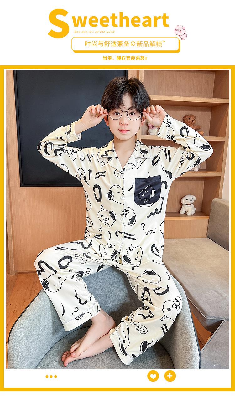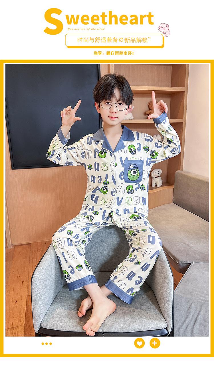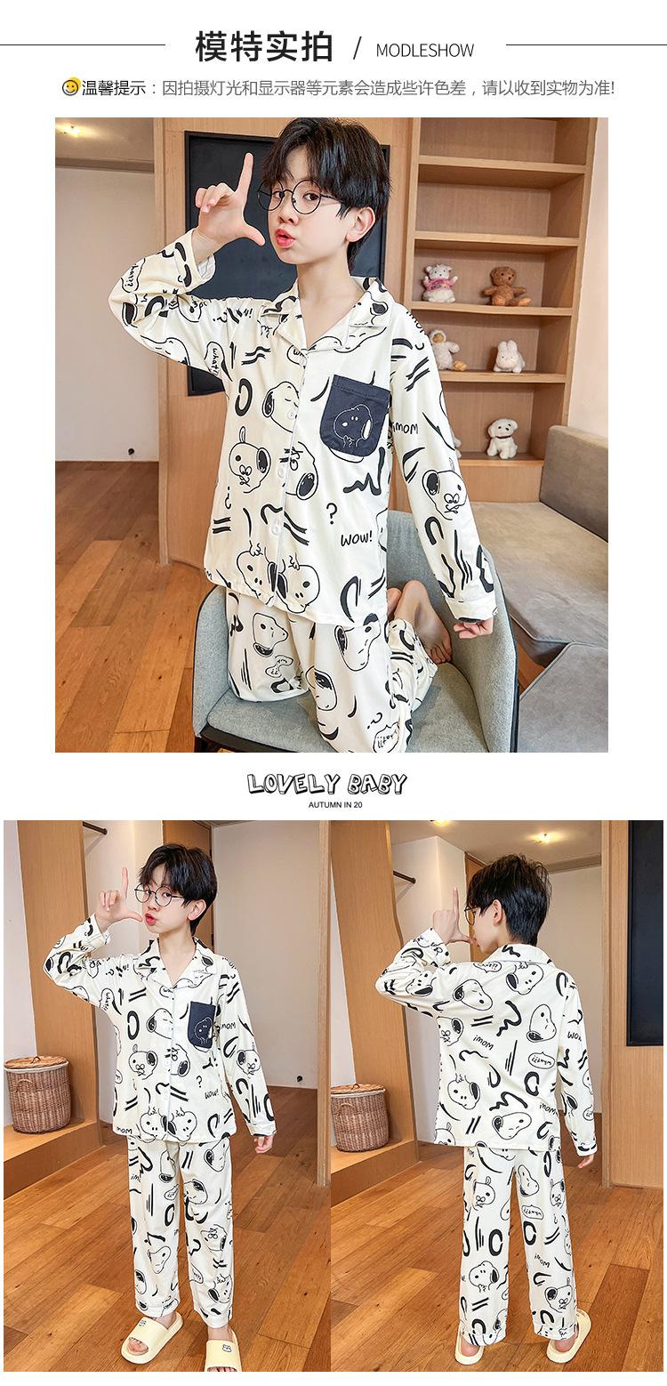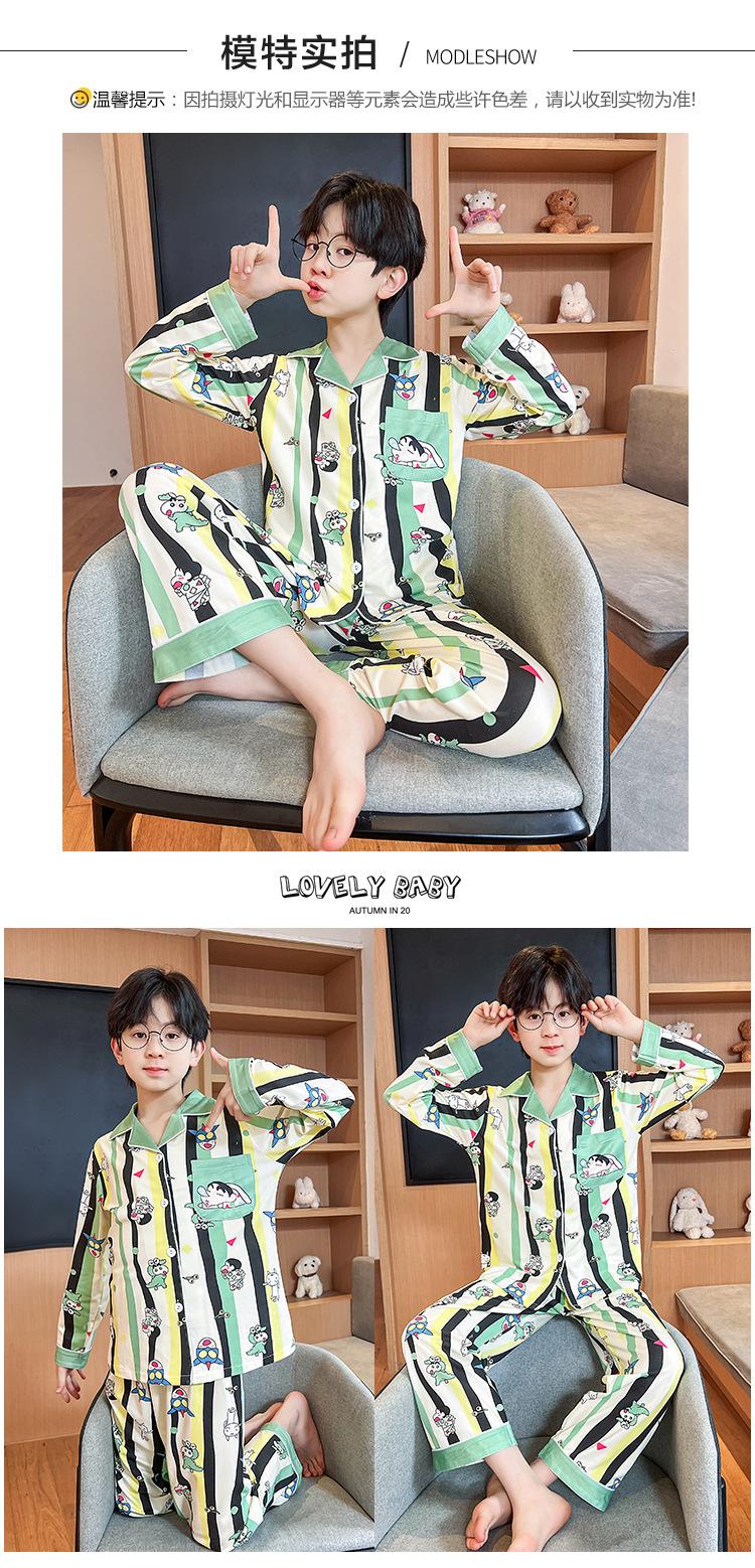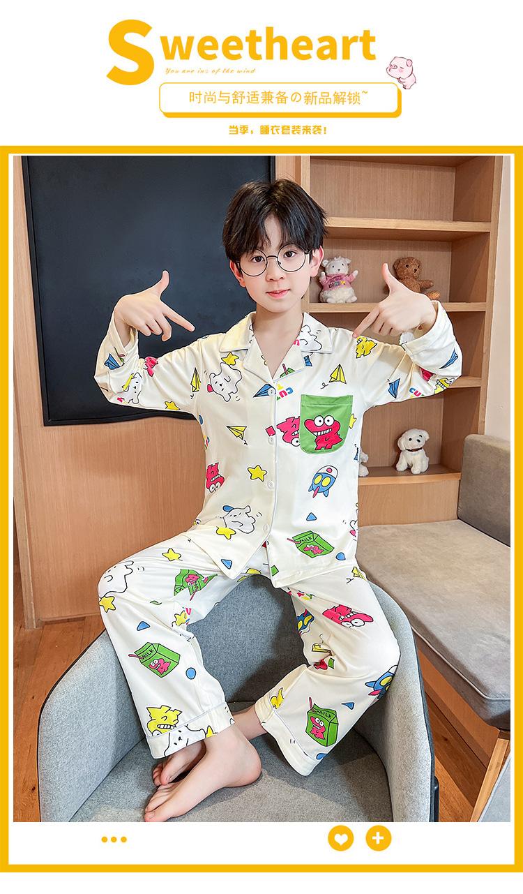 Pijamas de primavera y otoño para niños, de manga larga y solapa, de algodón de imitación, de dibujos animados, para el hogar