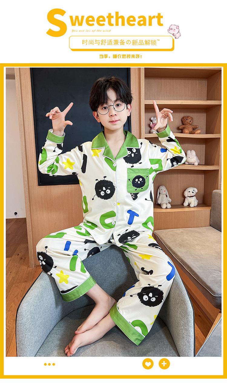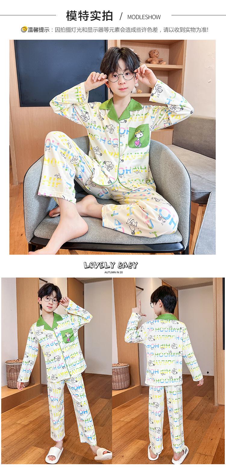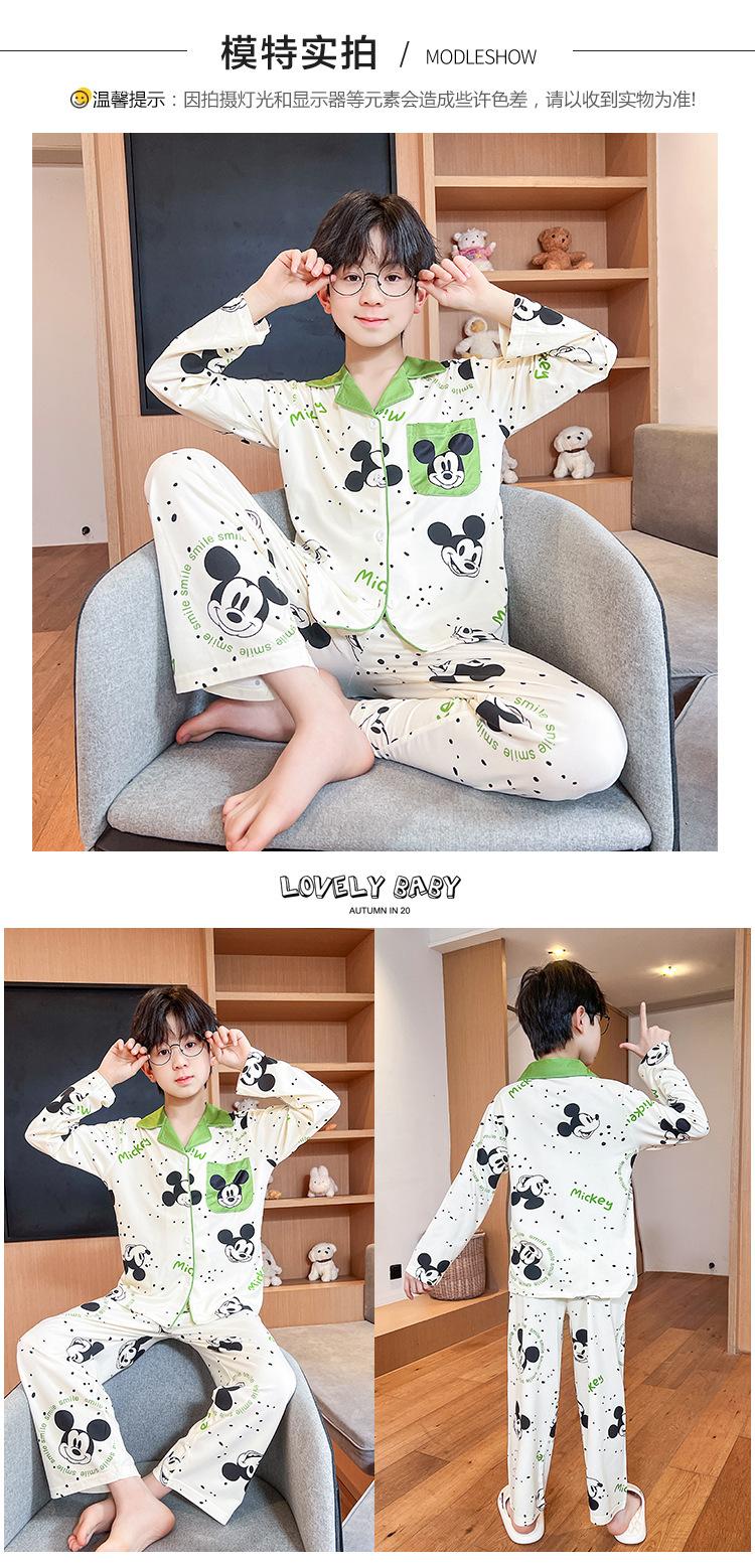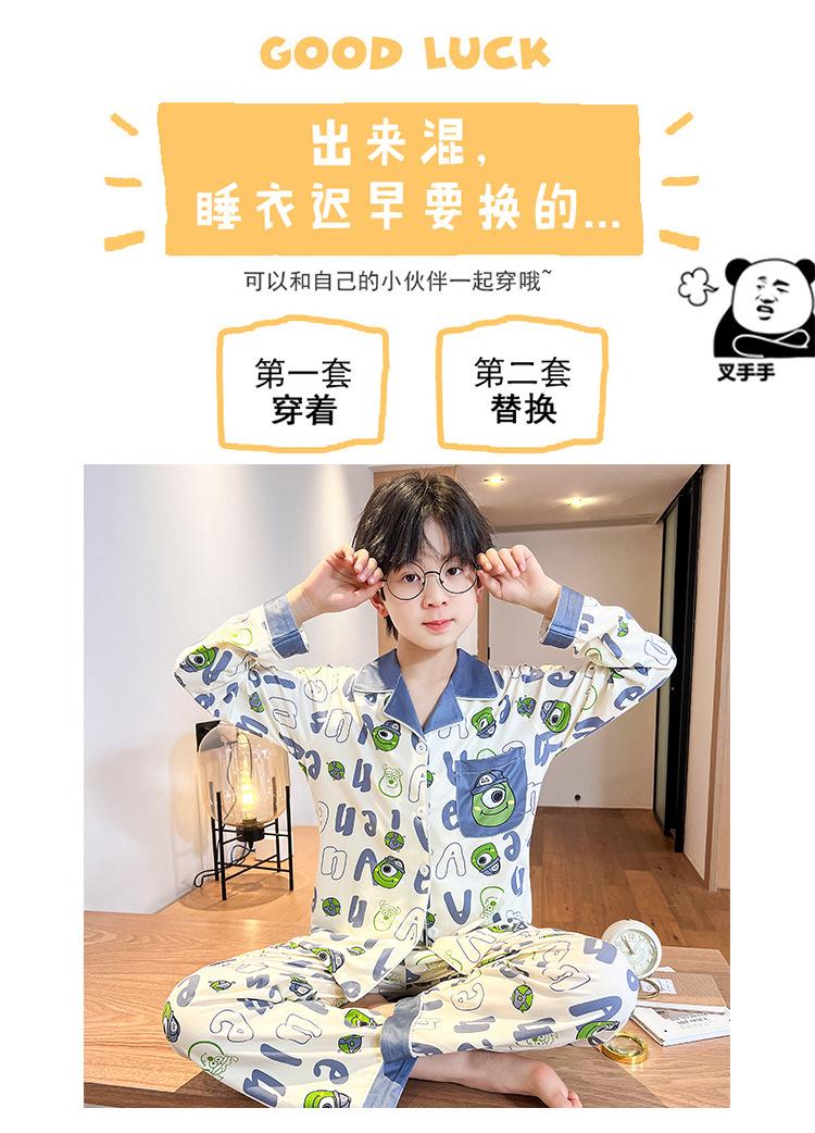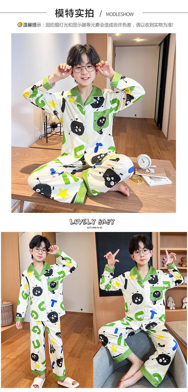 Pijamas de primavera y otoño para niños, de manga larga y solapa, de algodón de imitación, de dibujos animados, para el hogar