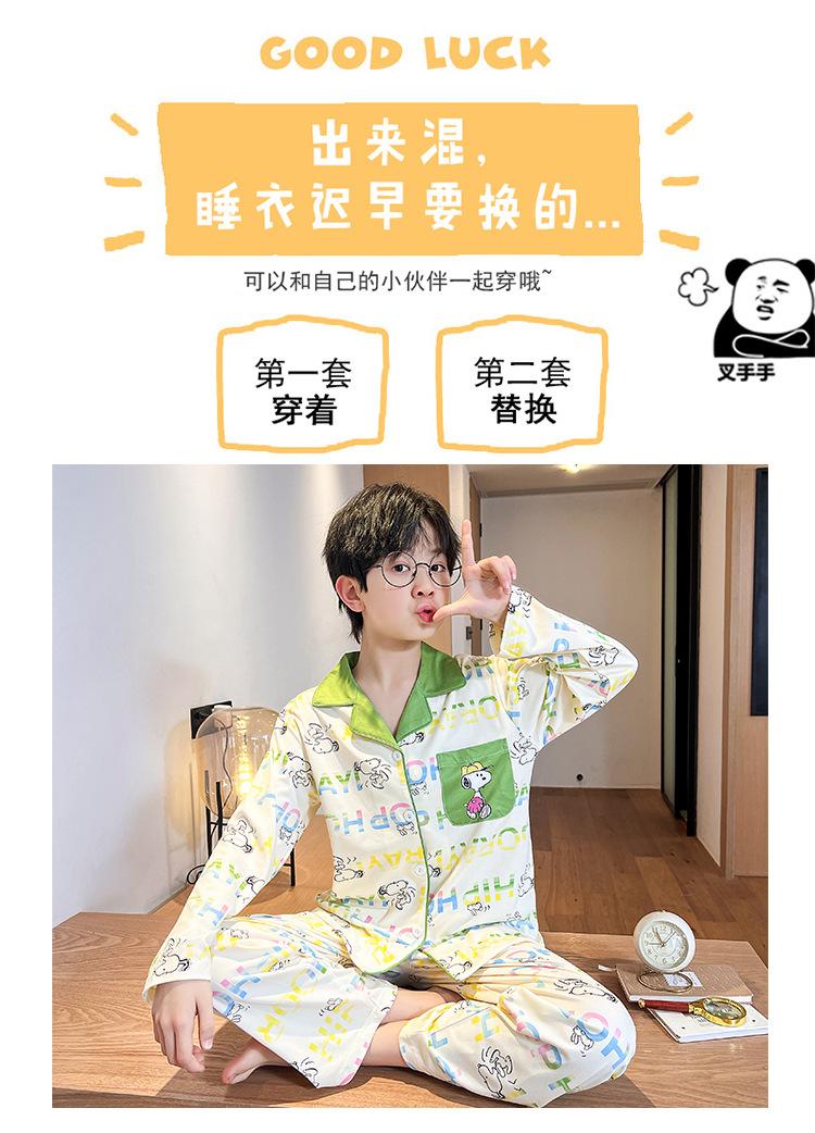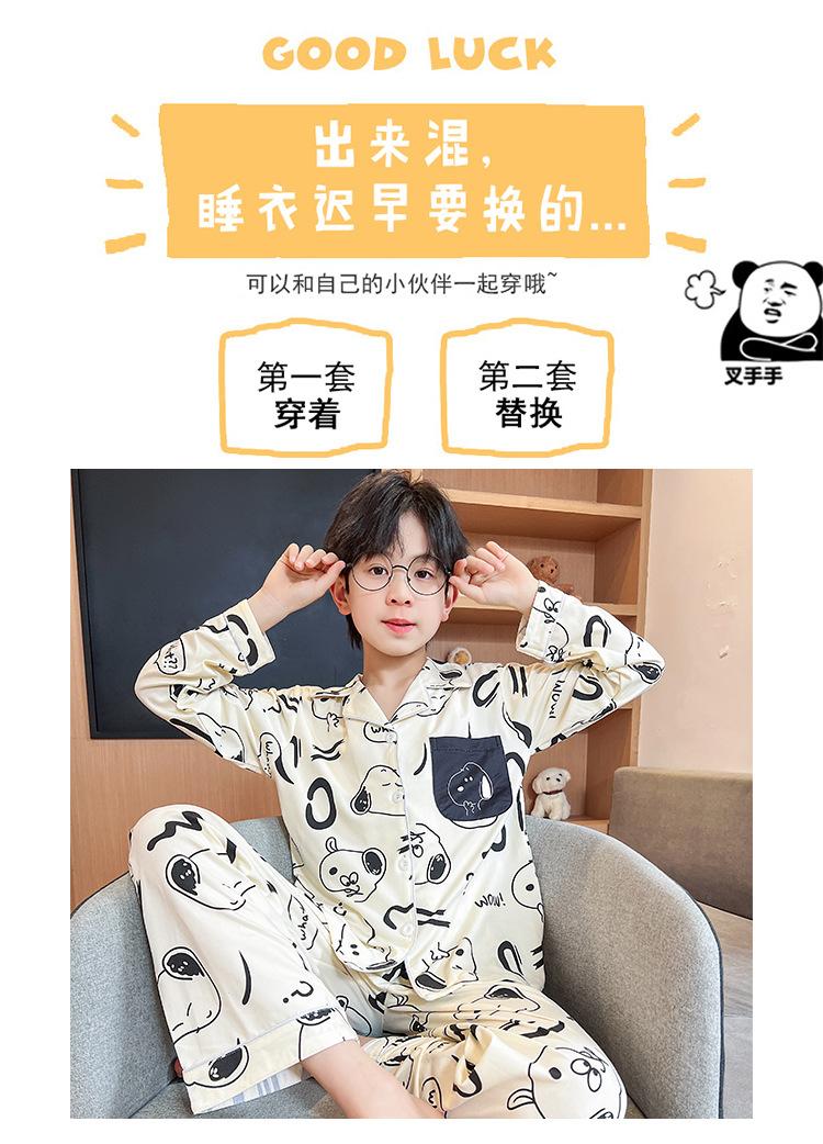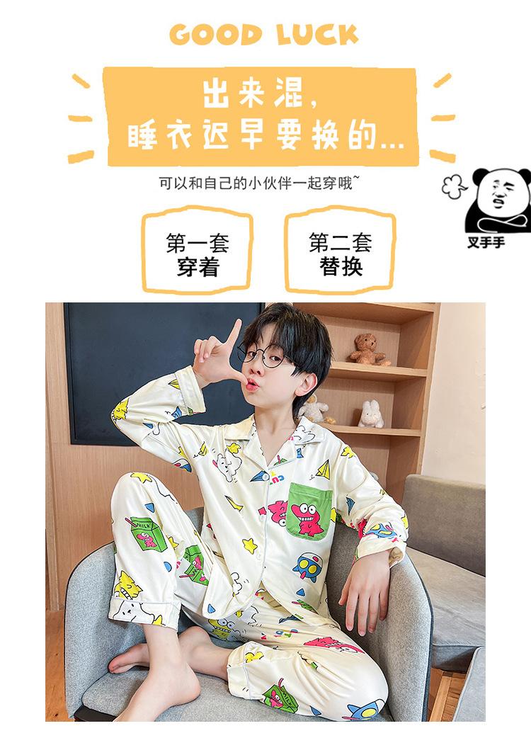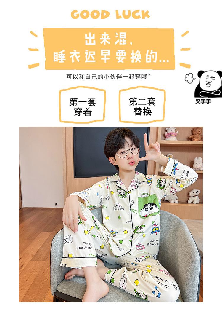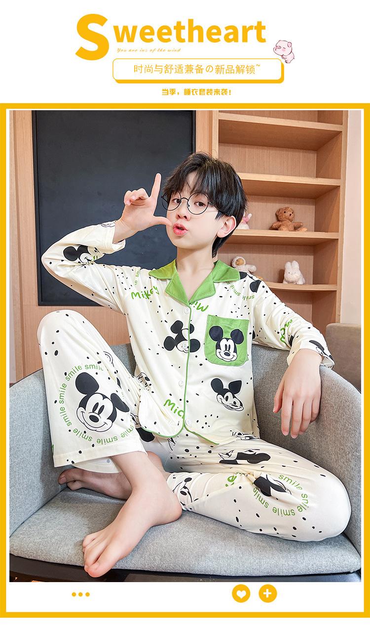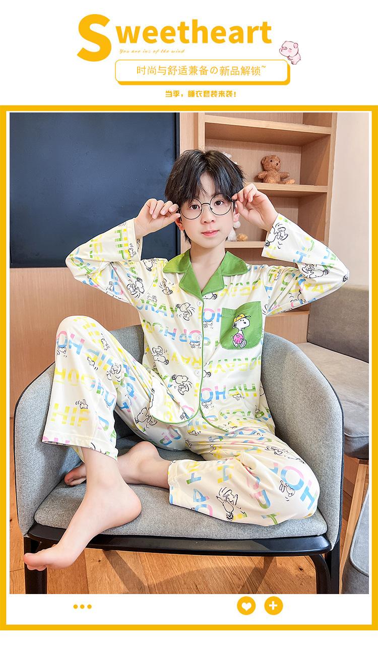Pijamas de primavera y otoño para niños, de manga larga y solapa, de algodón de imitación, de dibujos animados, para el hogar