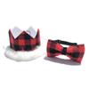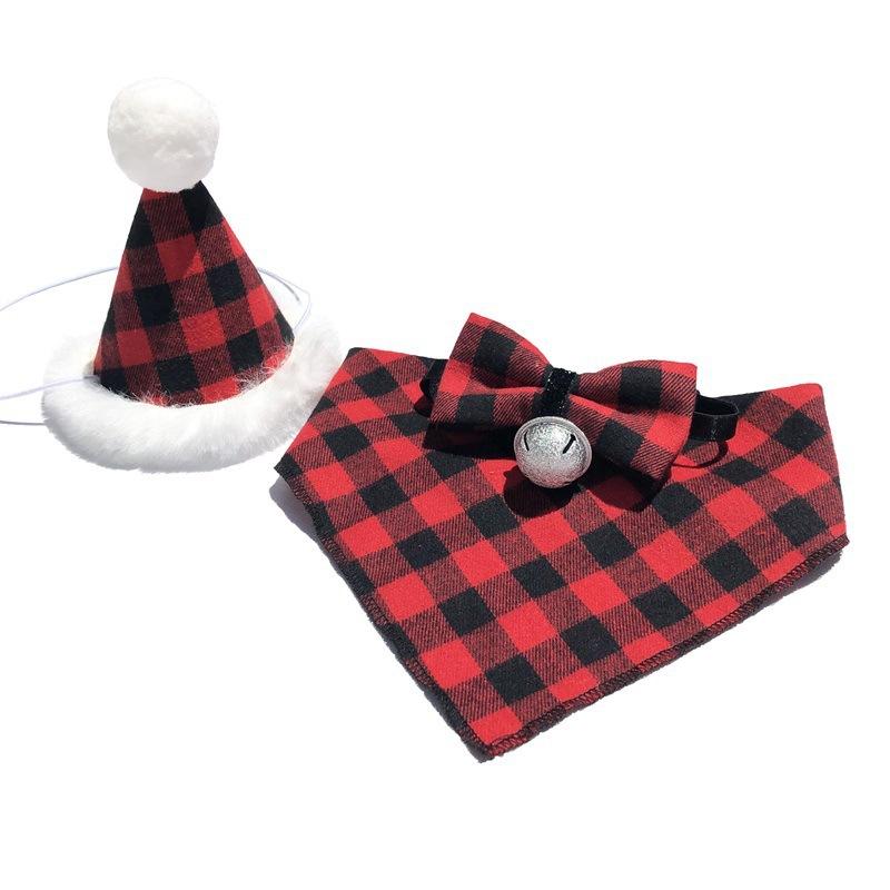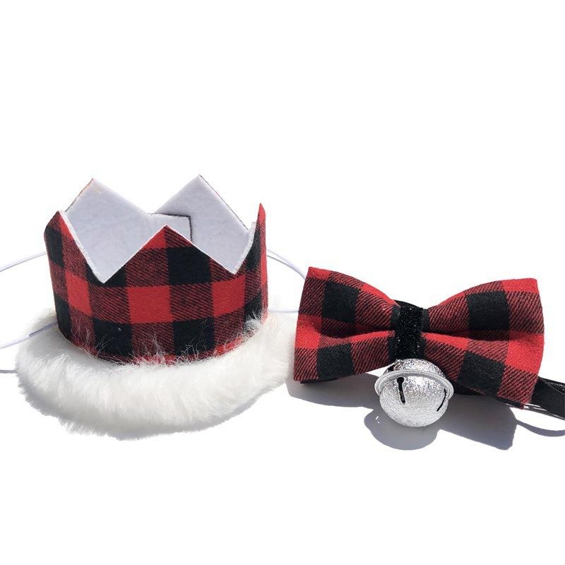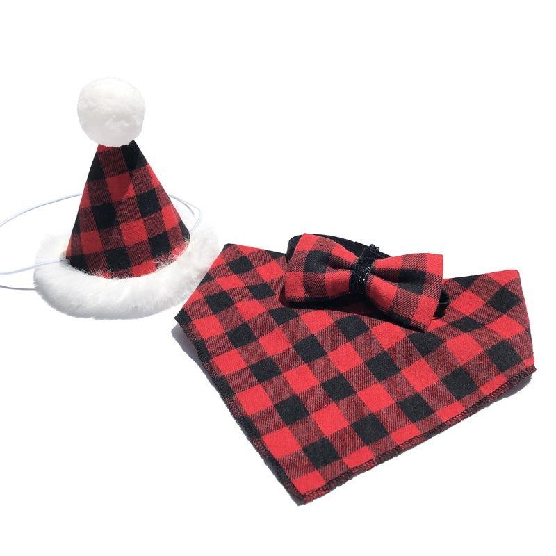 Red Plaid saliva towel, Red Plaid triangle hat, Red Plaid crown hat, Red bell bow tie, Red bow tie, Red Triang...