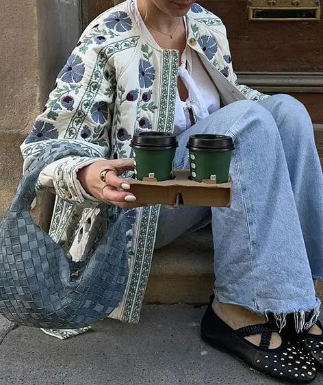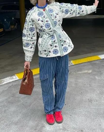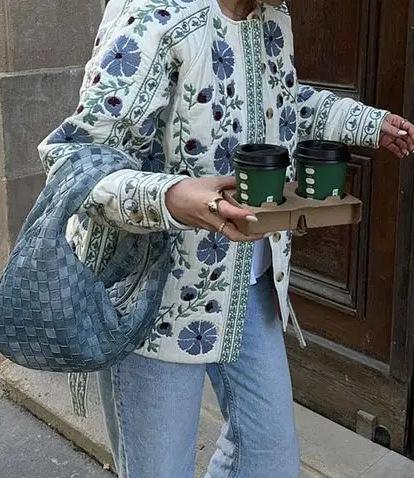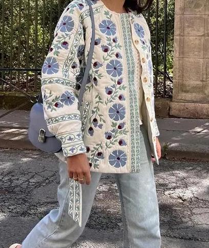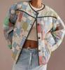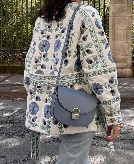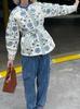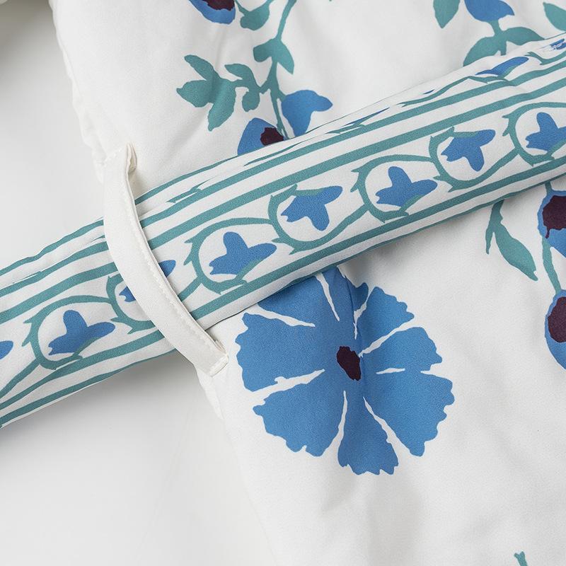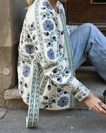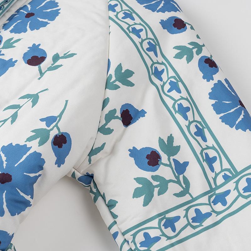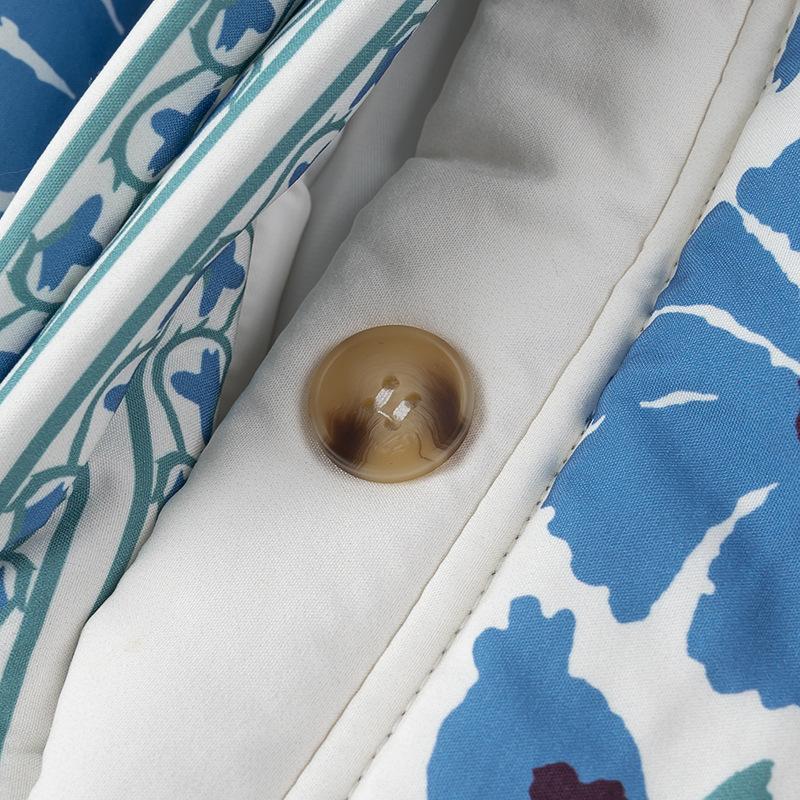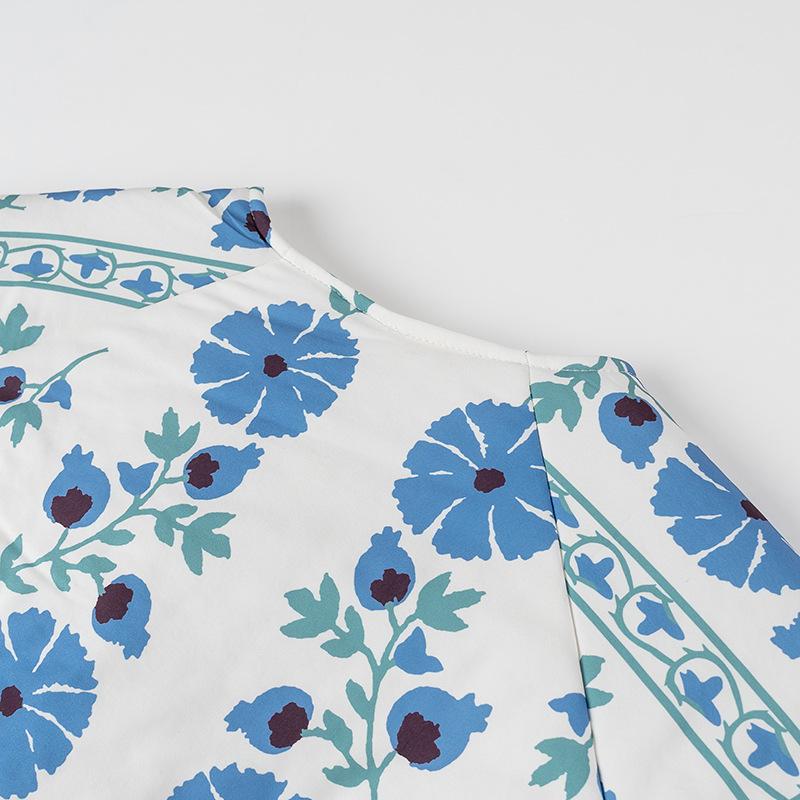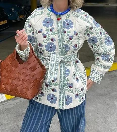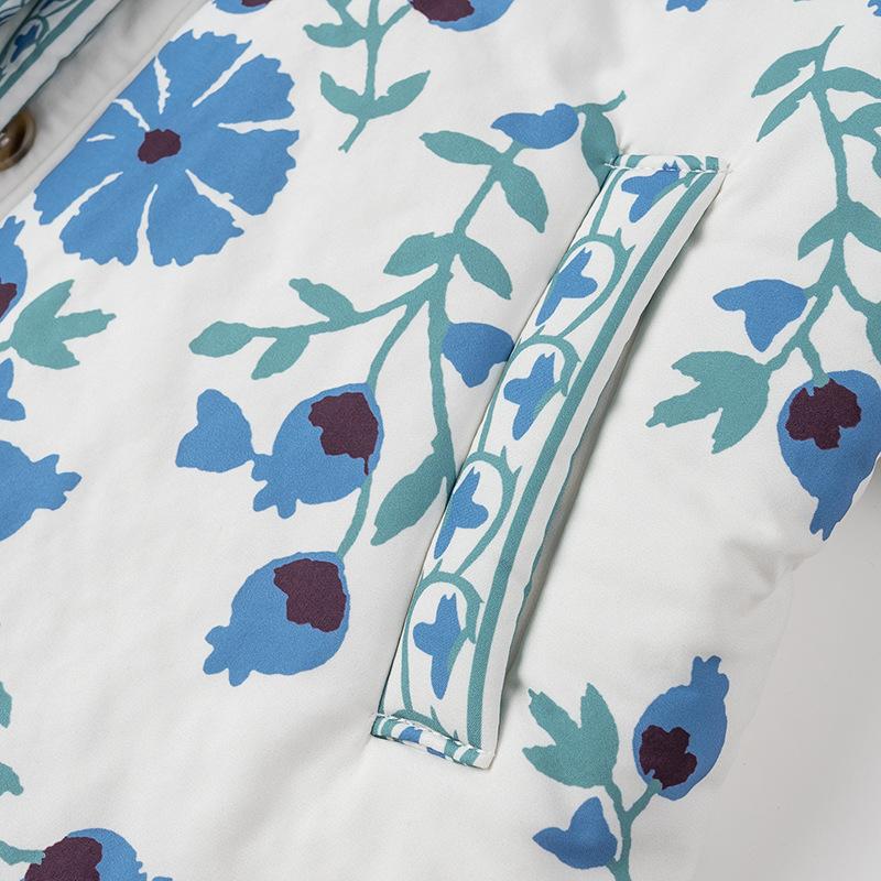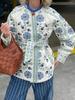 Otoño e invierno 2024 Europa y Estados Unidos transfronterizo moda temperamento azul estampado encaje cintura abrigo acolchado de algodón calle hipster