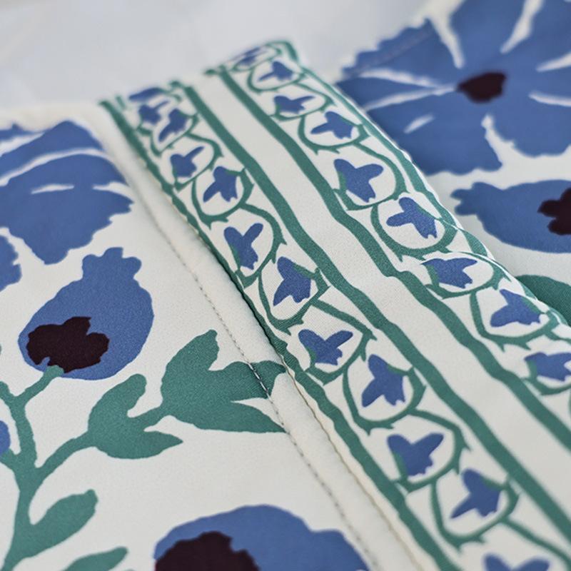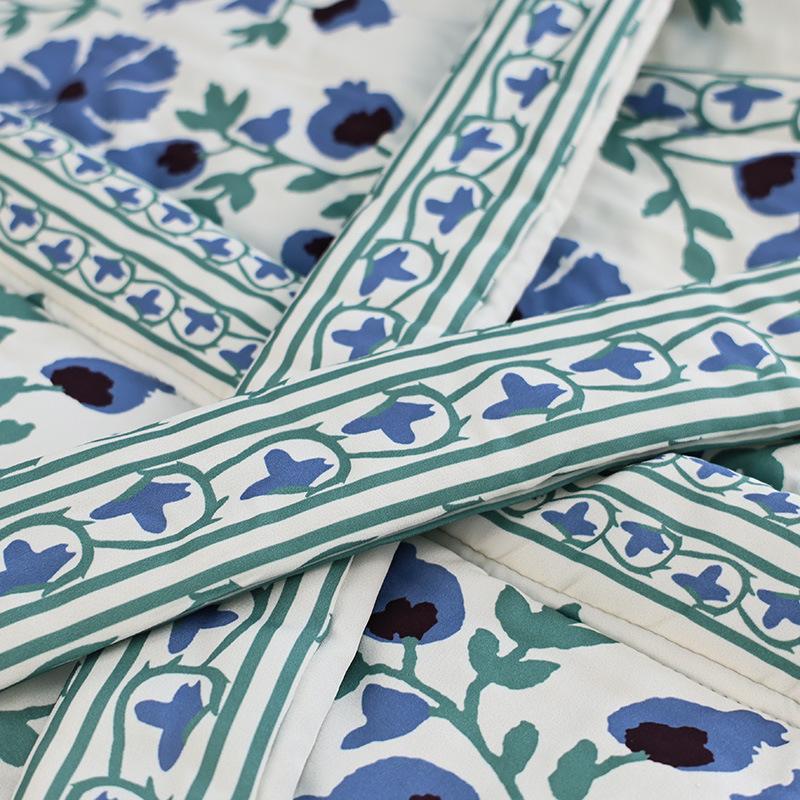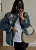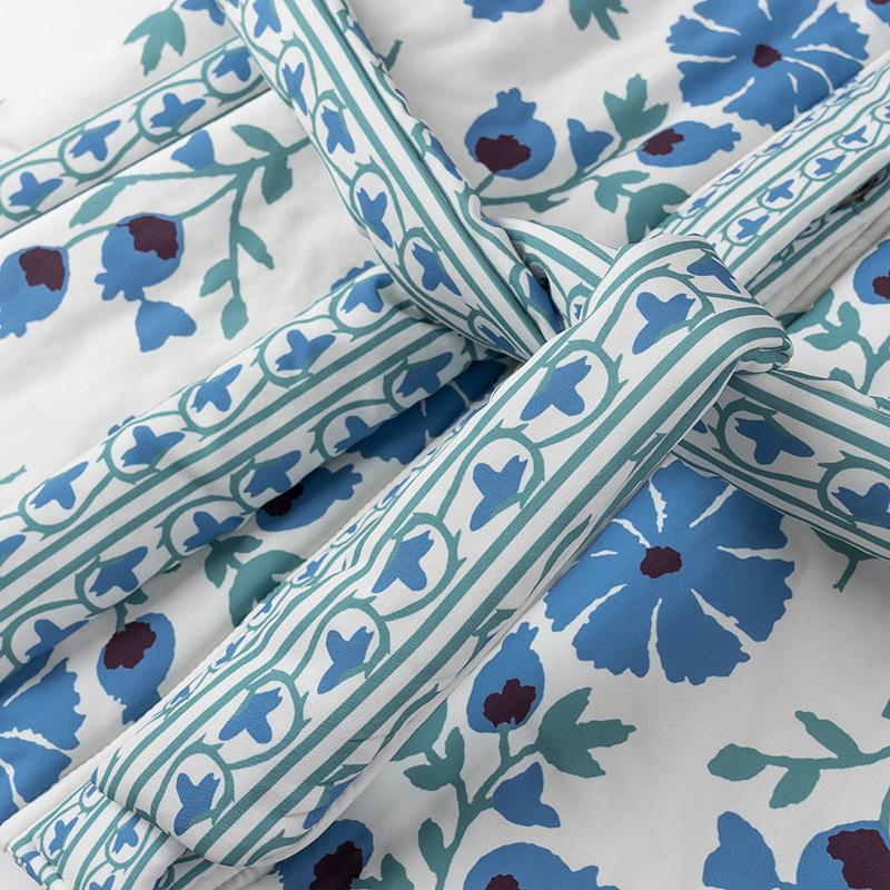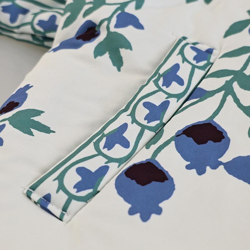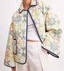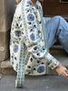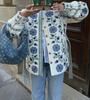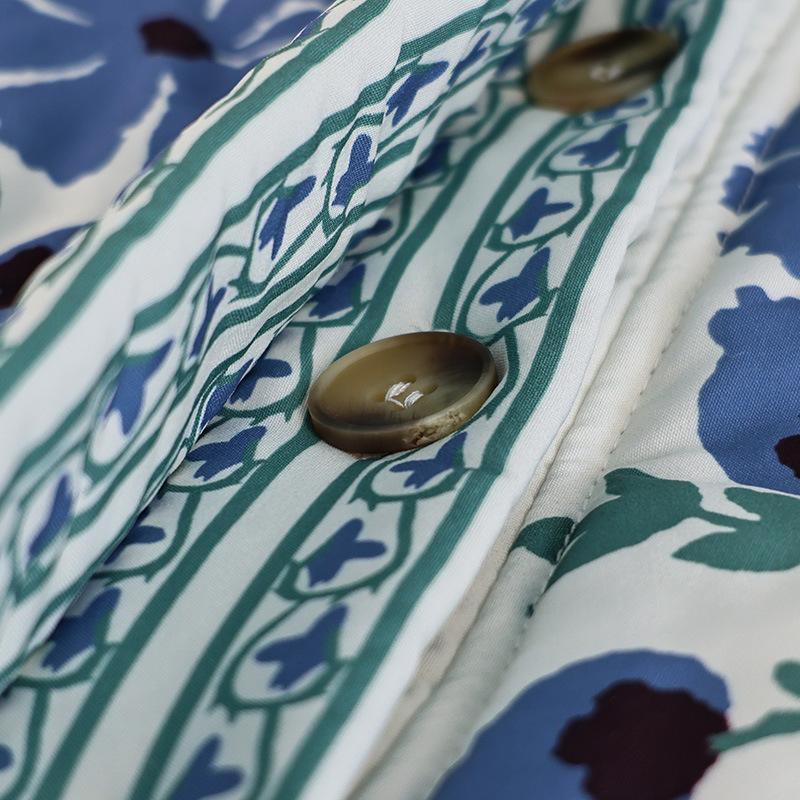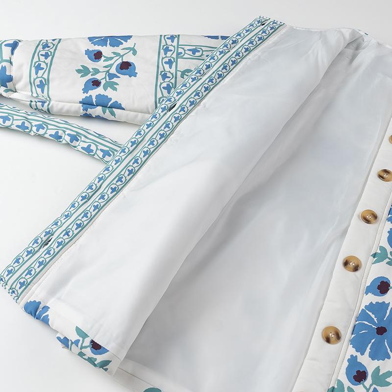Blue printedtie back waist jacket cotton jacket, Removable sleeve printed cotton coat, Printed pocket cotton j...